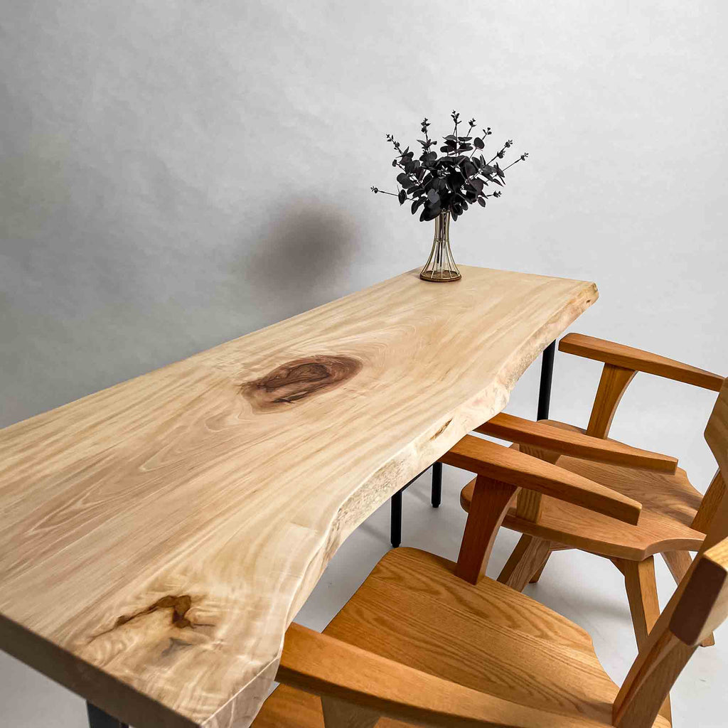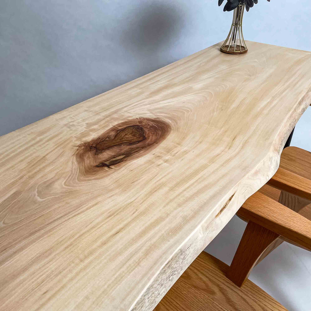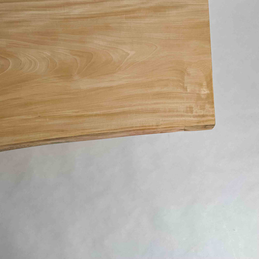 複数の板をつなぎ合わせたものとは異なり、途切れることなく続く杢目は自然の美しさをそのまま映し出します。