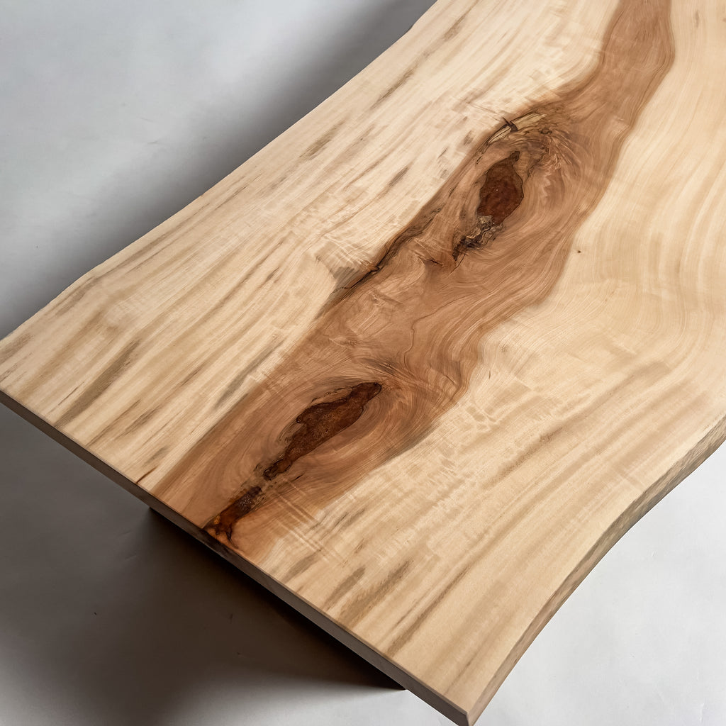 複数の板をつなぎ合わせたものとは異なり、途切れることなく続く杢目は自然の美しさをそのまま映し出します。