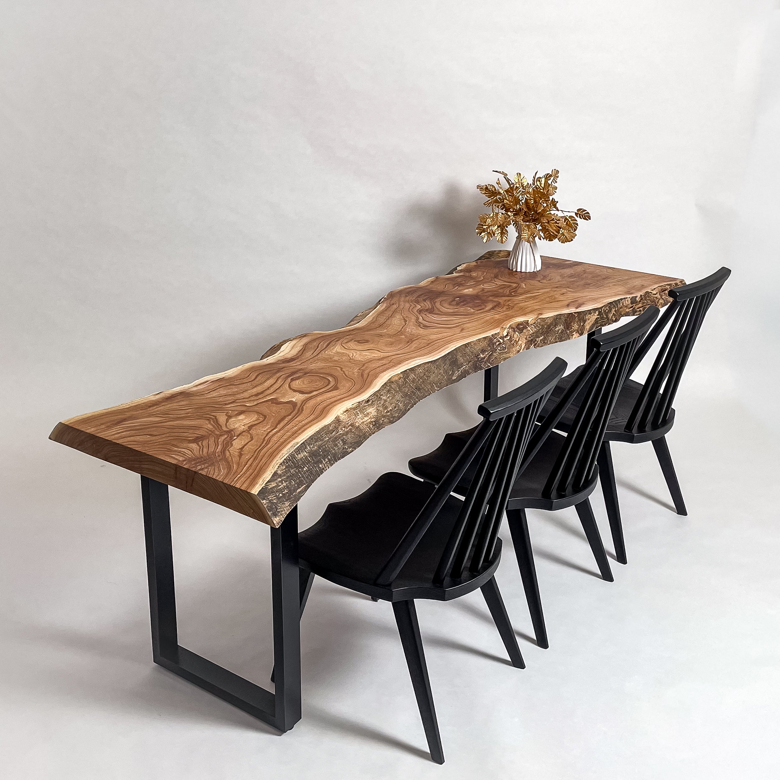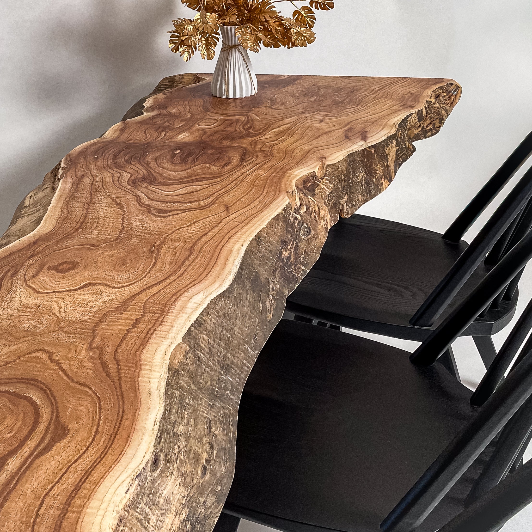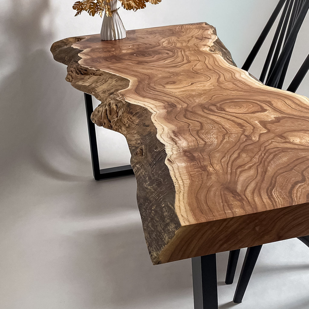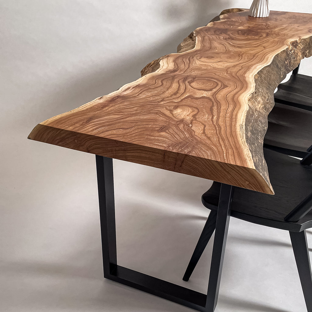 複数の板をつなぎ合わせたものとは異なり、途切れることなく続く杢目は自然の美しさをそのまま映し出します。