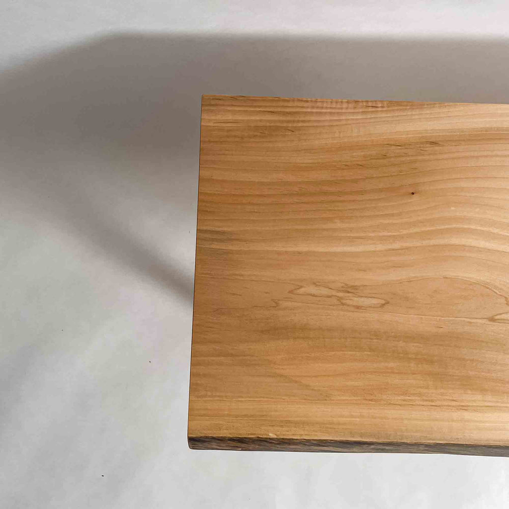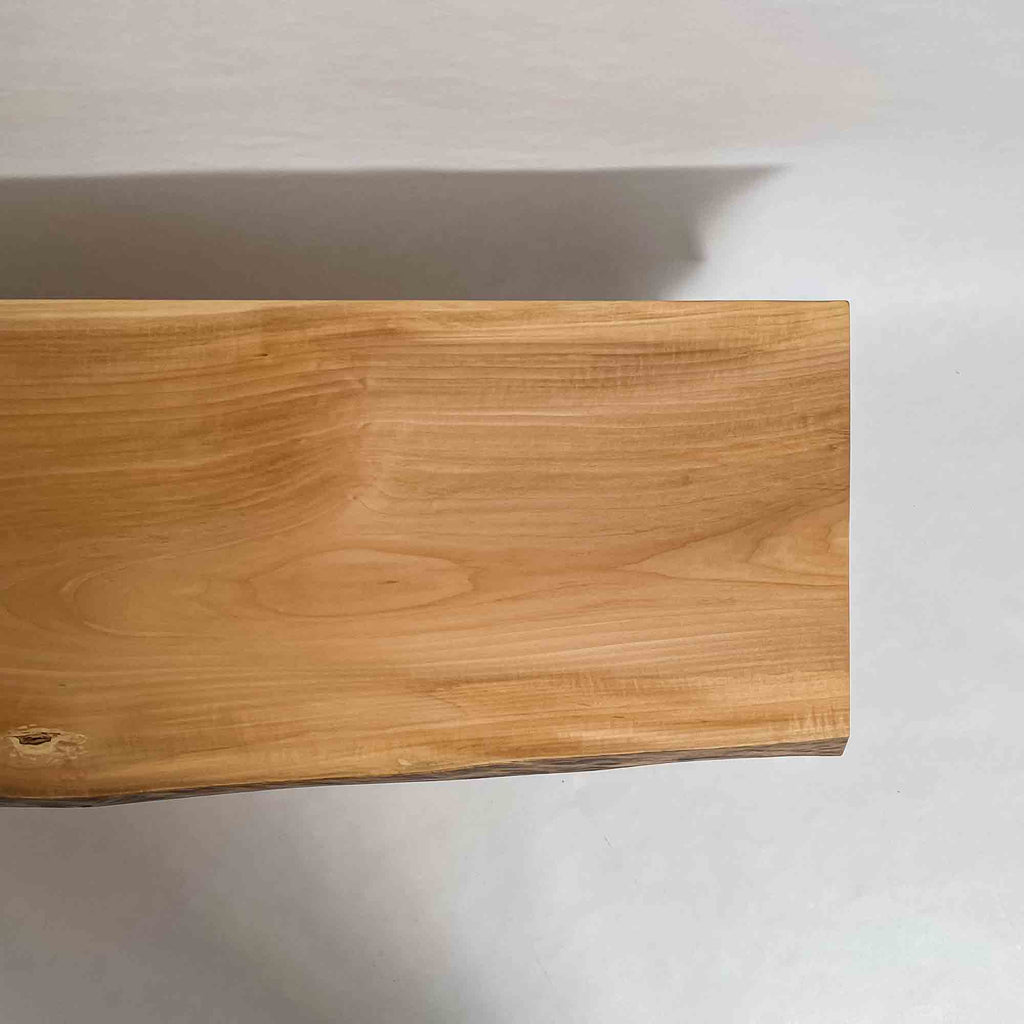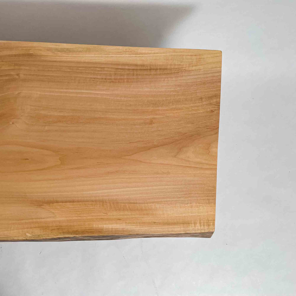 淡い紅色に優しい艶を帯びた水目桜。緻密でなめらかな木肌は上品な光沢を放ち、時を重ねるごとに落ち着いた飴色へと深まります。繊細さと力強さを併せ持つ材です。