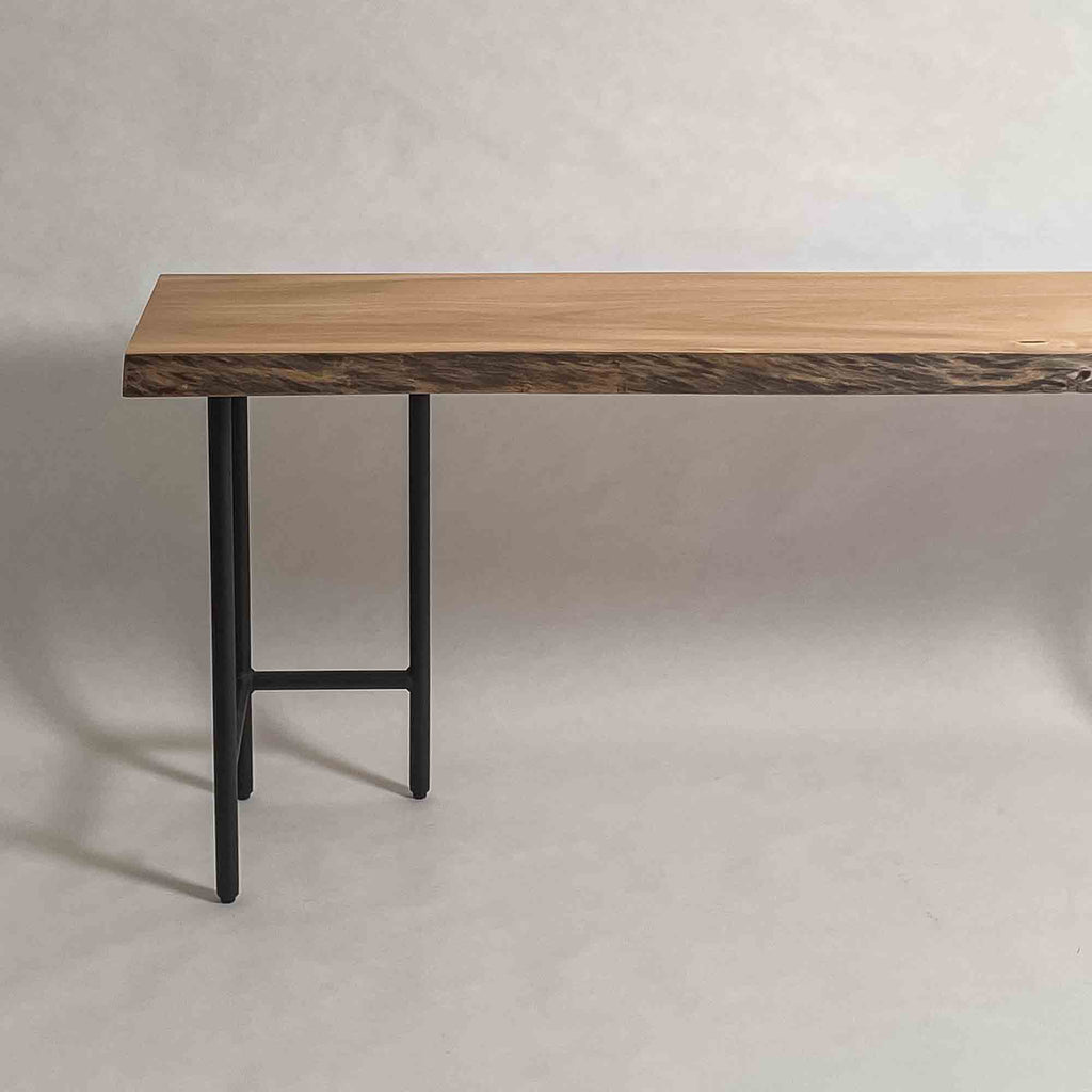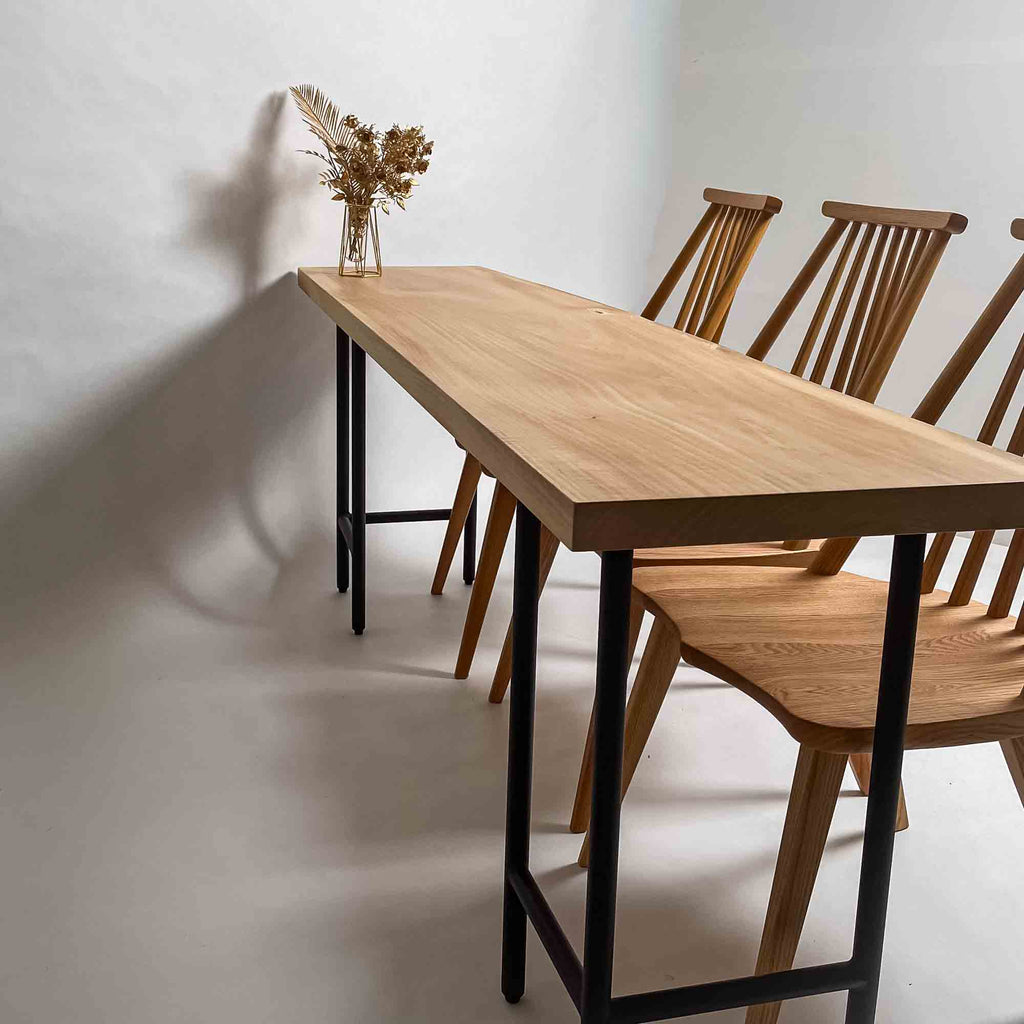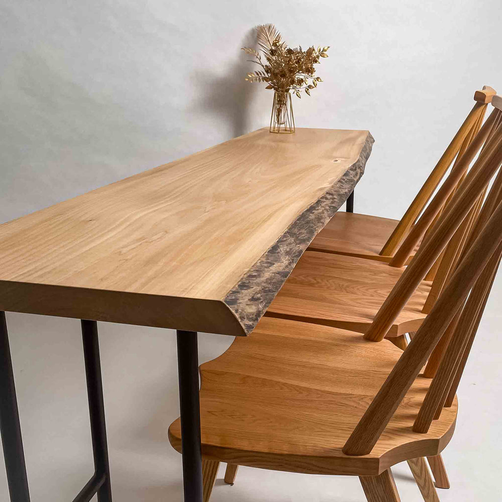 | 時代を超えて受け継がれる機能性と、現代の暮らしに寄り添うデザイン性を兼ね備えた一枚板家具の製作を手がける。 | 現代の空間に映えるモダンなデザイン性を取り入れながら、一枚板の持つ素材感と存在感を活かした加工・製作を行う。 | |