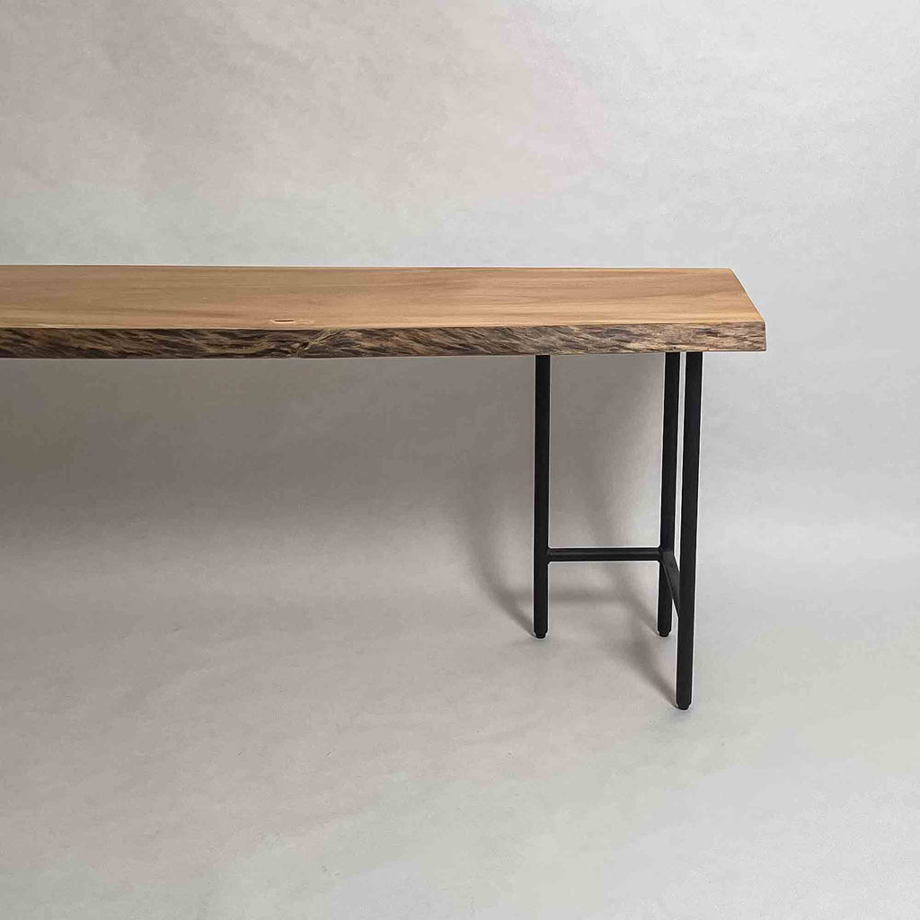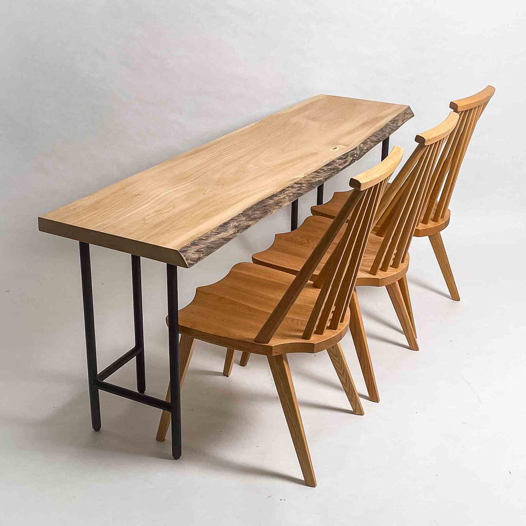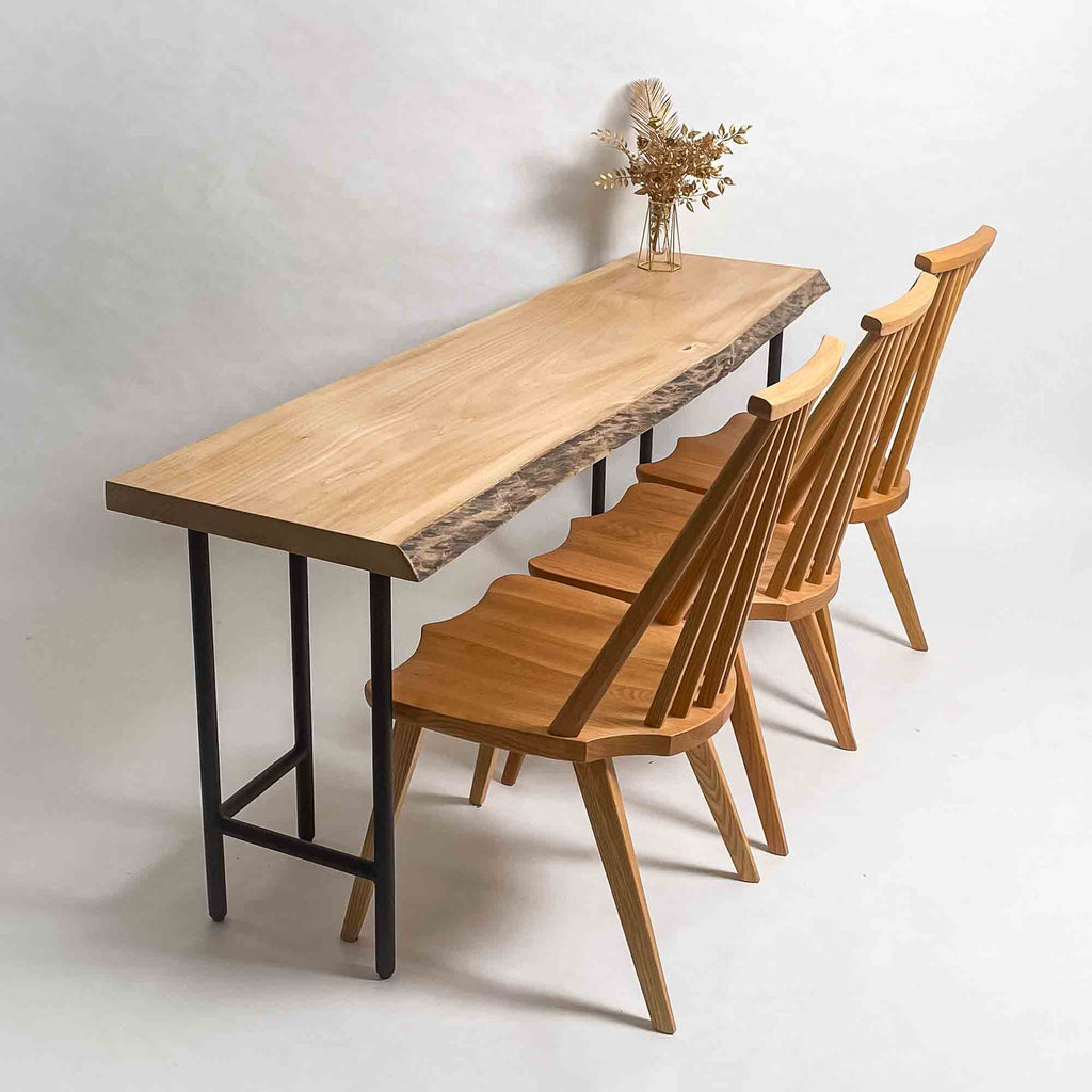 | 時代を超えて受け継がれる機能性と、現代の暮らしに寄り添うデザイン性を兼ね備えた一枚板家具の製作を手がける。 | 現代の空間に映えるモダンなデザイン性を取り入れながら、一枚板の持つ素材感と存在感を活かした加工・製作を行う。 | |