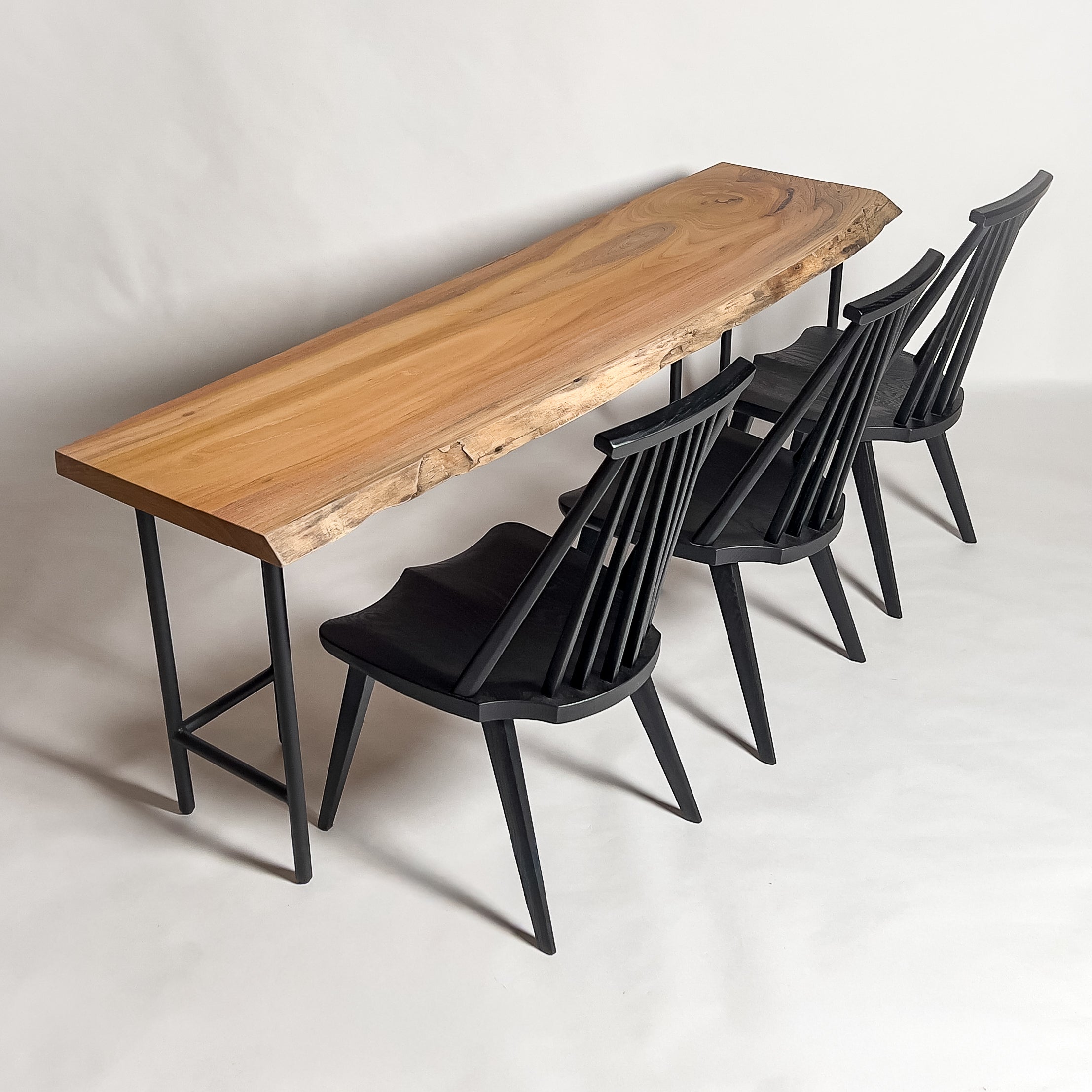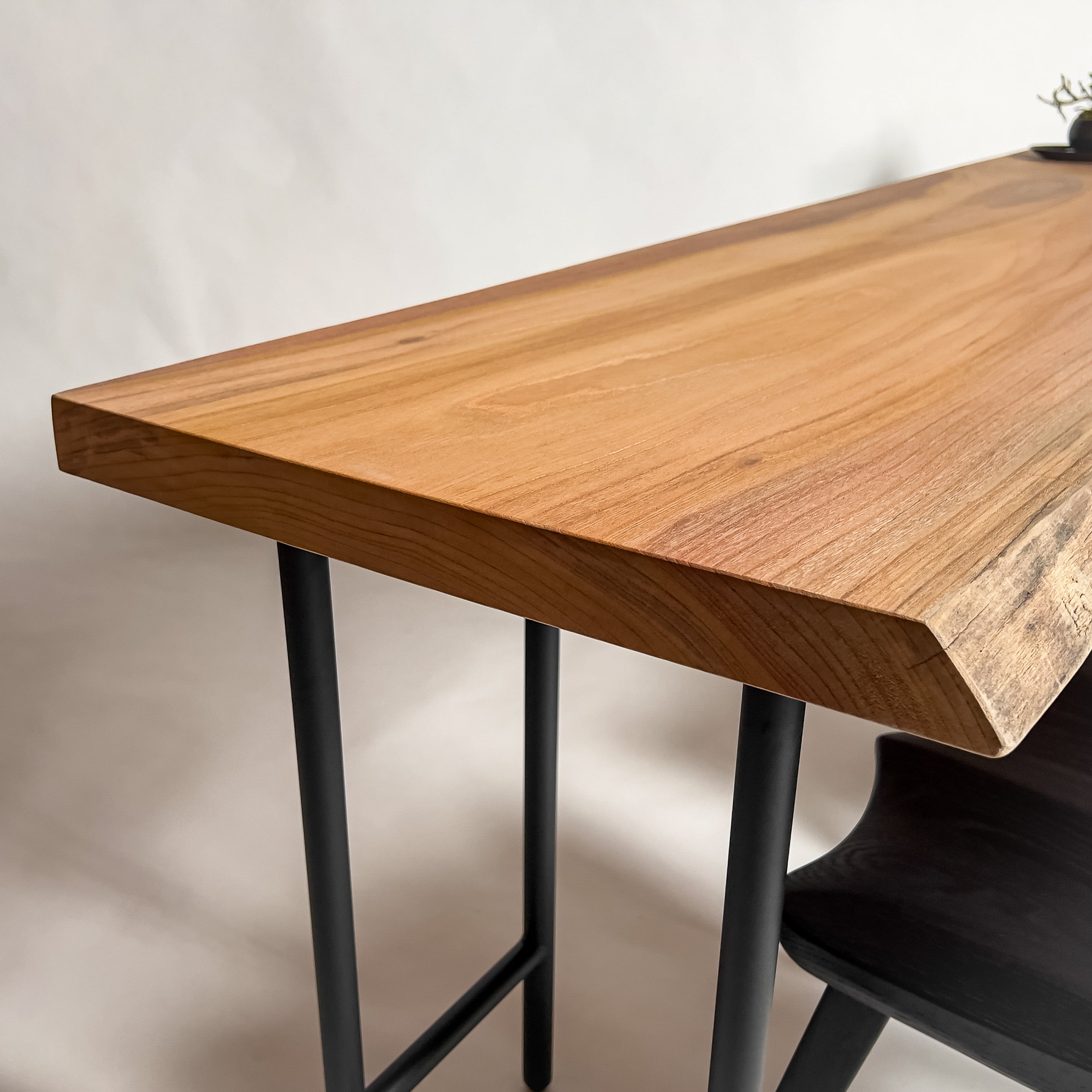 | 時代を超えて受け継がれる機能性と、現代の暮らしに寄り添うデザイン性を兼ね備えた一枚板家具の製作を手がける。 | 現代の空間に映えるモダンなデザイン性を取り入れながら、一枚板の持つ素材感と存在感を活かした加工・製作を行う。 | |