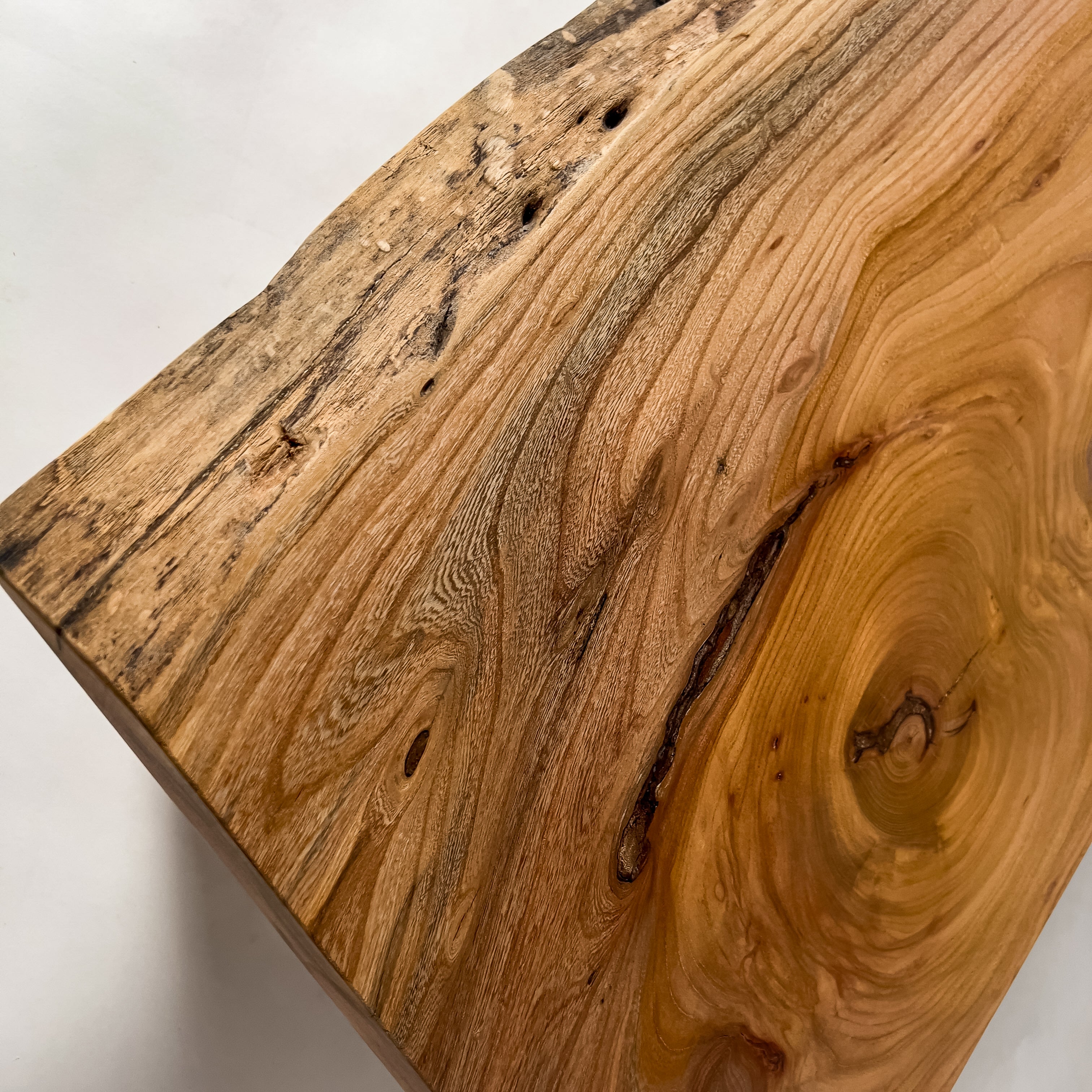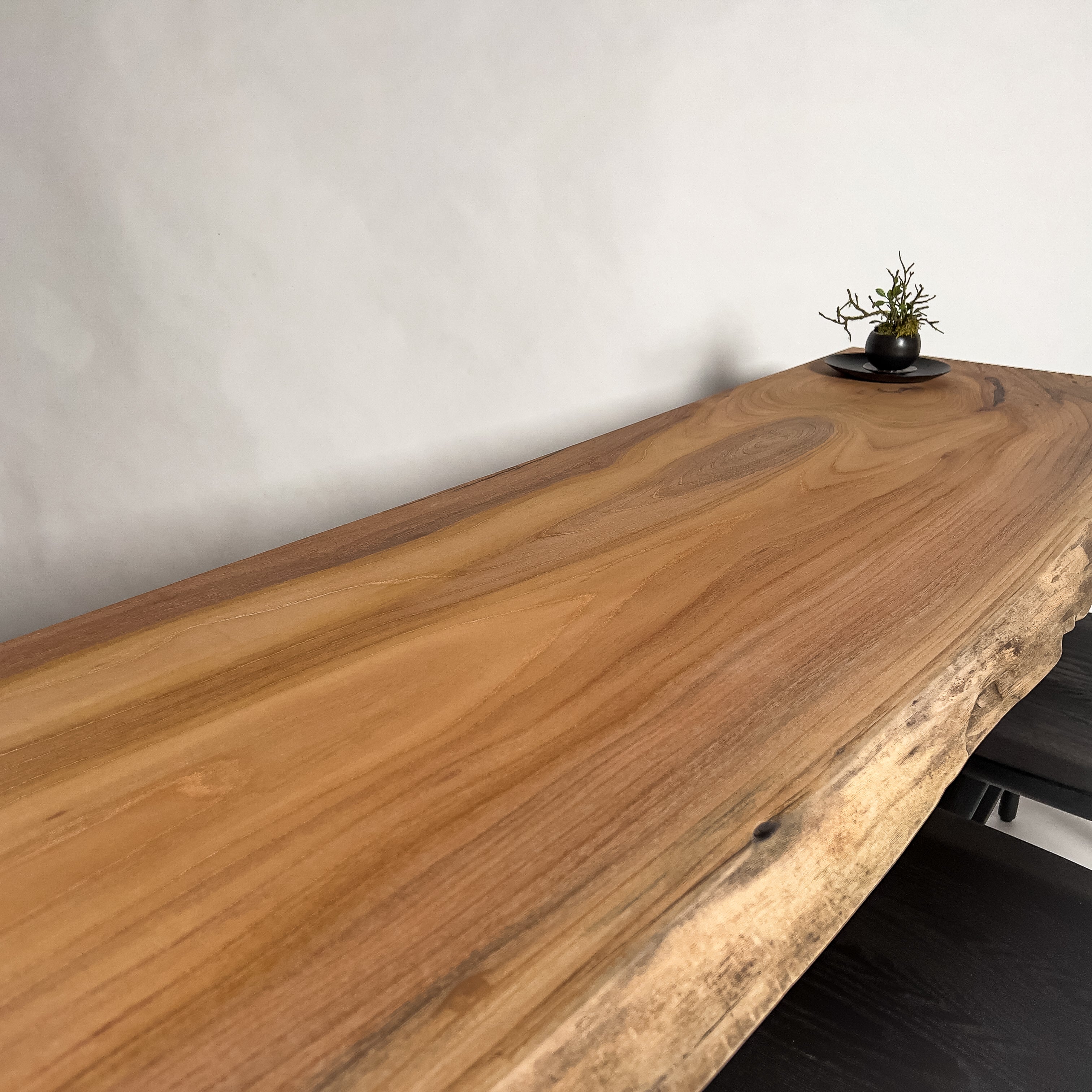 複数の板をつなぎ合わせたものとは異なり、途切れることなく続く杢目は自然の美しさをそのまま映し出します。