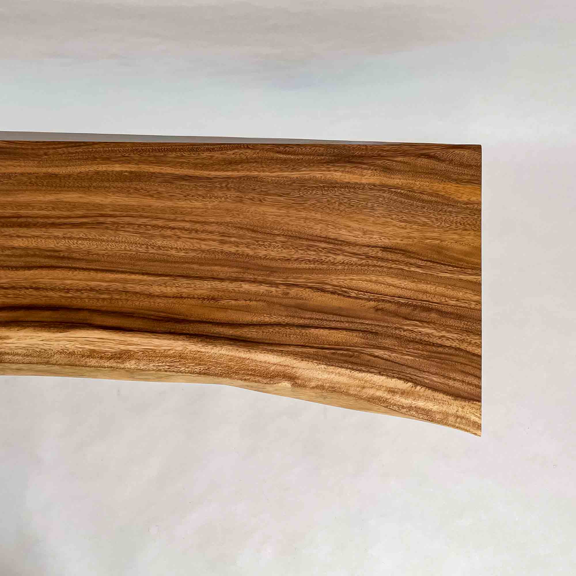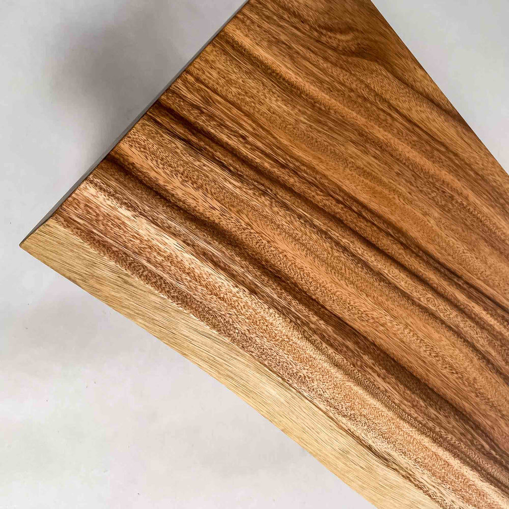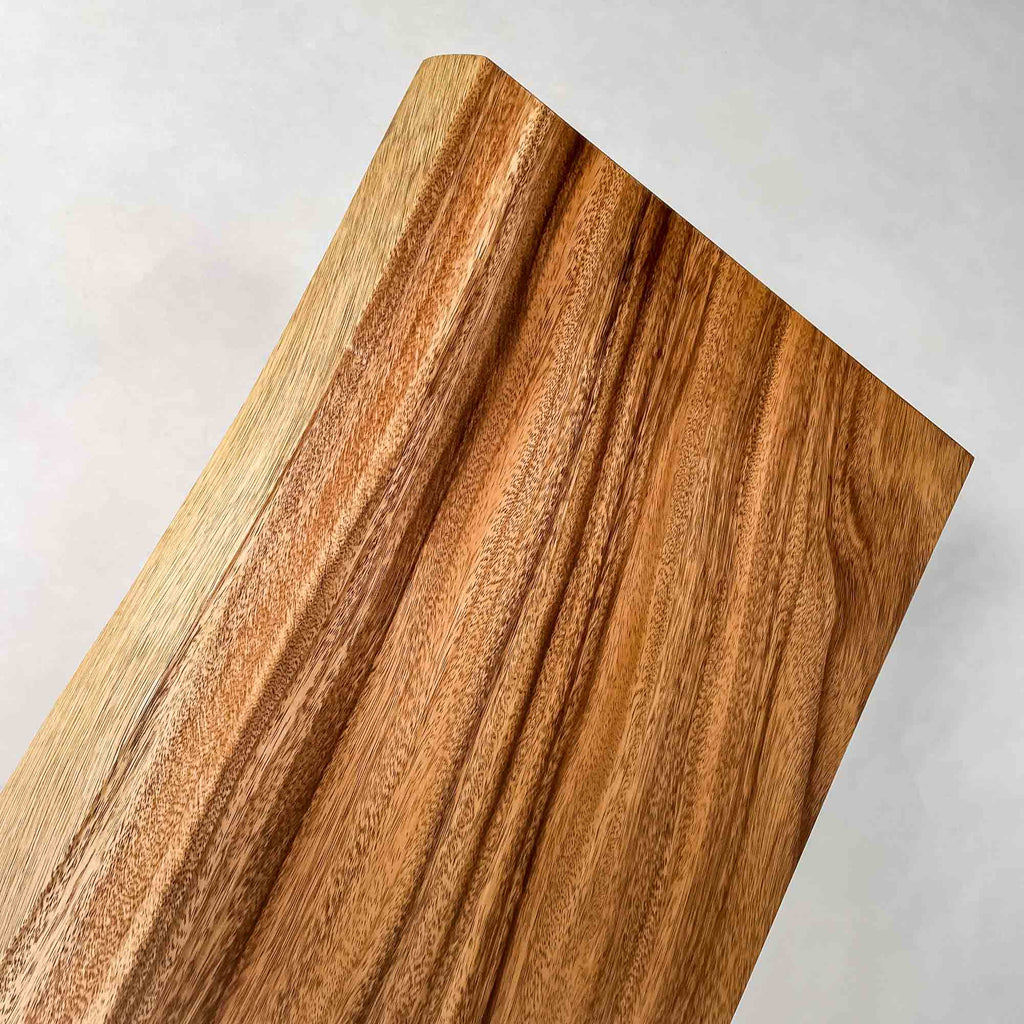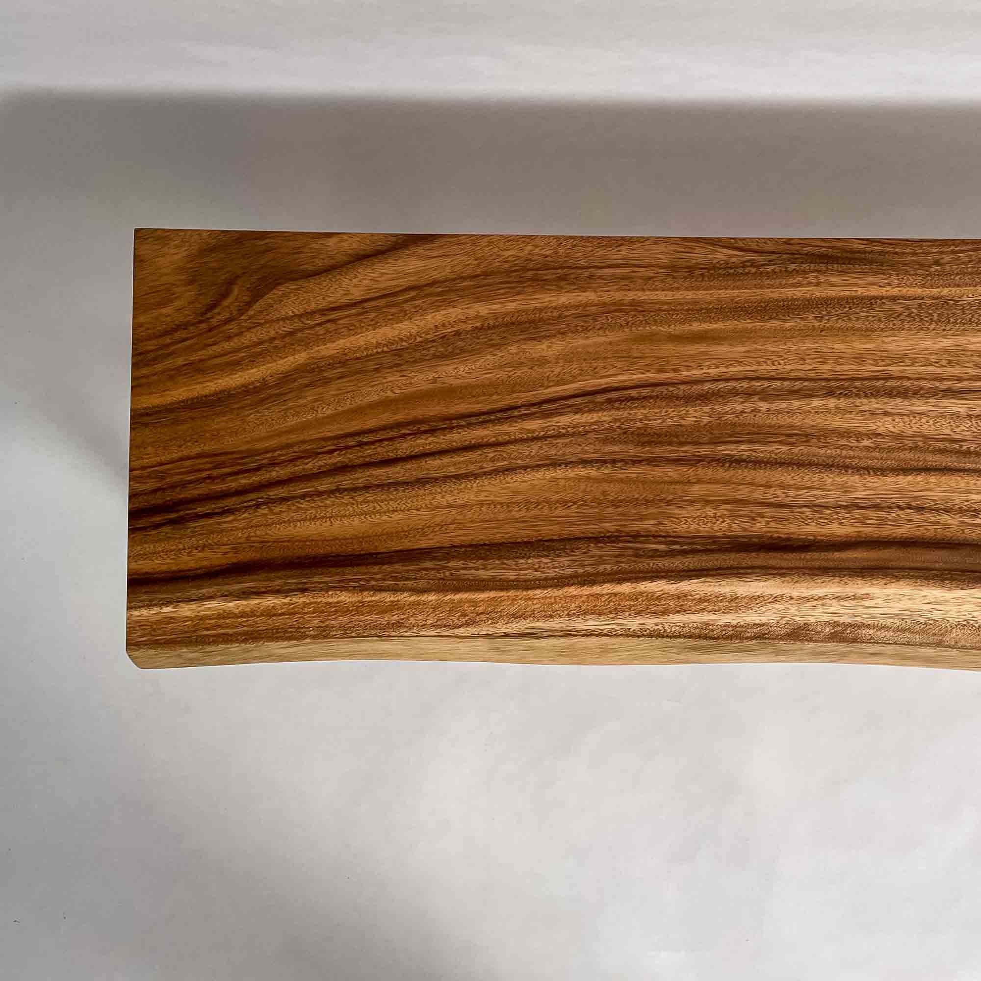 この板を選ぶ理由 成長の早い環境で育った木が濃淡の層として現れ、くびれた形とともに日常の動線に馴染みます。 |