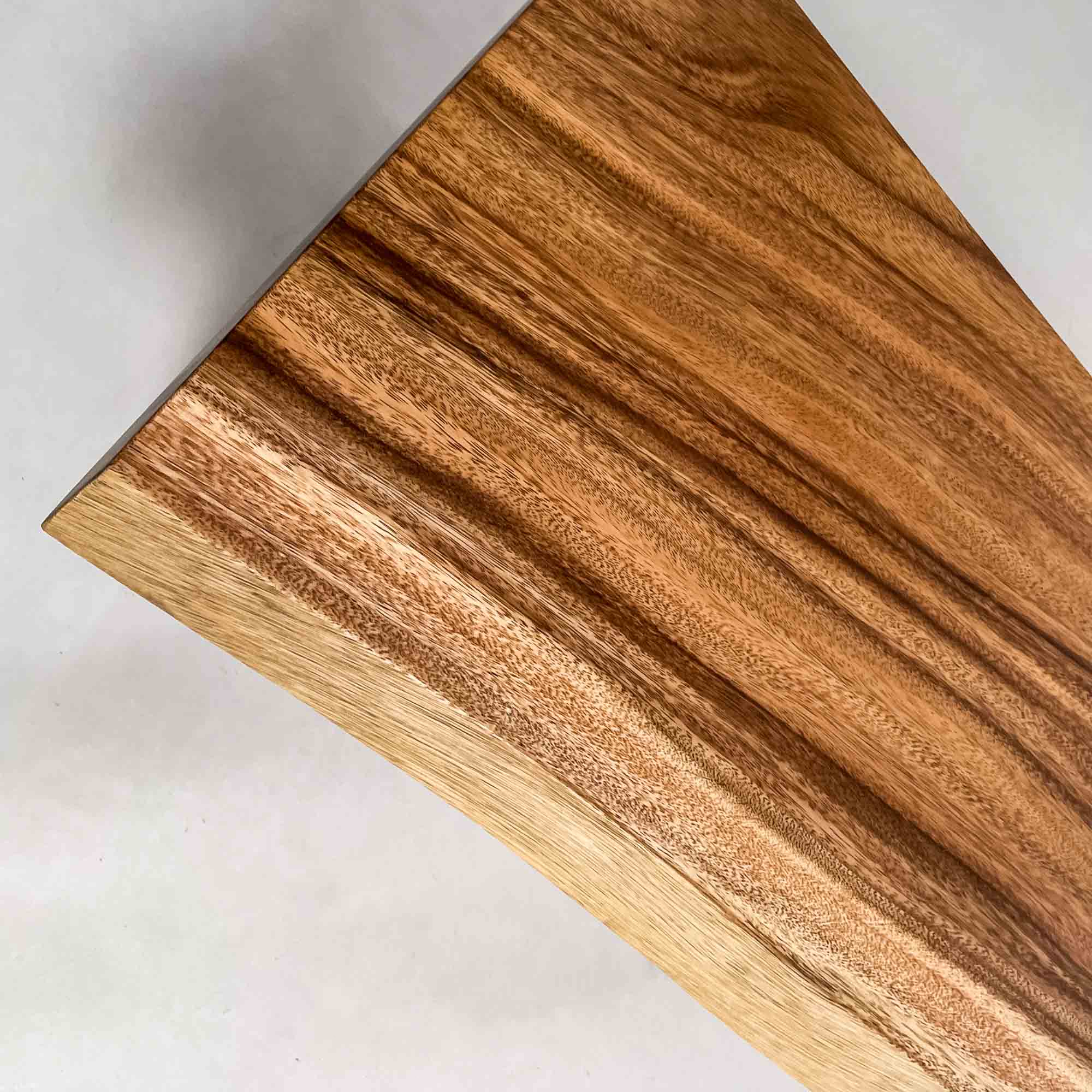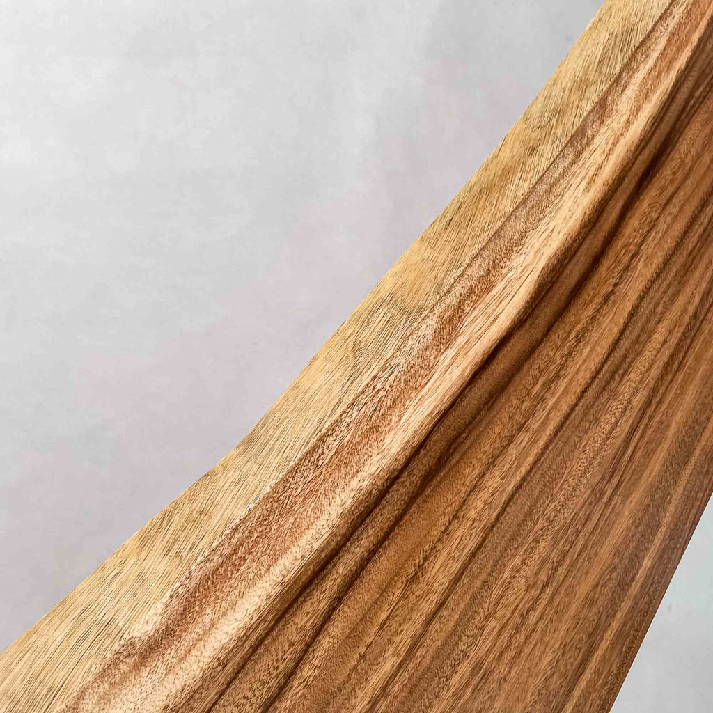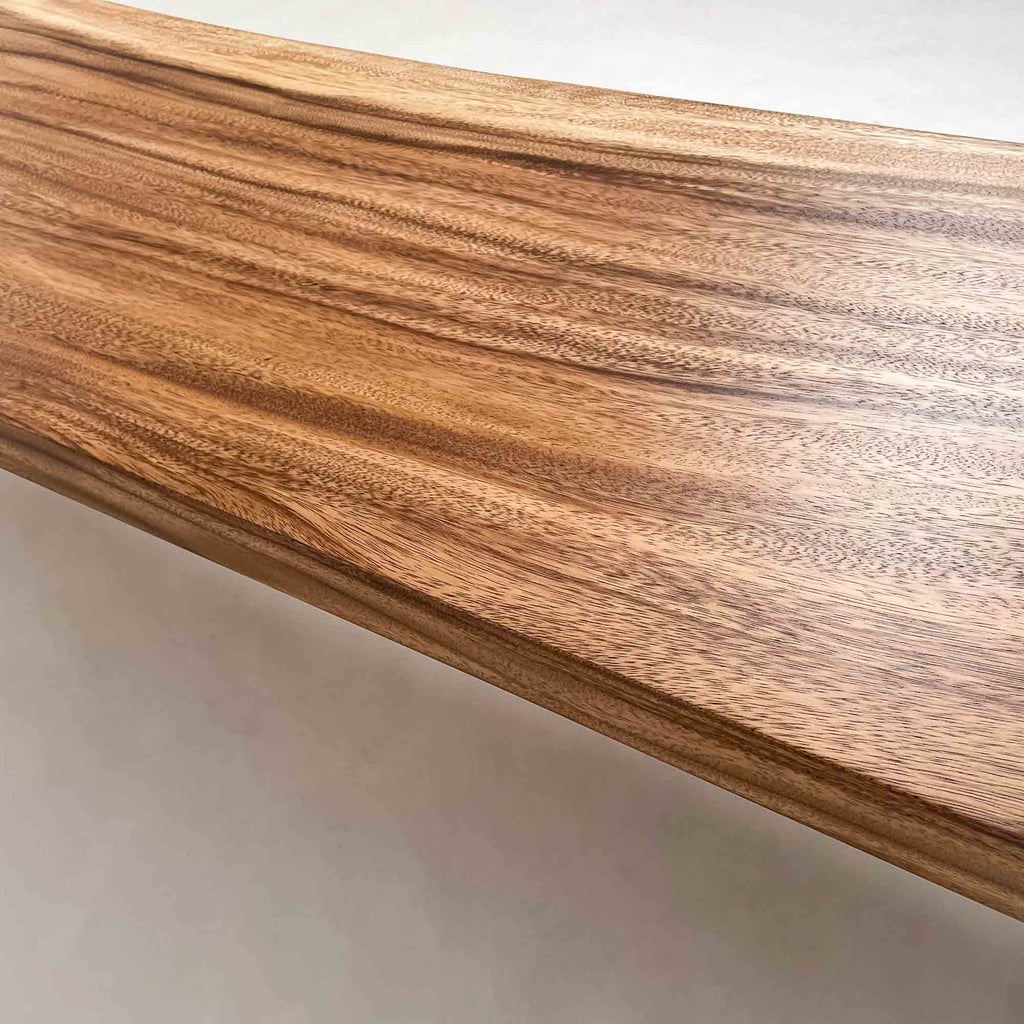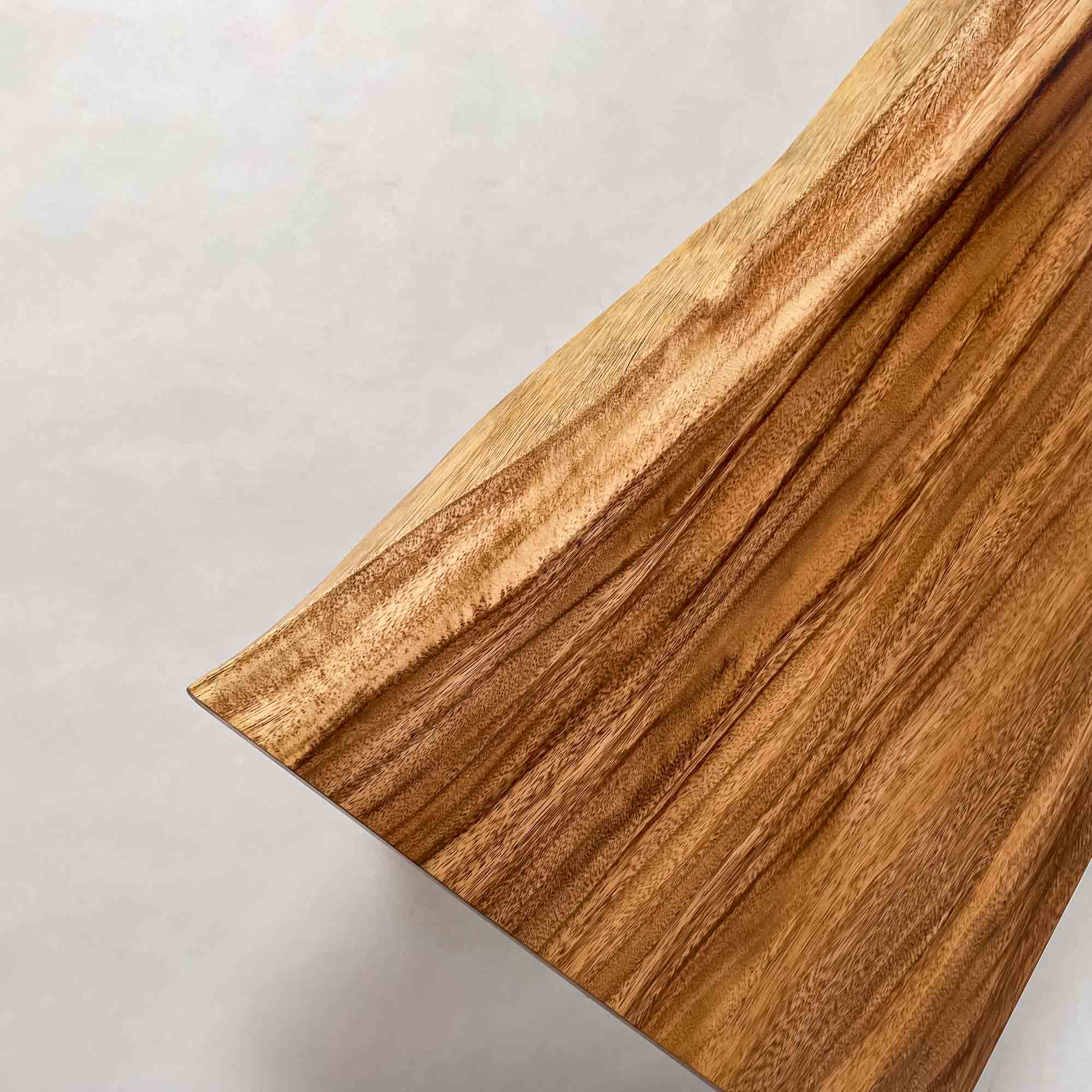 この板を選ぶ理由 成長の早い環境で育った木が濃淡の層として現れ、くびれた形とともに日常の動線に馴染みます。 |