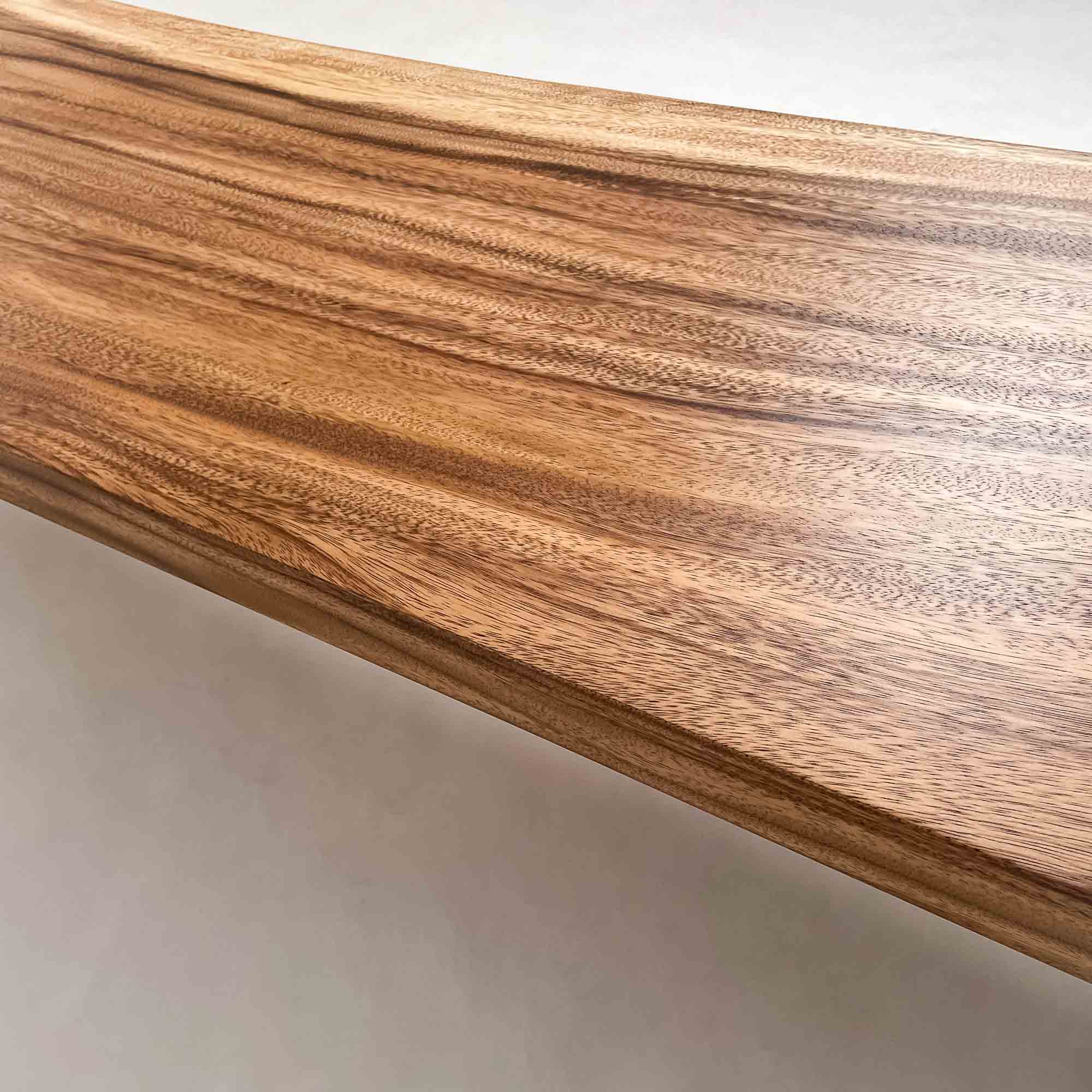 複数の板をつなぎ合わせたものとは異なり、途切れることなく続く杢目は自然の美しさをそのまま映し出します。