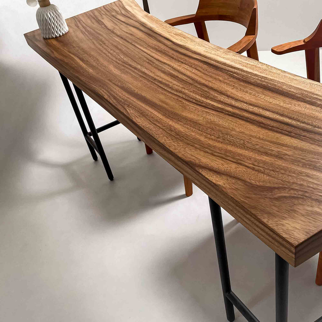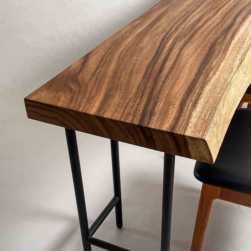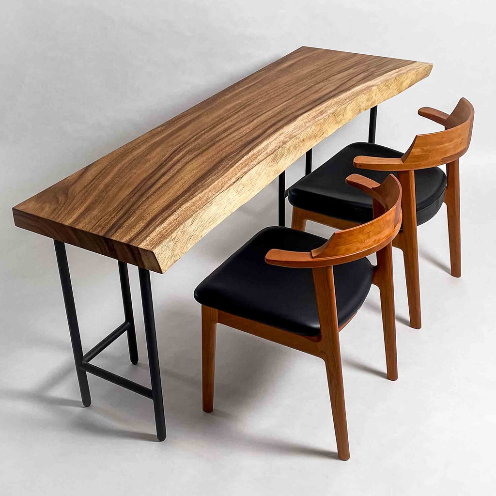 | 時代を超えて受け継がれる機能性と、現代の暮らしに寄り添うデザイン性を兼ね備えた一枚板家具の製作を手がける。 | 現代の空間に映えるモダンなデザイン性を取り入れながら、一枚板の持つ素材感と存在感を活かした加工・製作を行う。 | |