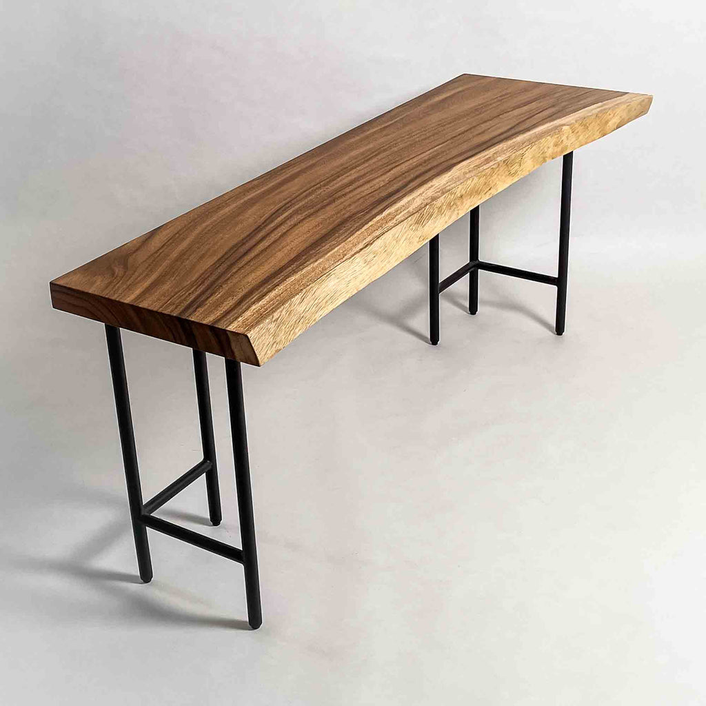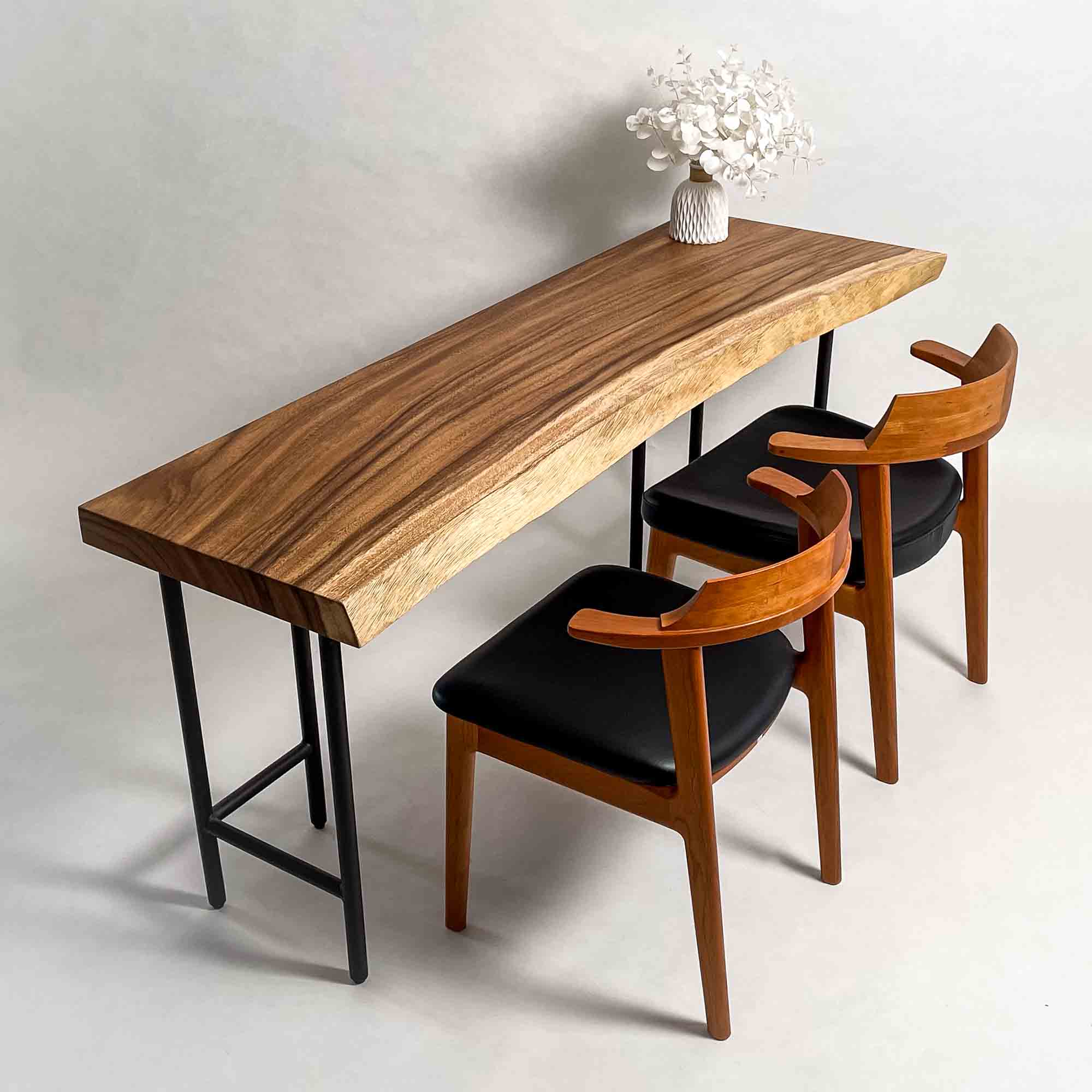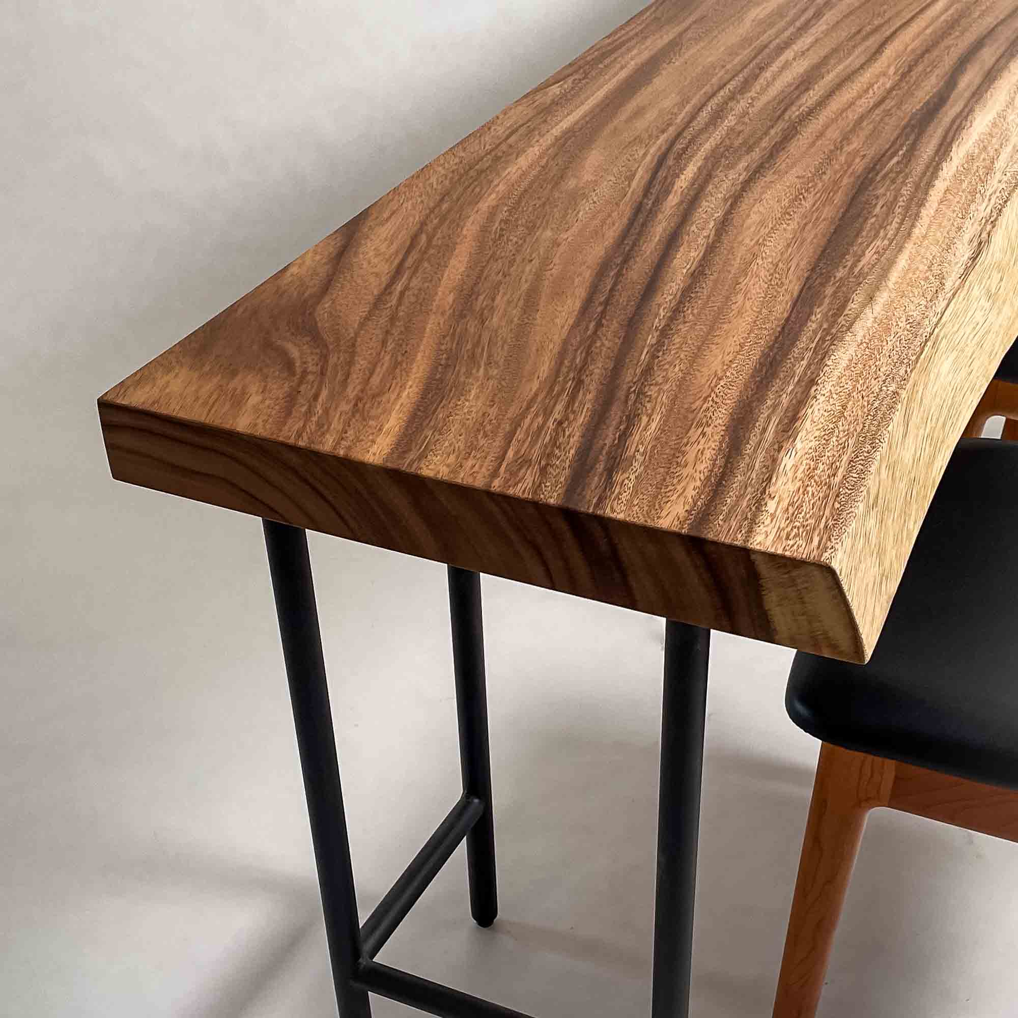 | 時代を超えて受け継がれる機能性と、現代の暮らしに寄り添うデザイン性を兼ね備えた一枚板家具の製作を手がける。 | 現代の空間に映えるモダンなデザイン性を取り入れながら、一枚板の持つ素材感と存在感を活かした加工・製作を行う。 | |