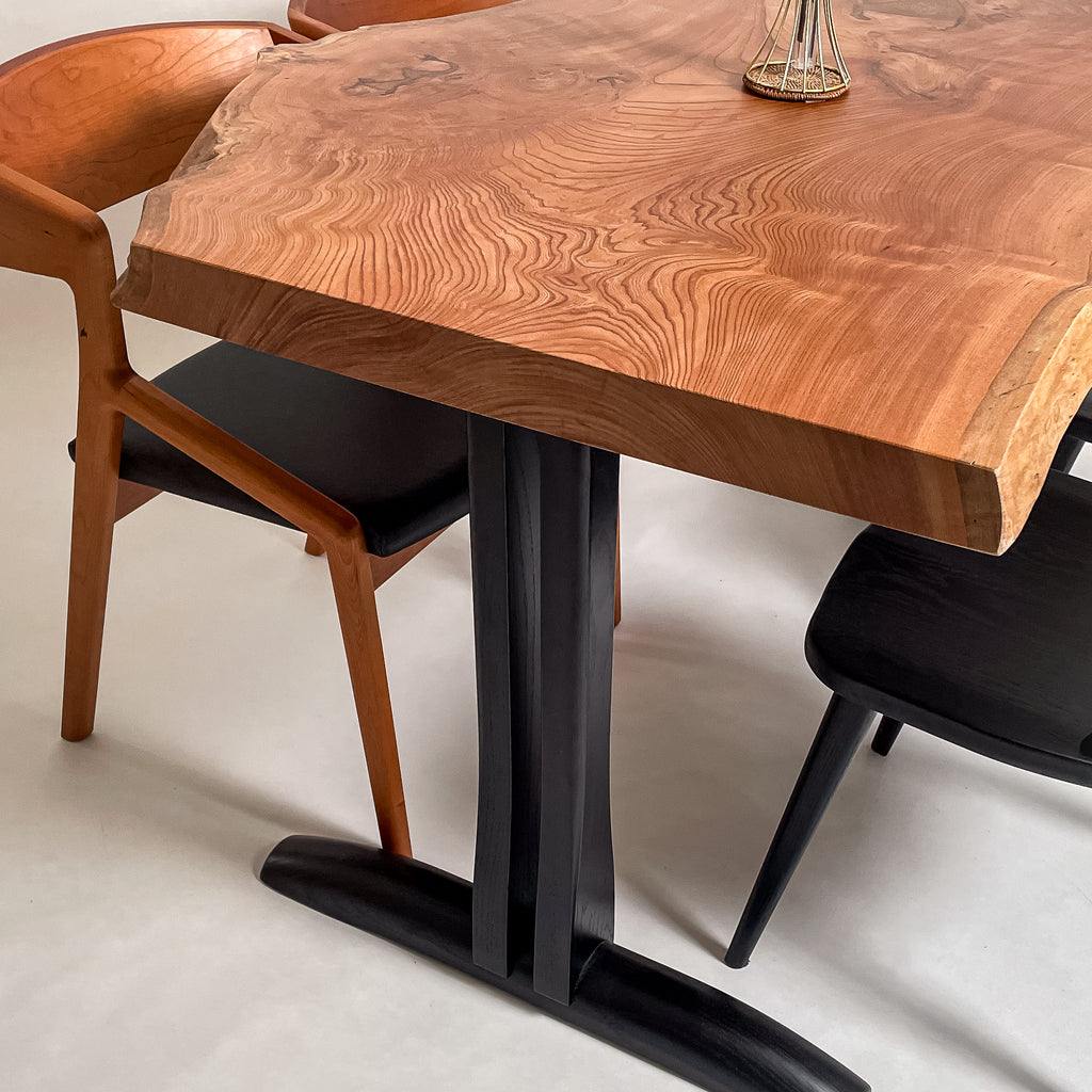 | 時代を超えて受け継がれる機能性と、現代の暮らしに寄り添うデザイン性を兼ね備えた一枚板家具の製作を手がける。 | 現代の空間に映えるモダンなデザイン性を取り入れながら、一枚板の持つ素材感と存在感を活かした加工・製作を行う。 | |