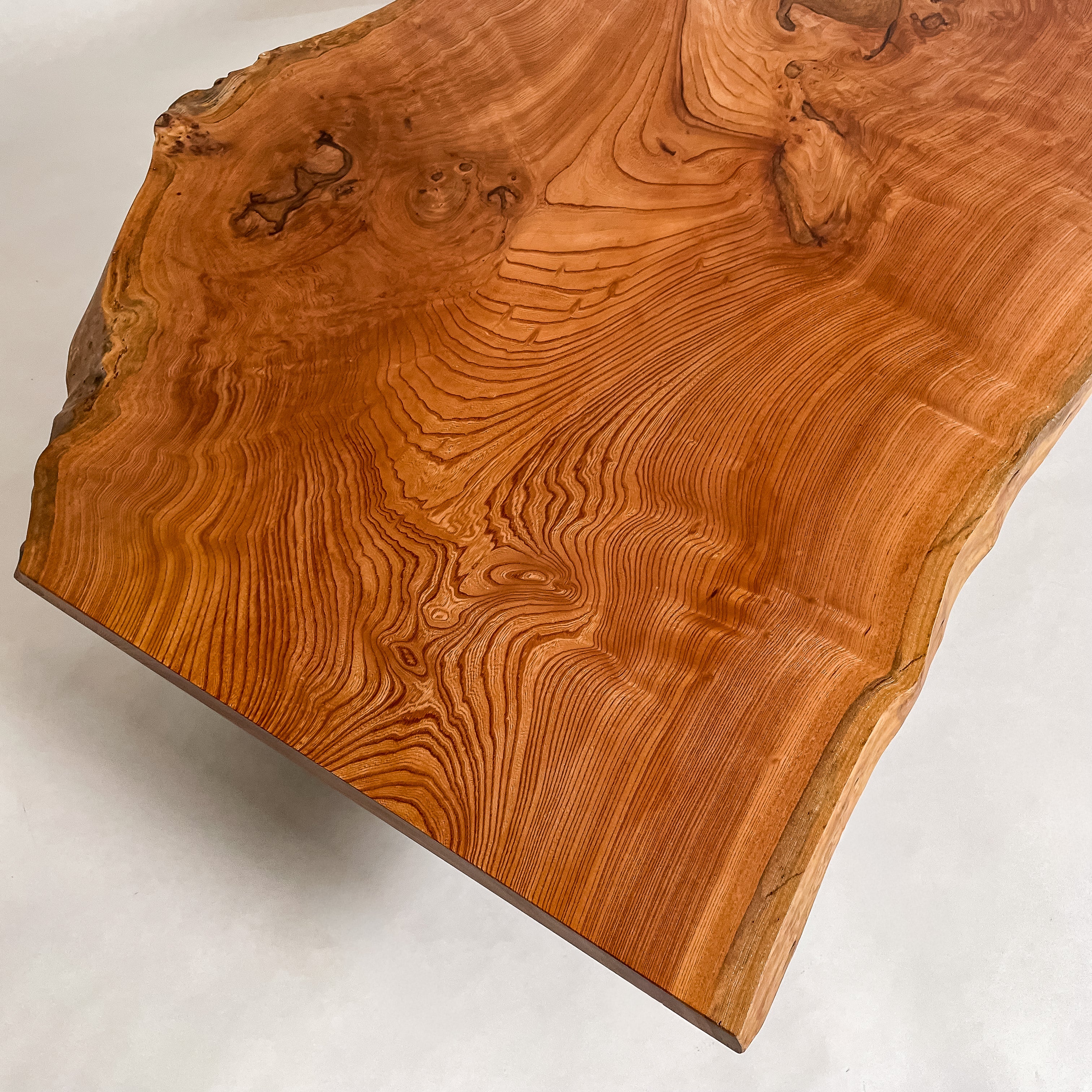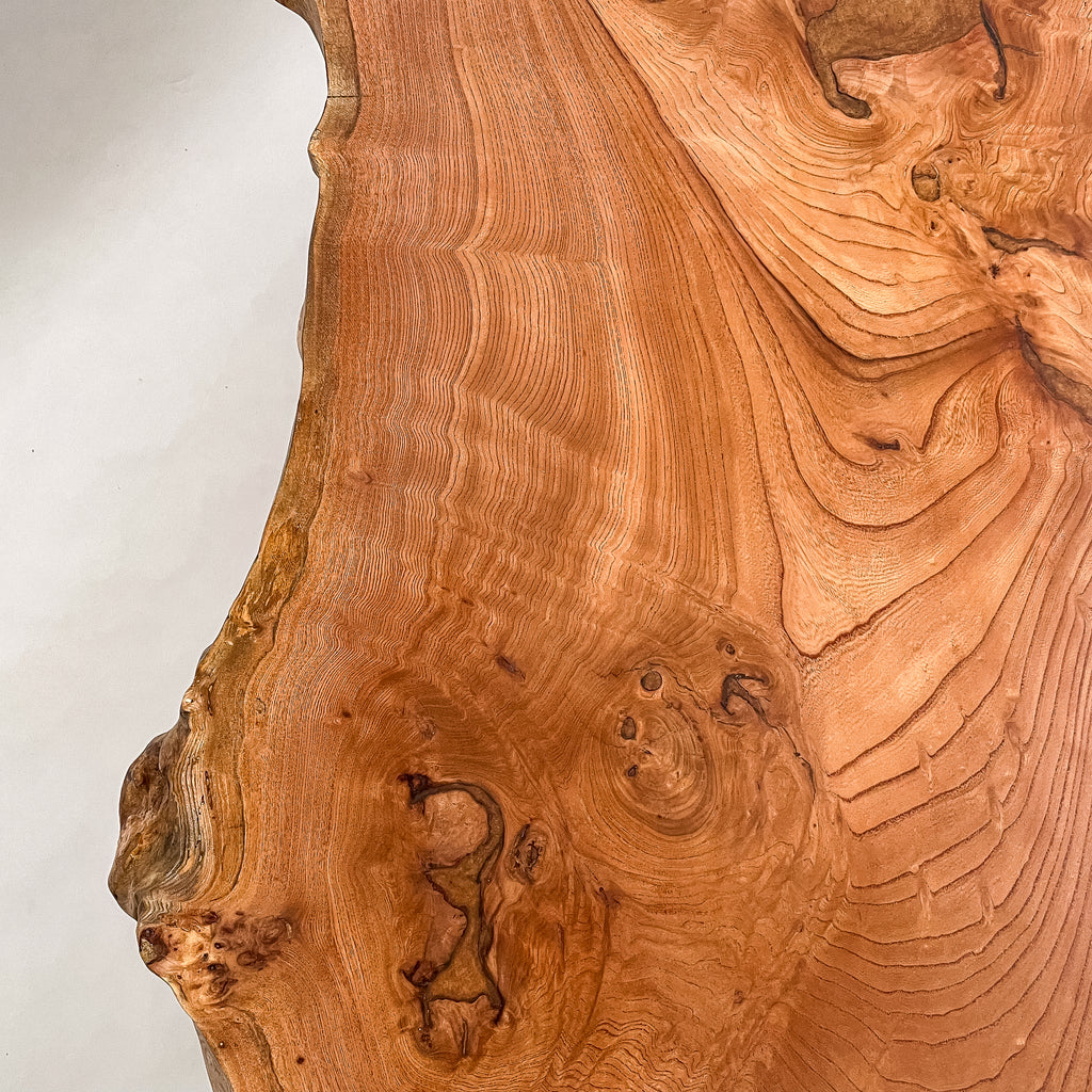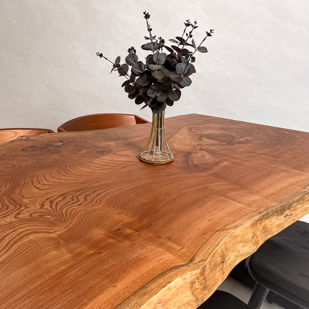 複数の板をつなぎ合わせたものとは異なり、途切れることなく続く杢目は自然の美しさをそのまま映し出します。