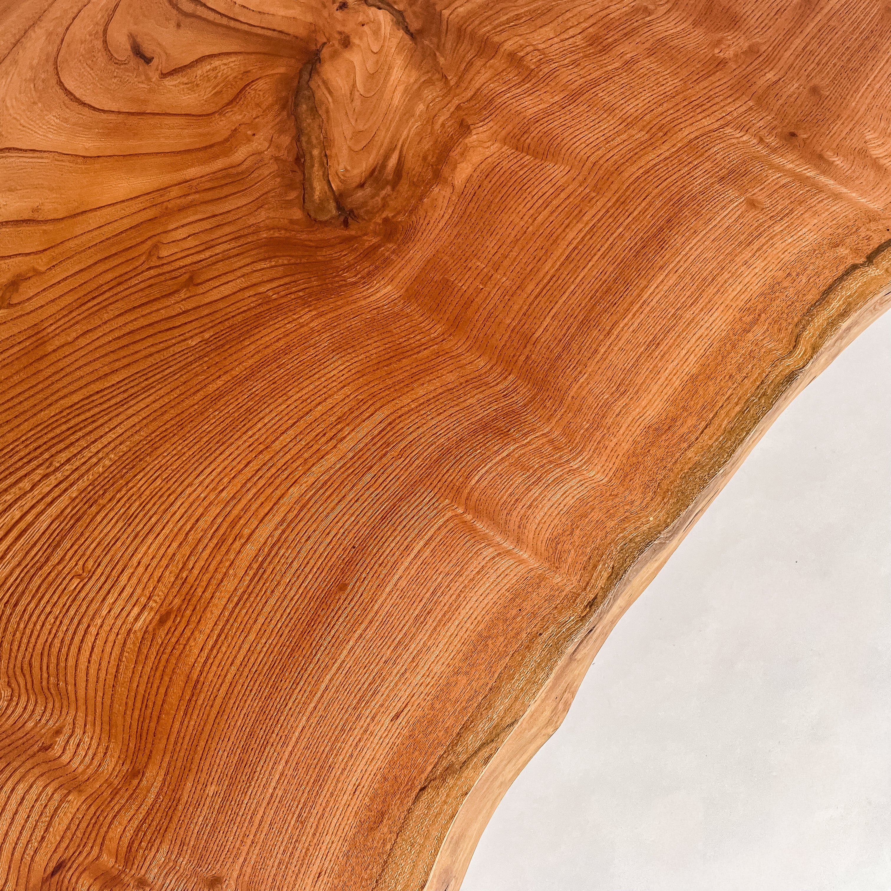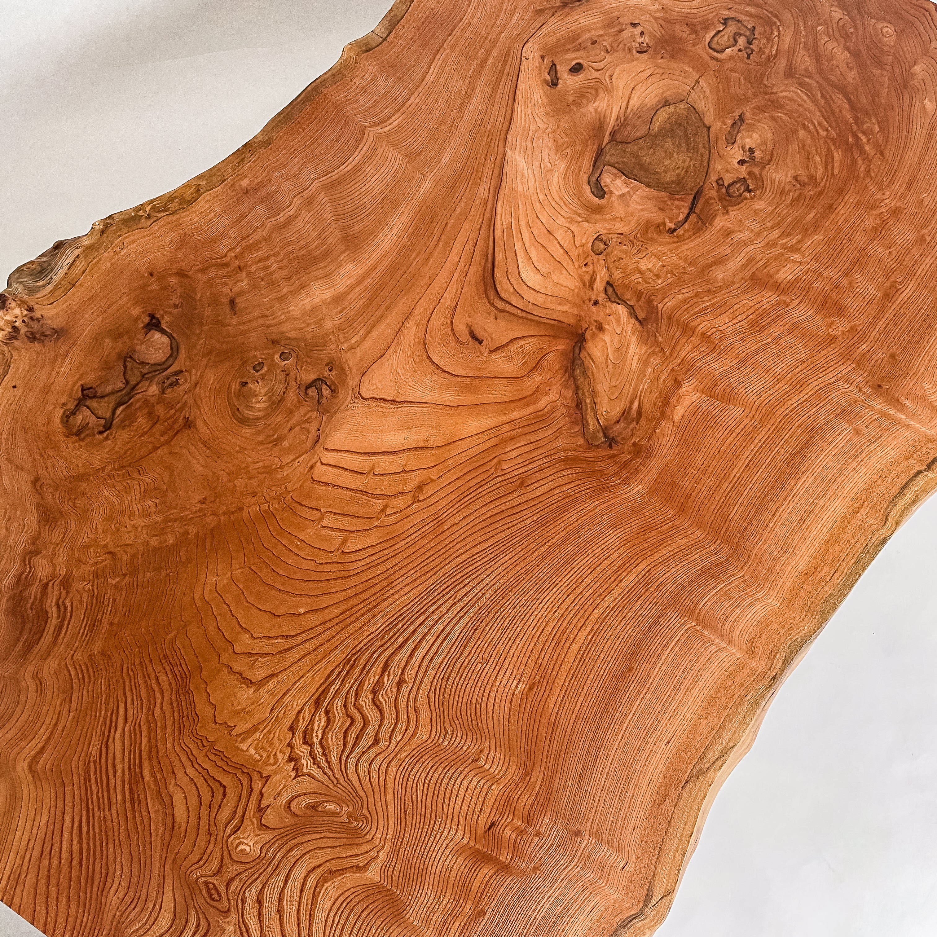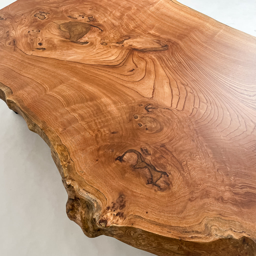 複数の板をつなぎ合わせたものとは異なり、途切れることなく続く杢目は自然の美しさをそのまま映し出します。