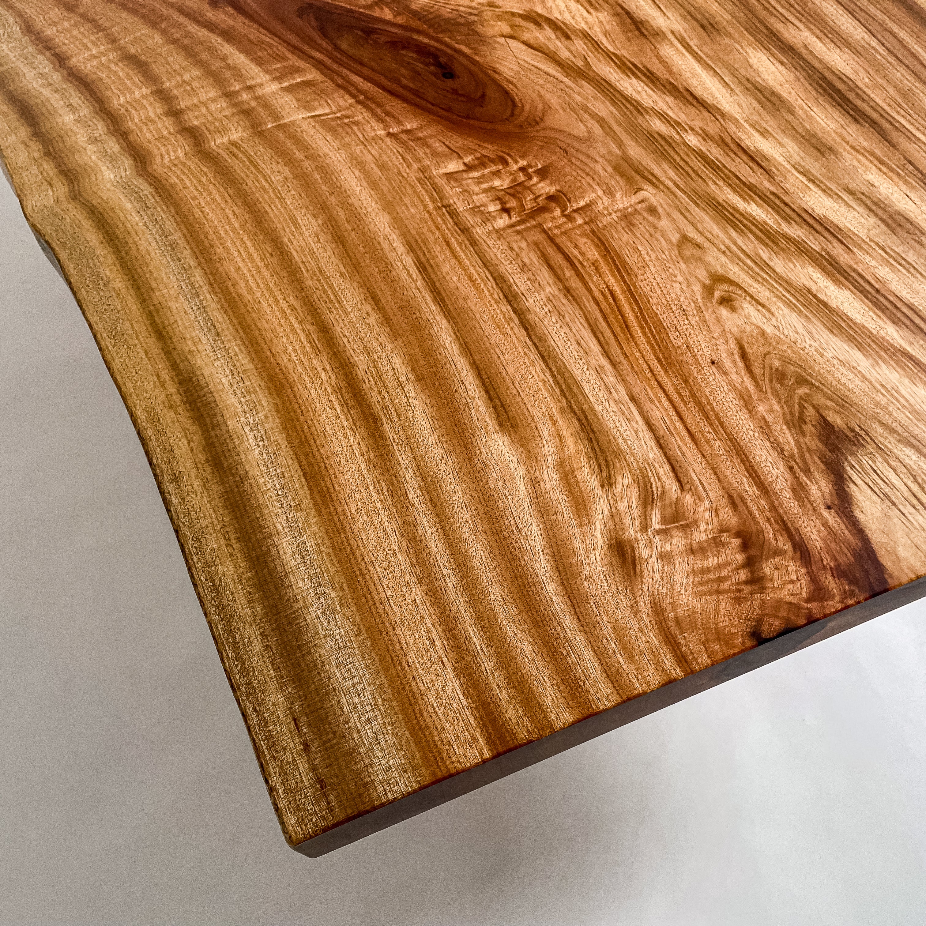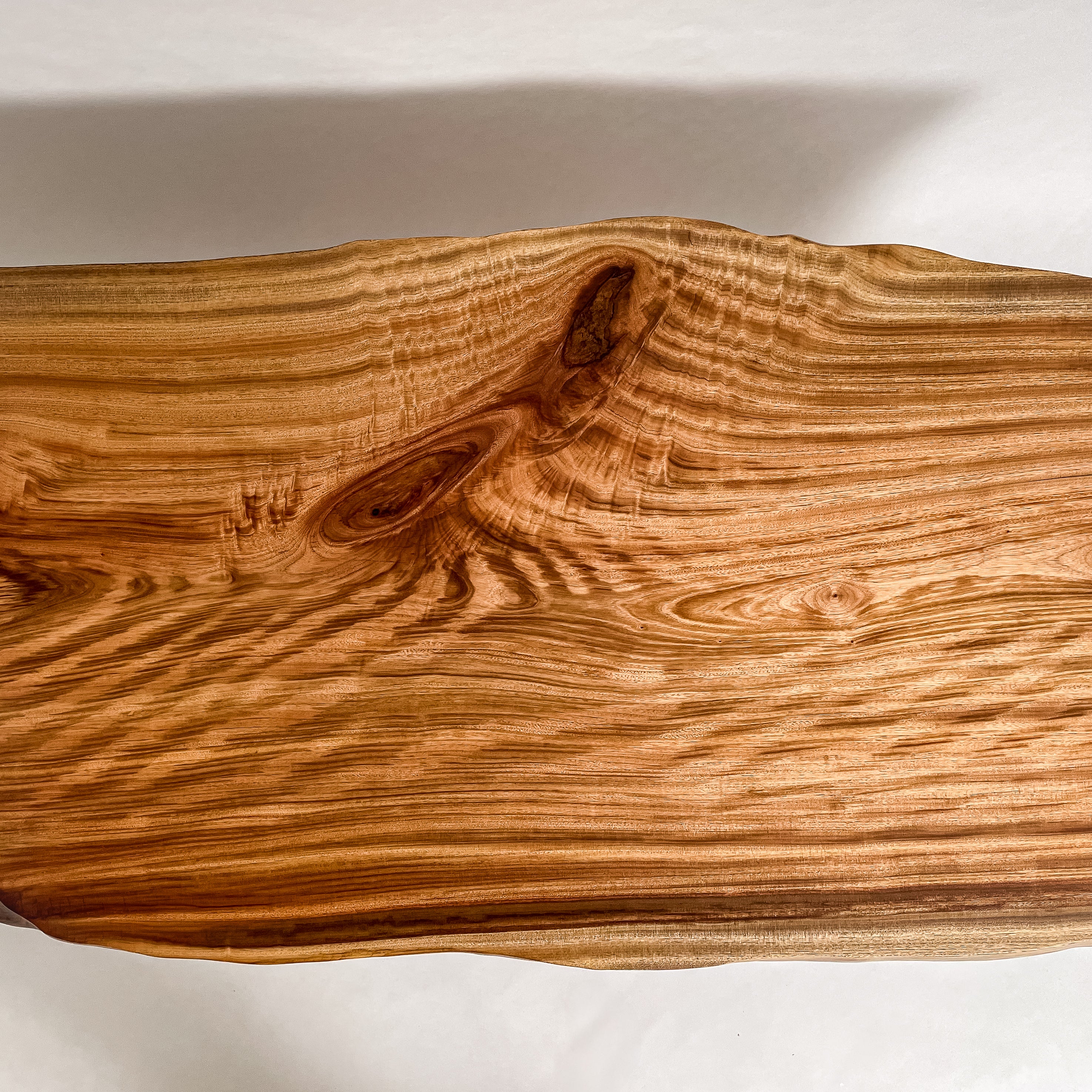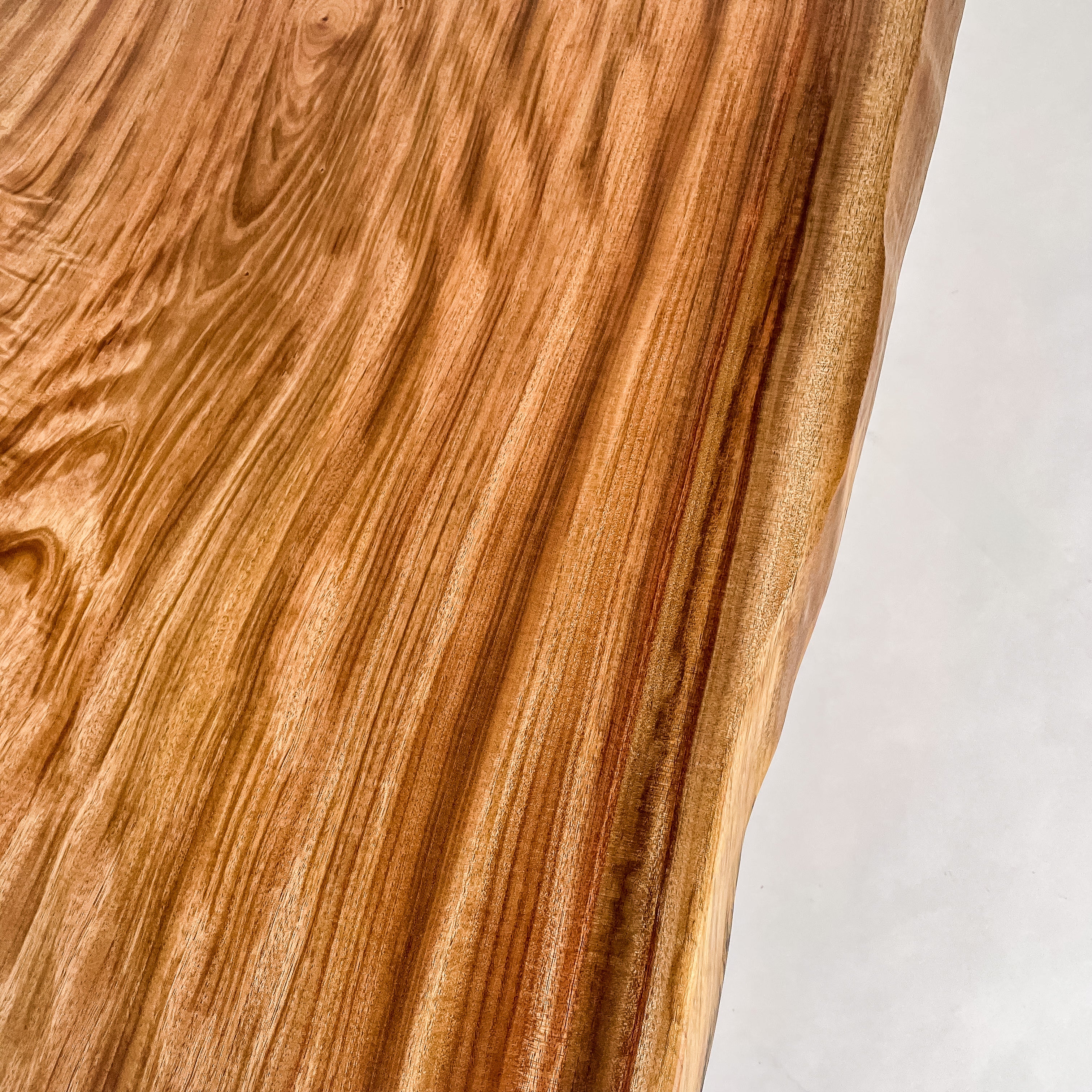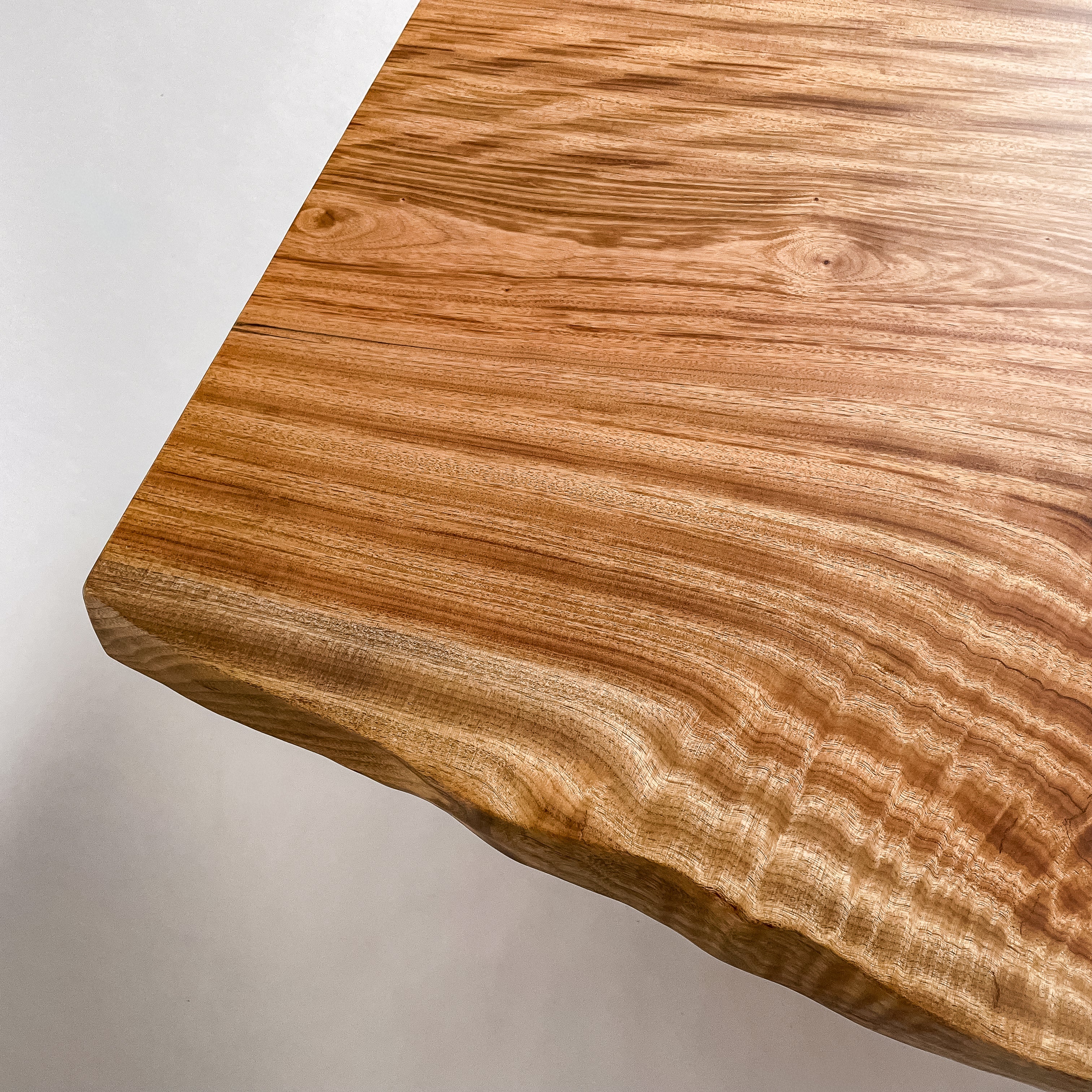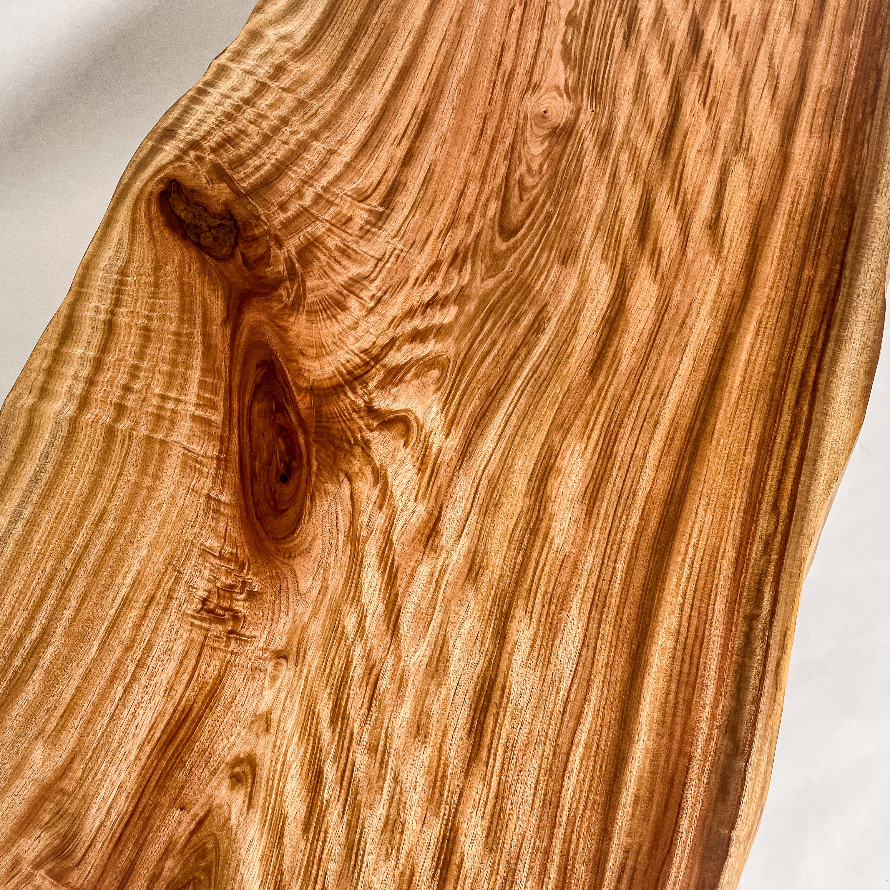仕上がりの質感や印象にまで細やかに気を配り、使われる空間や暮らしを見据えた、やわらかな佇まいへと丁寧に仕上げる。   木が持つ節や皮、杢目の表情に寄り添い、その一つひとつを活かすことで、唯一無二の素材美を際立たせた一枚板づくりを行う。