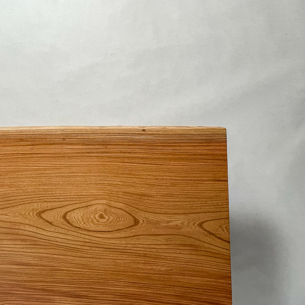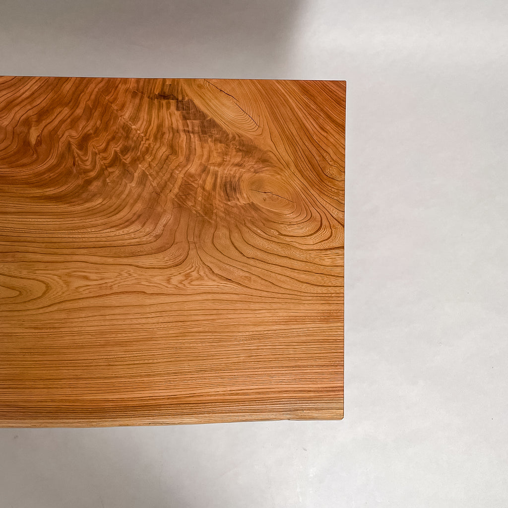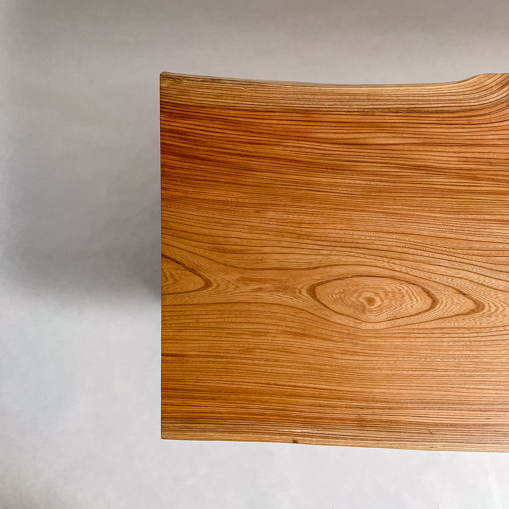 自然が生み出した不均一な表情を 読み解き、素材の持つ品格や奥行きが際立つよう、細部まで配慮した加工で完成度を高める。 一枚板単体の美しさだけでなく、置かれる空間や光の入り方までを思い描き、その場に自然と溶け込む佇まいへと仕上げる。