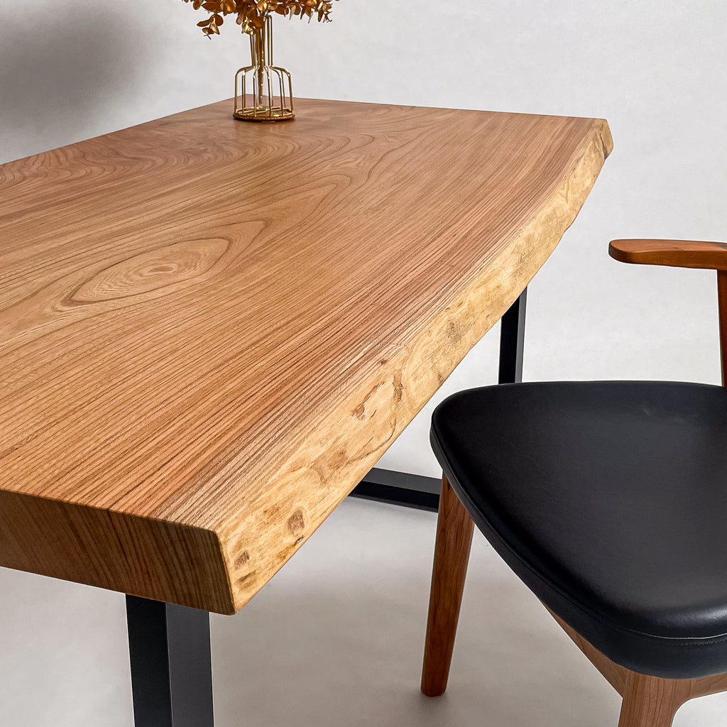 一枚板がもつ力強さとしなやかさを見極め、荒々しさと繊細さを併せ持つ加工を施すことで、その躍動感を余すことなく引き出す。 肌触り、見た目、素材感。そのすべてにおいて高い調和を図り、熟練の技術と豊富な経験をもとに、一枚板の魅力を緻密に引き出す。