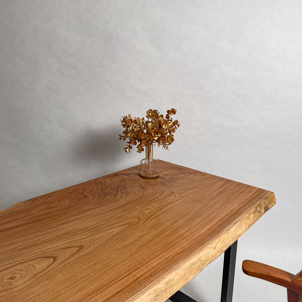 複数の板をつなぎ合わせたものとは異なり、途切れることなく続く杢目は自然の美しさをそのまま映し出します。