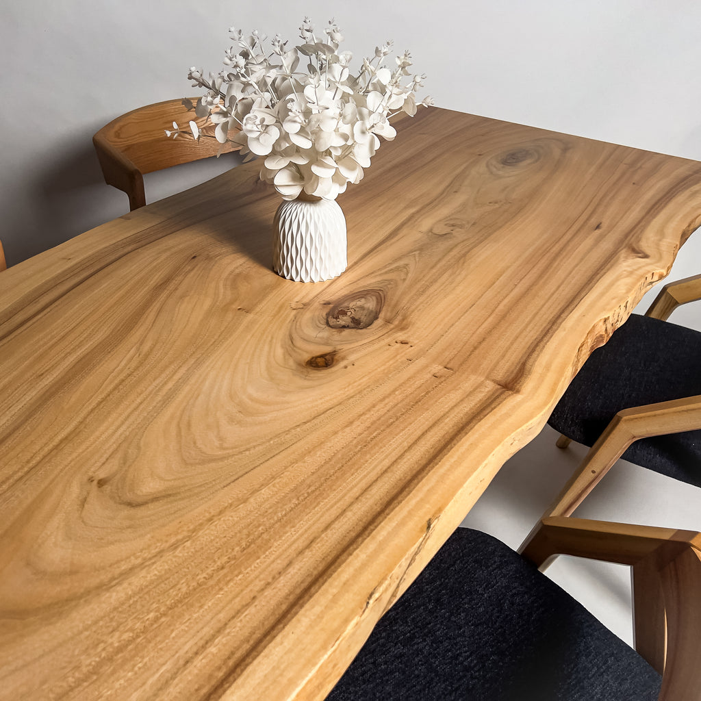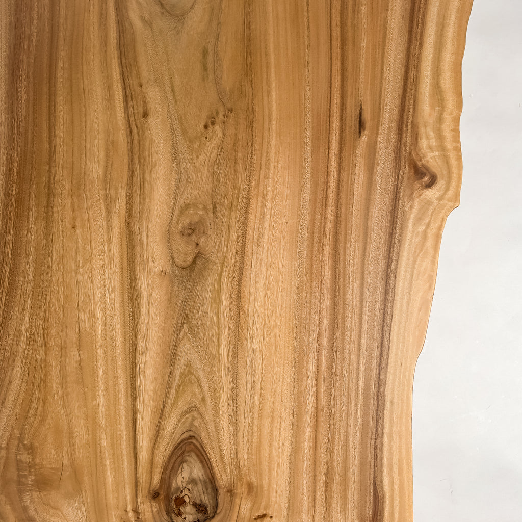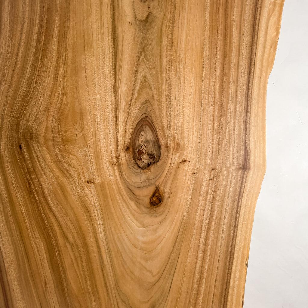複数の板をつなぎ合わせたものとは異なり、途切れることなく続く杢目は自然の美しさをそのまま映し出します。