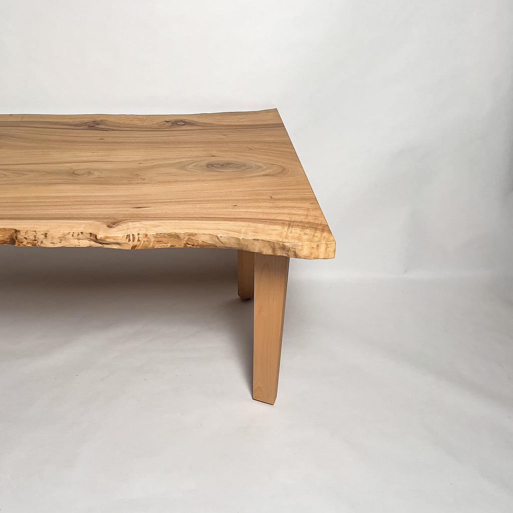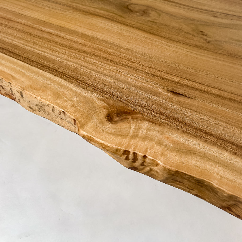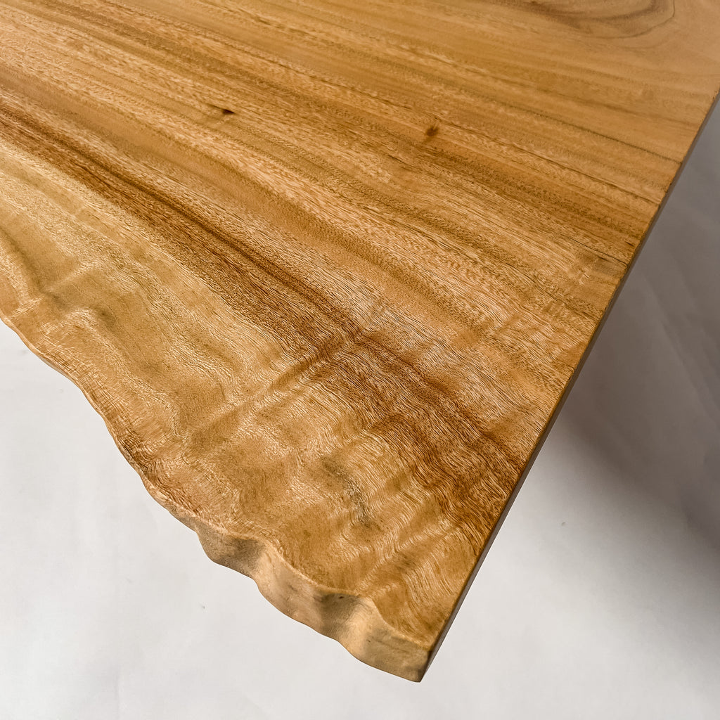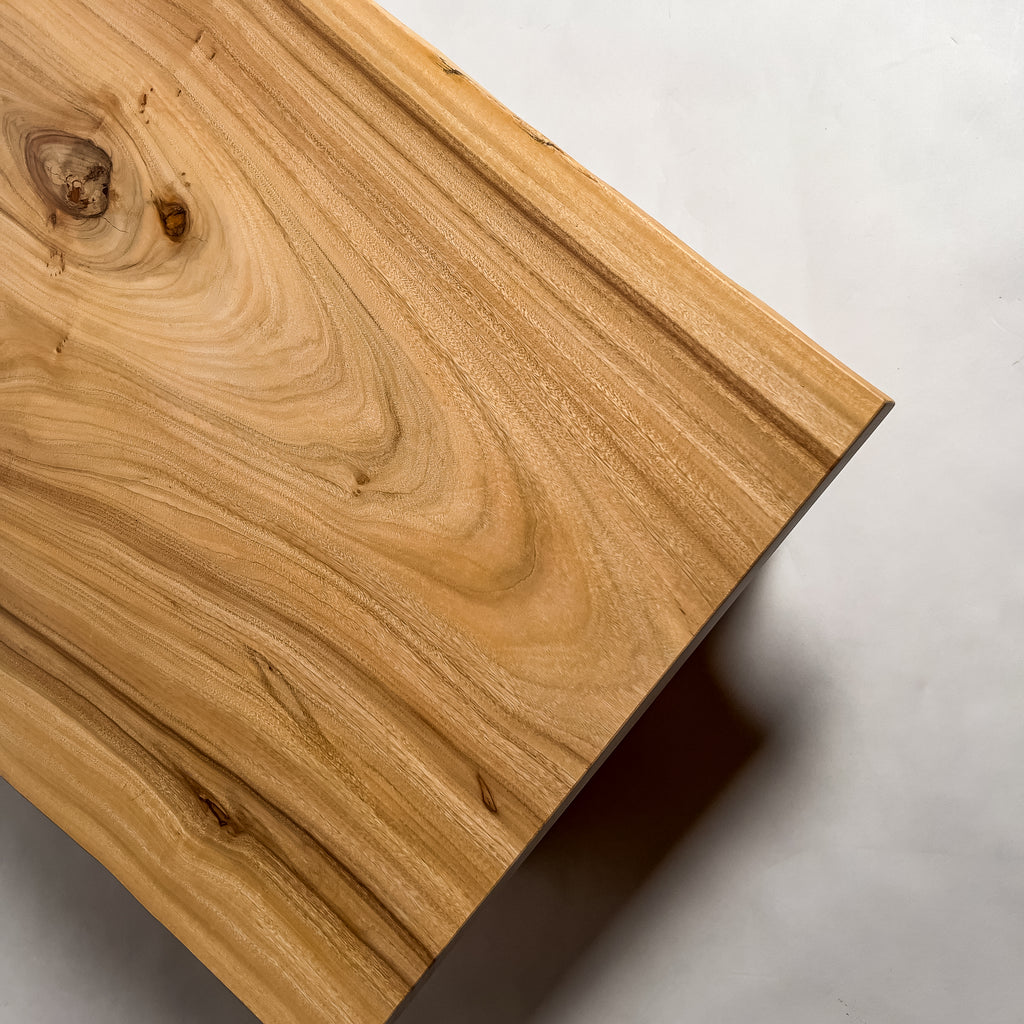 自然が生み出した不均一な表情を 読み解き、素材の持つ品格や奥行きが際立つよう、細部まで配慮した加工で完成度を高める。 一枚板単体の美しさだけでなく、置かれる空間や光の入り方までを思い描き、その場に自然と溶け込む佇まいへと仕上げる。