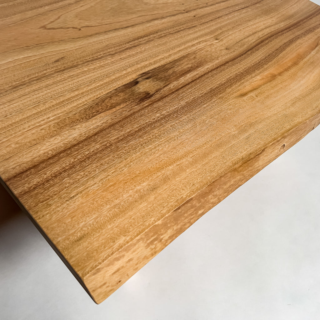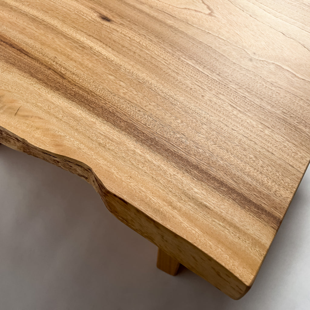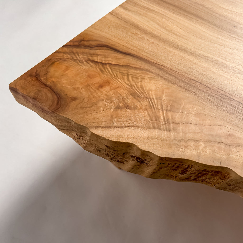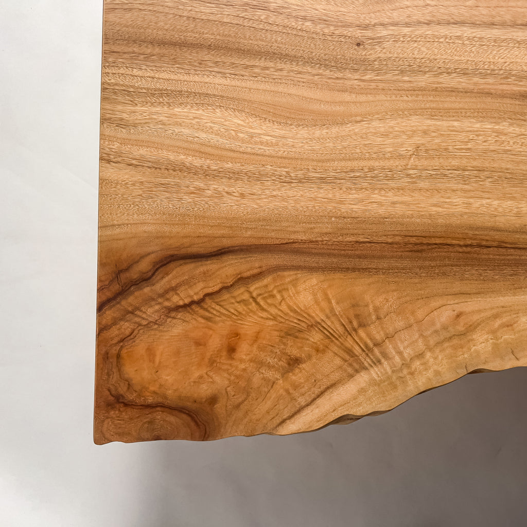 自然が生み出した不均一な表情を 読み解き、素材の持つ品格や奥行きが際立つよう、細部まで配慮した加工で完成度を高める。 一枚板単体の美しさだけでなく、置かれる空間や光の入り方までを思い描き、その場に自然と溶け込む佇まいへと仕上げる。