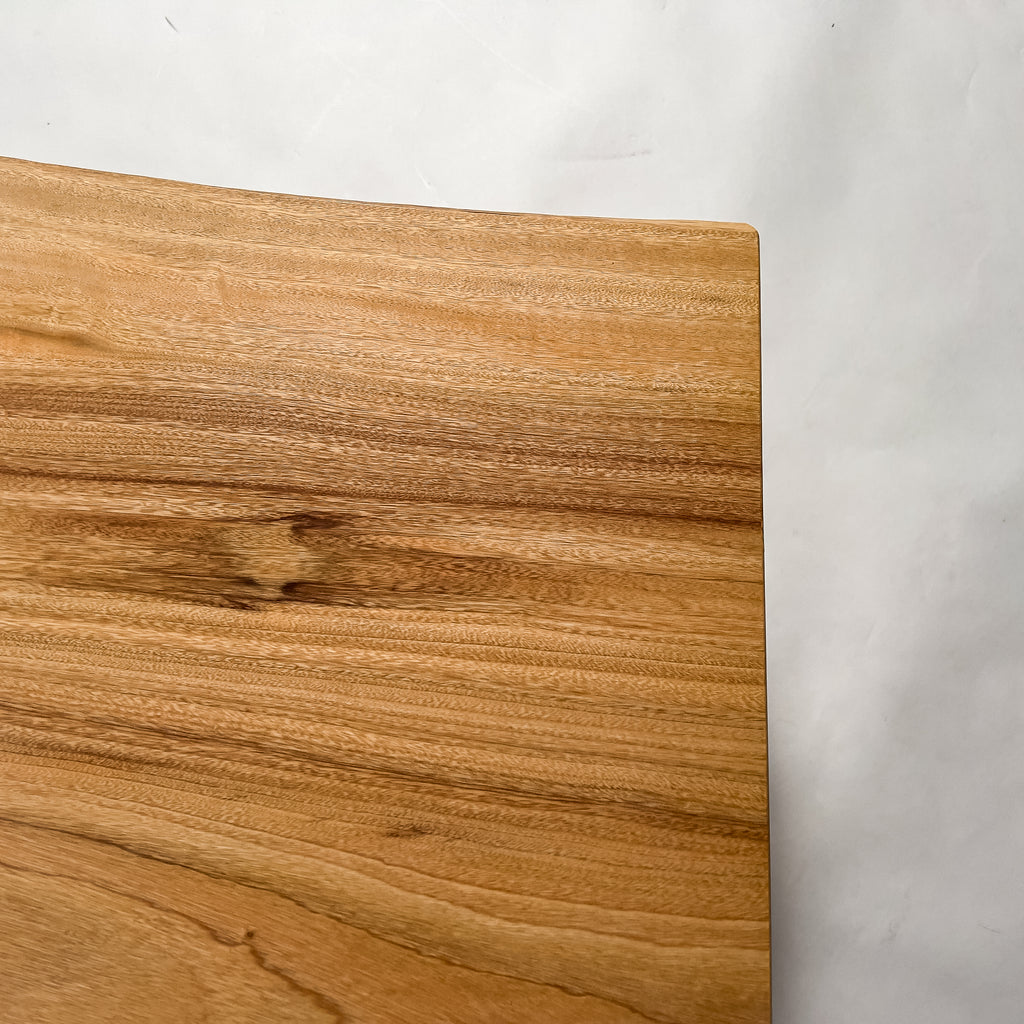 仕上がりの質感や印象にまで細やかに気を配り、使われる空間や暮らしを見据えた、やわらかな佇まいへと丁寧に仕上げる。 木が持つ節や皮、杢目の表情に寄り添い、その一つひとつを活かすことで、唯一無二の素材美を際立たせた一枚板づくりを行う。