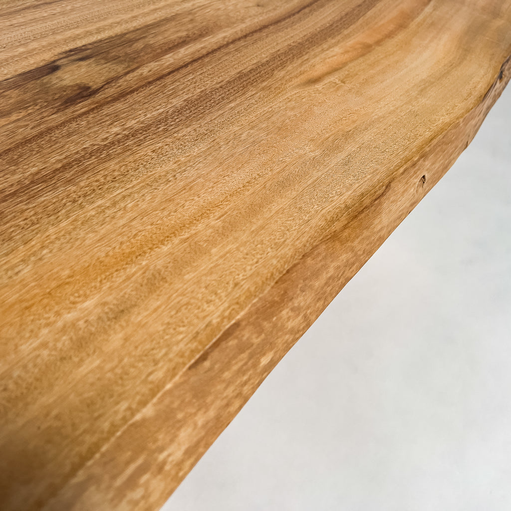 複数の板をつなぎ合わせたものとは異なり、途切れることなく続く杢目は自然の美しさをそのまま映し出します。