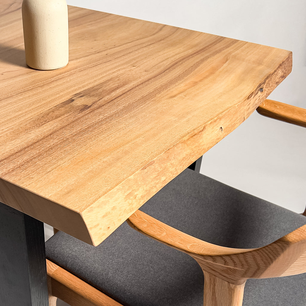 一枚板がもつ力強さとしなやかさを見極め、荒々しさと繊細さを併せ持つ加工を施すことで、その躍動感を余すことなく引き出す。 肌触り、見た目、素材感。そのすべてにおいて高い調和を図り、熟練の技術と豊富な経験をもとに、一枚板の魅力を緻密に引き出す。