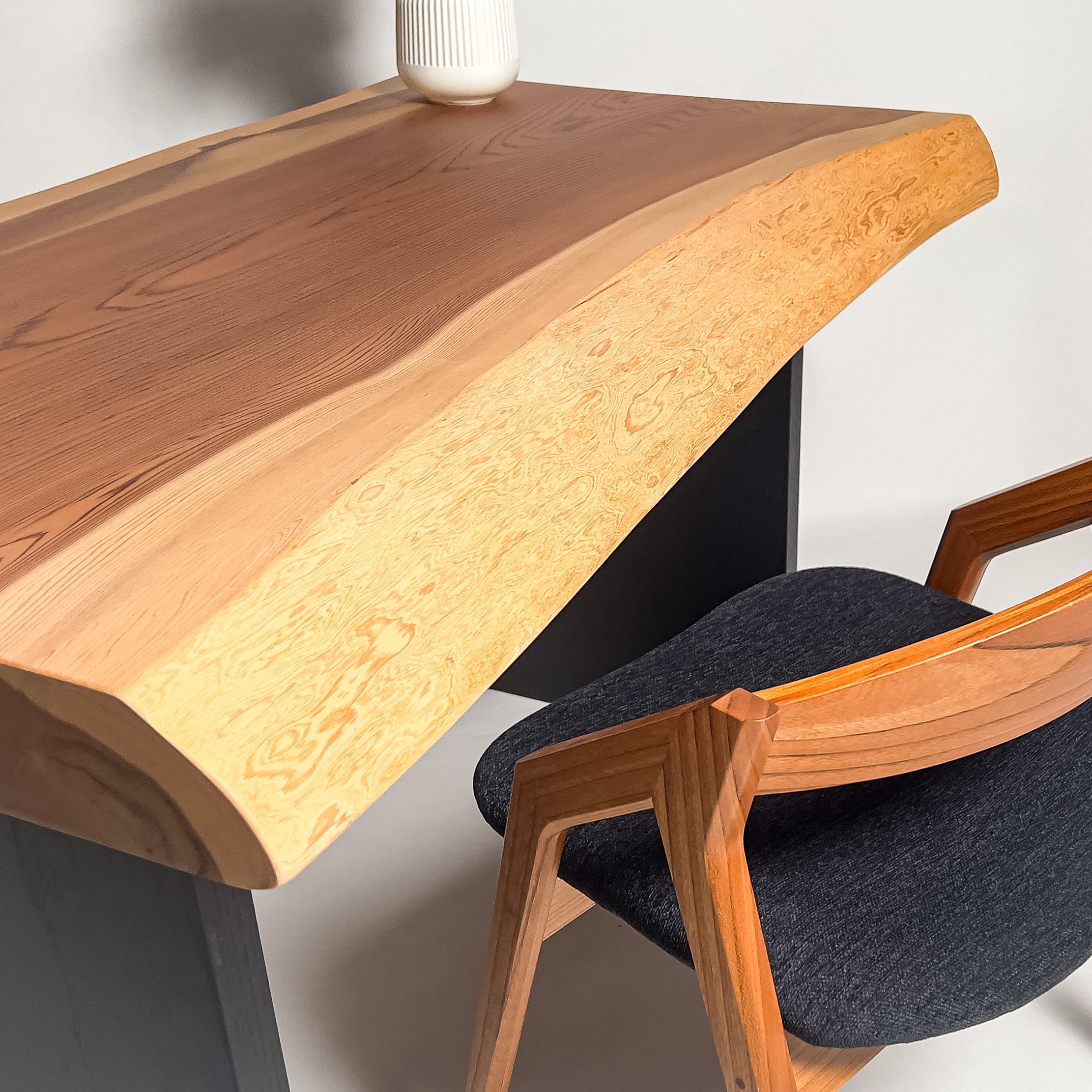 | 時代を超えて受け継がれる機能性と、現代の暮らしに寄り添うデザイン性を兼ね備えた一枚板家具の製作を手がける。 | 現代の空間に映えるモダンなデザイン性を取り入れながら、一枚板の持つ素材感と存在感を活かした加工・製作を行う。 | |