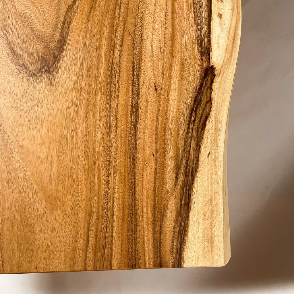 モンキーポッド特有の濃淡が織りなす美しい縞模様。時を重ねて刻まれた木目のうねりが、自然の豊かさを物語ります。手を加えすぎず、木の輪郭と温もりを活かした上品な仕上げが、空間にやさしく馴染みます。