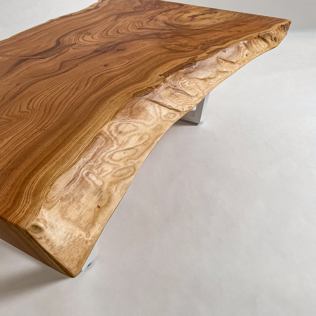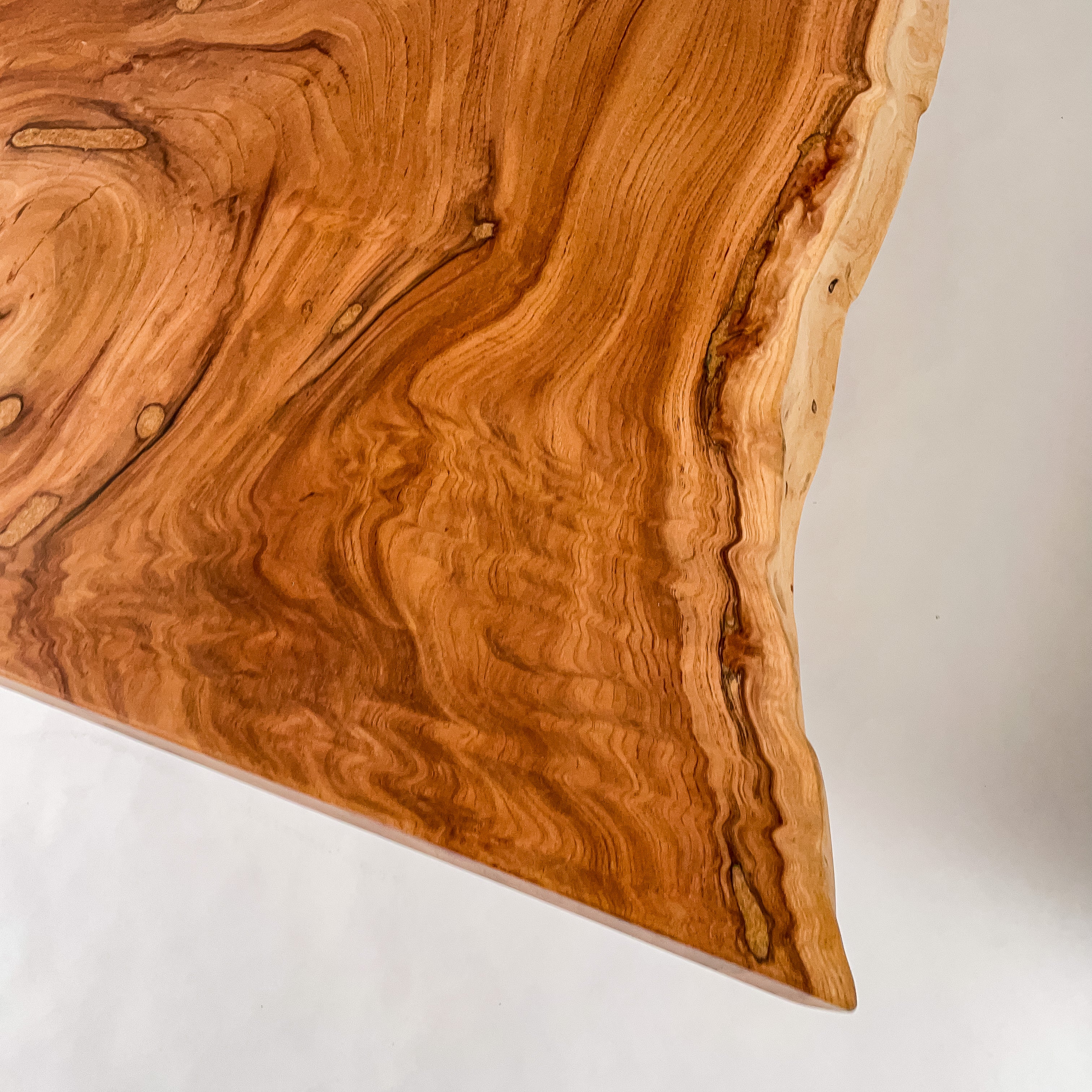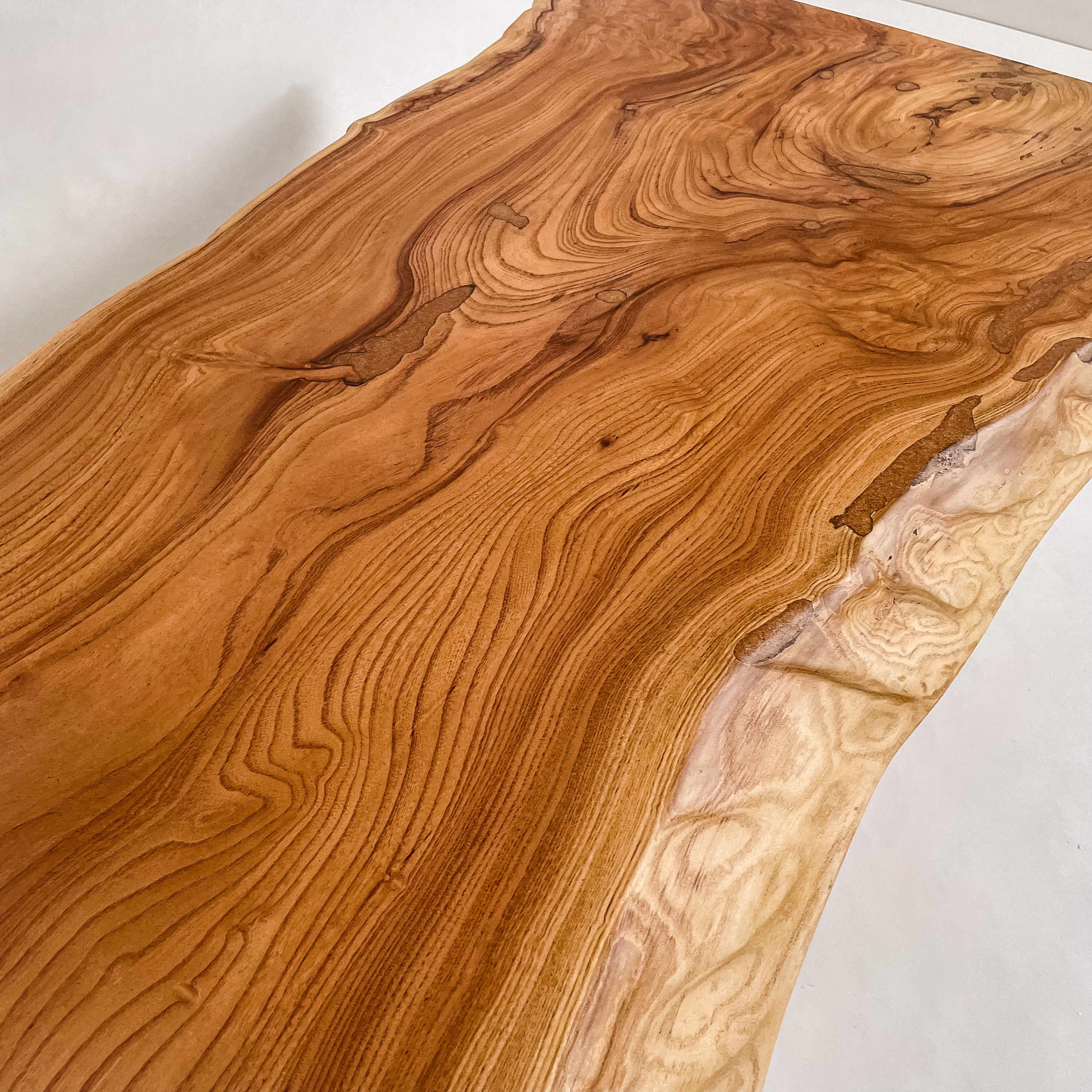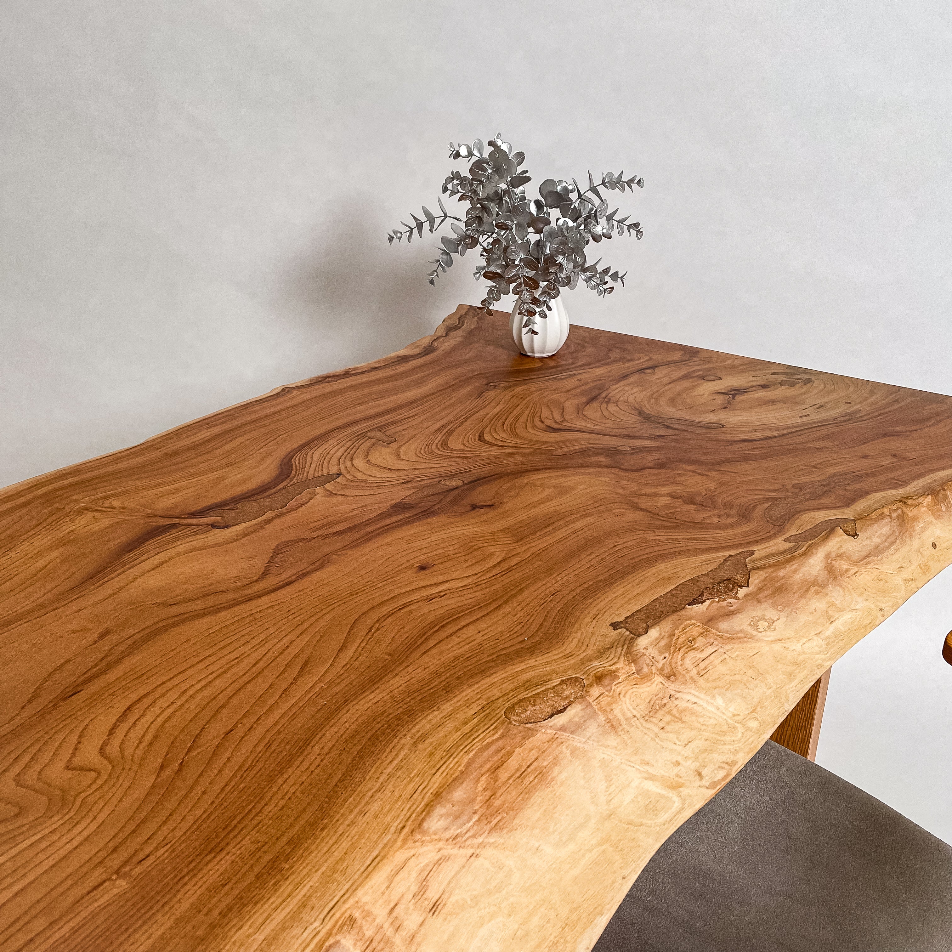 複数の板をつなぎ合わせたものとは異なり、途切れることなく続く杢目は自然の美しさをそのまま映し出します。