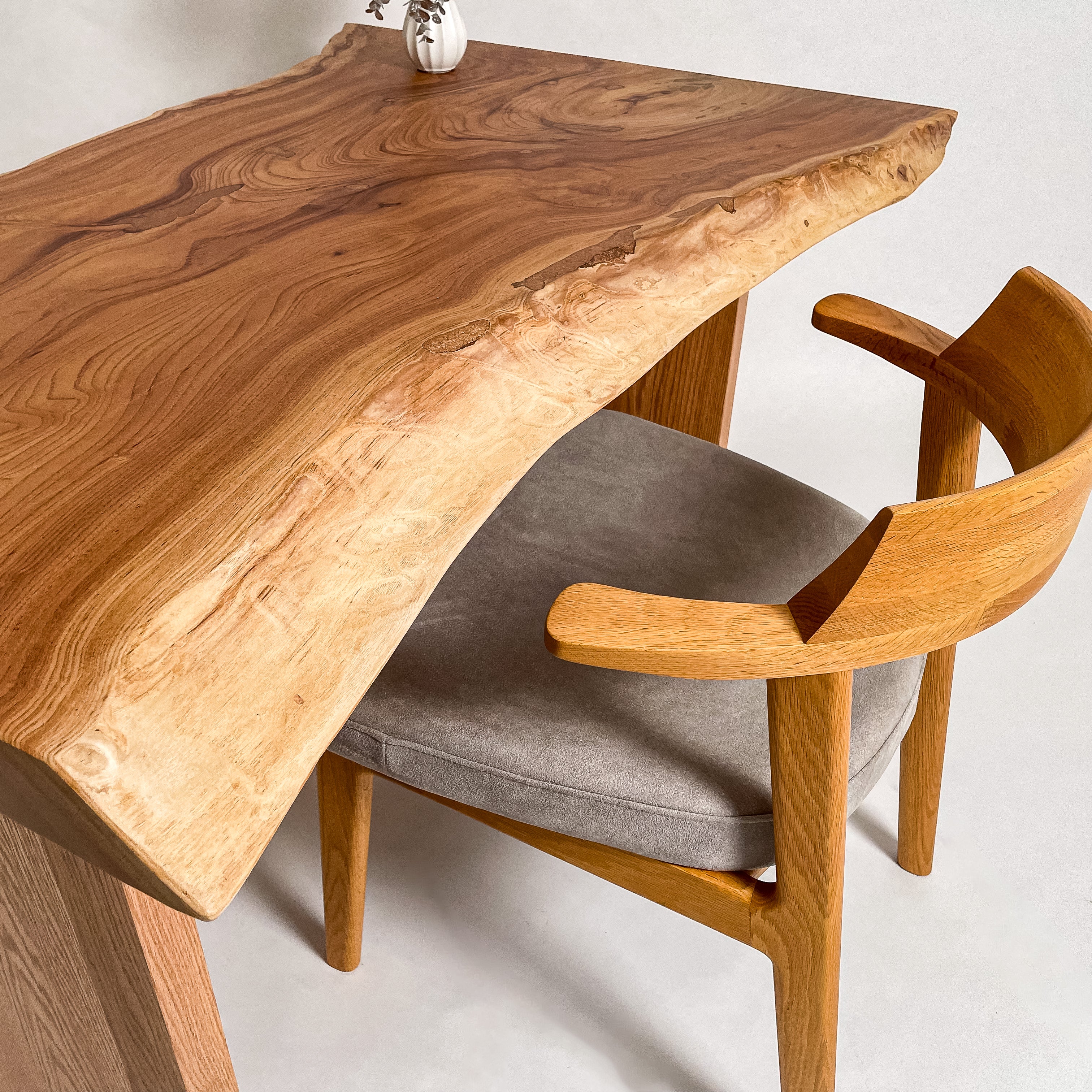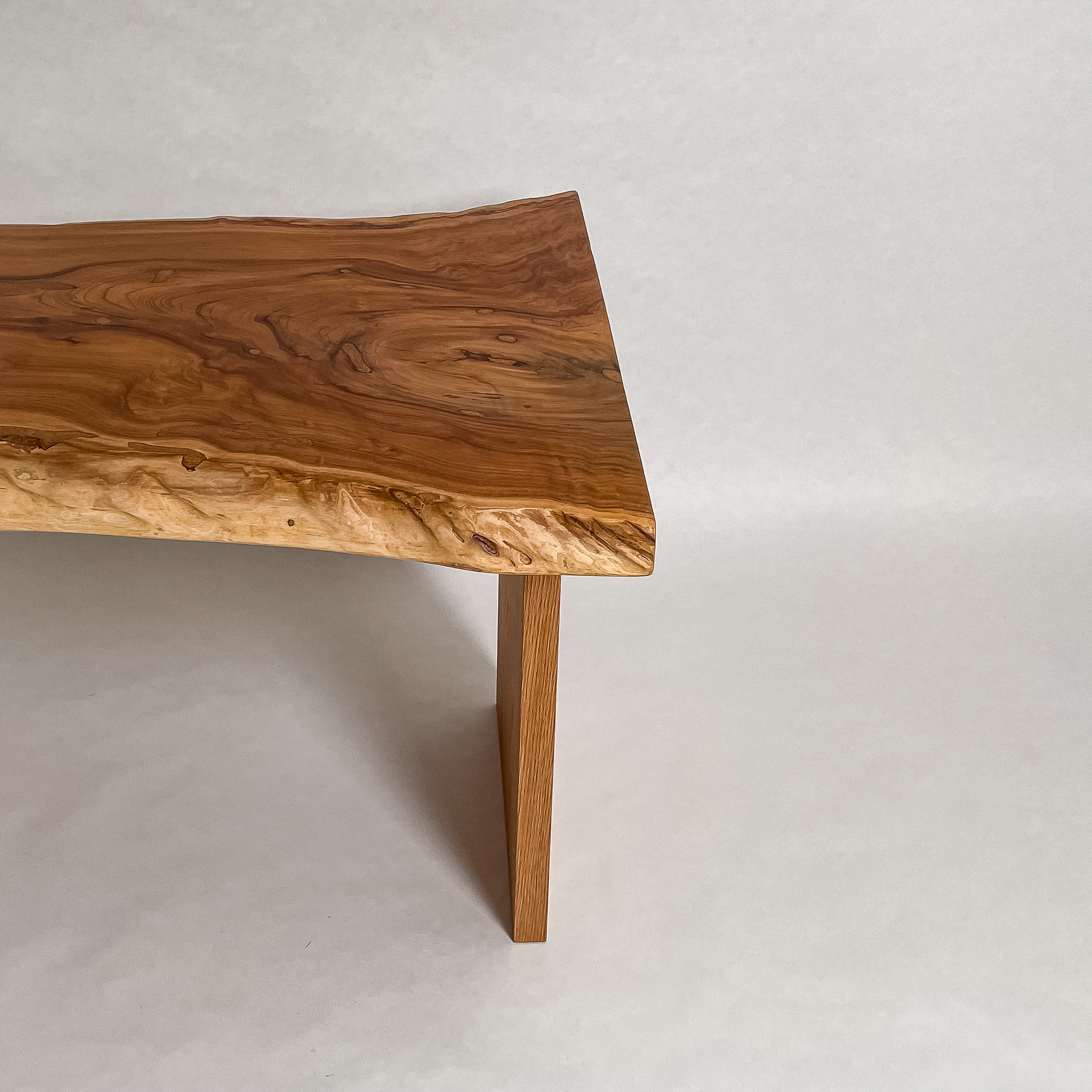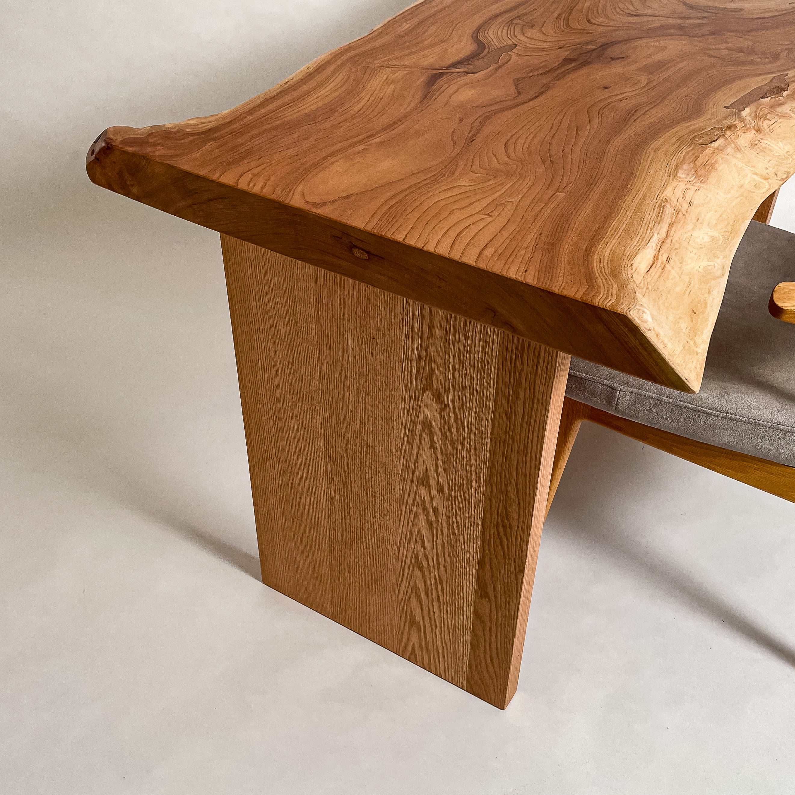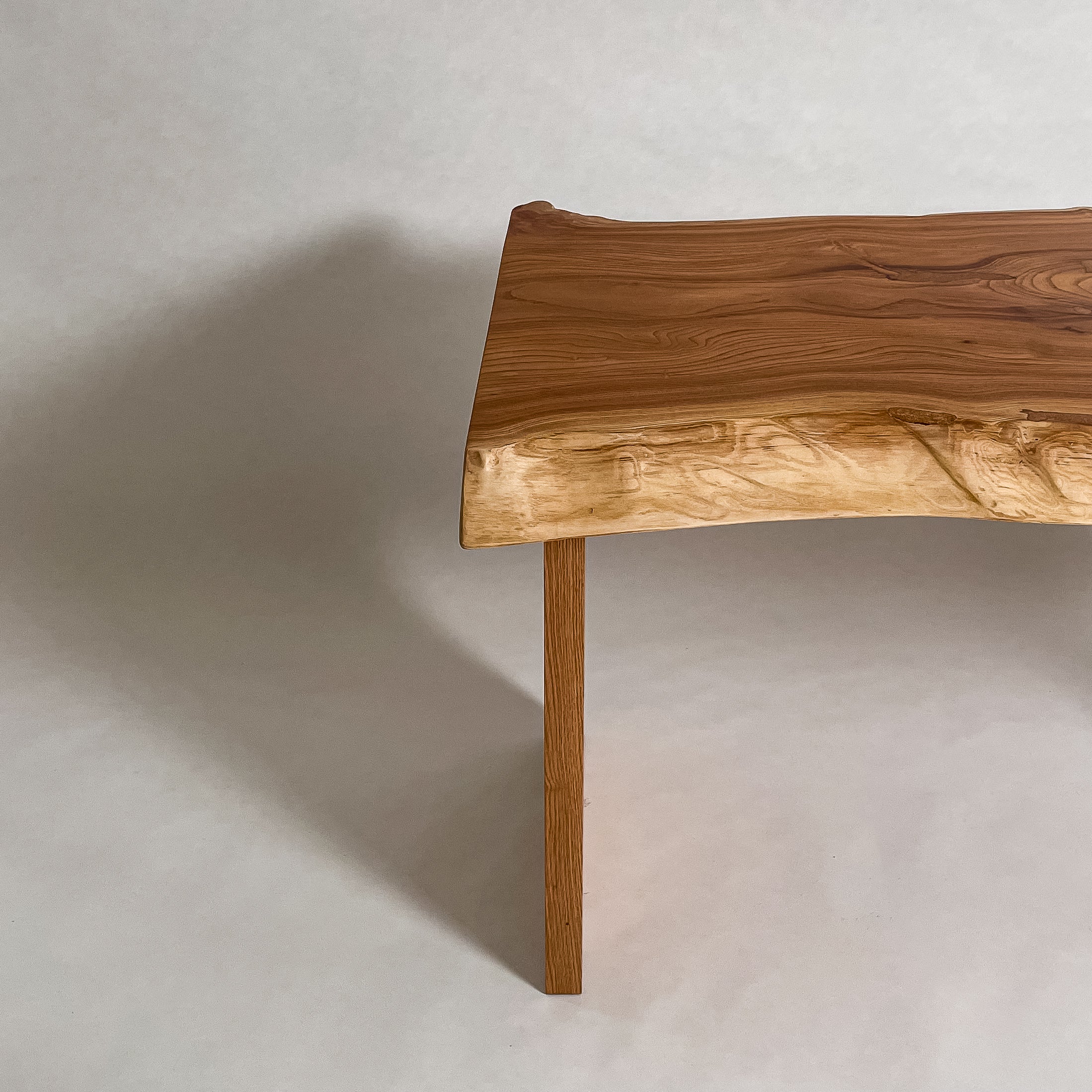 複数の板をつなぎ合わせたものとは異なり、途切れることなく続く杢目は自然の美しさをそのまま映し出します。