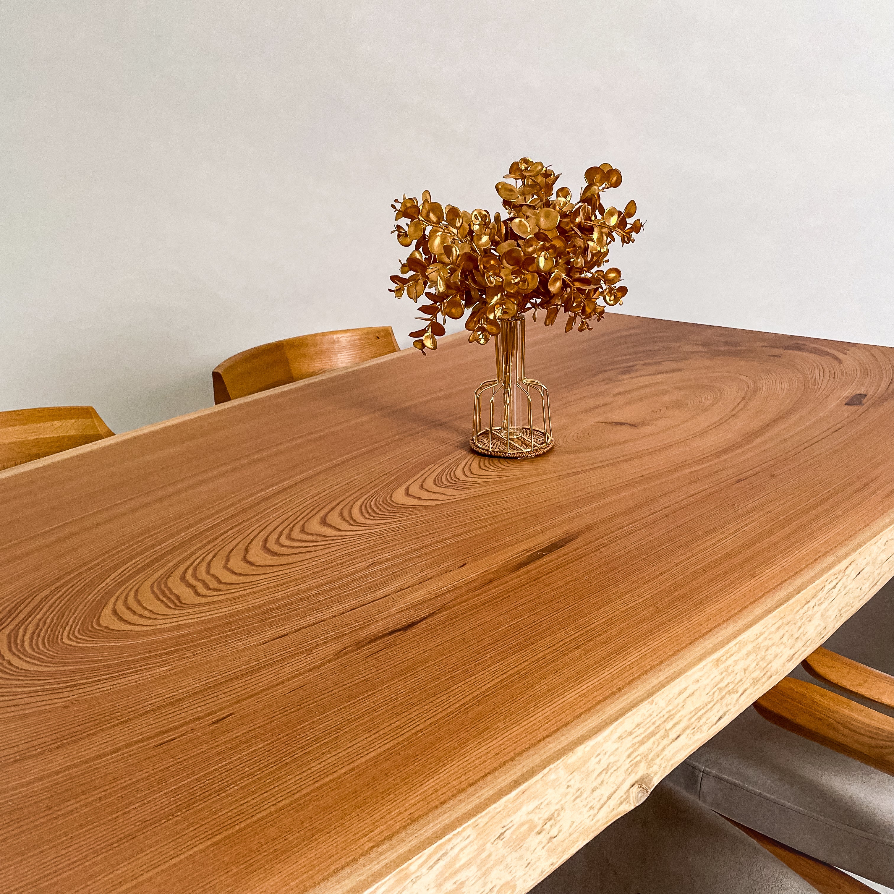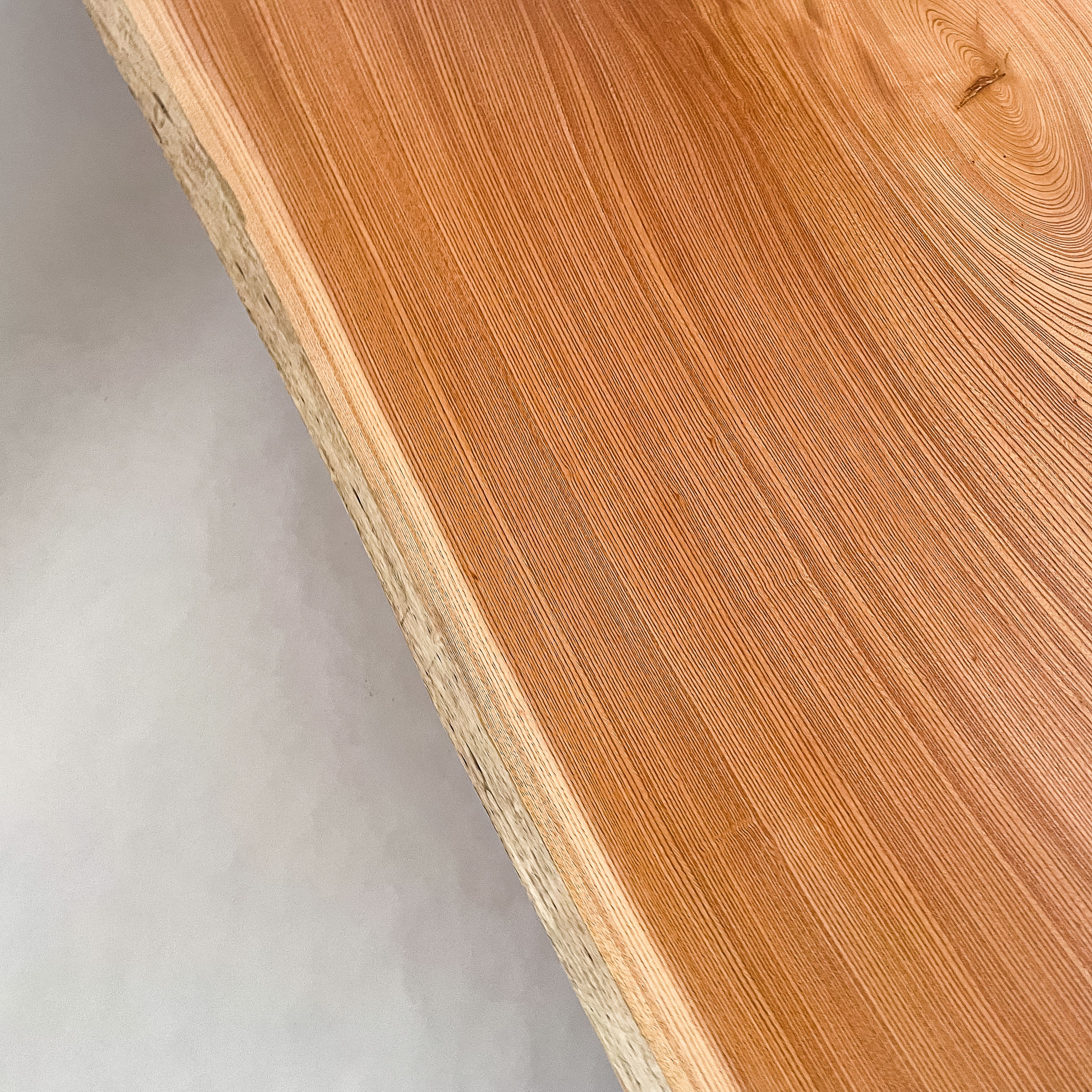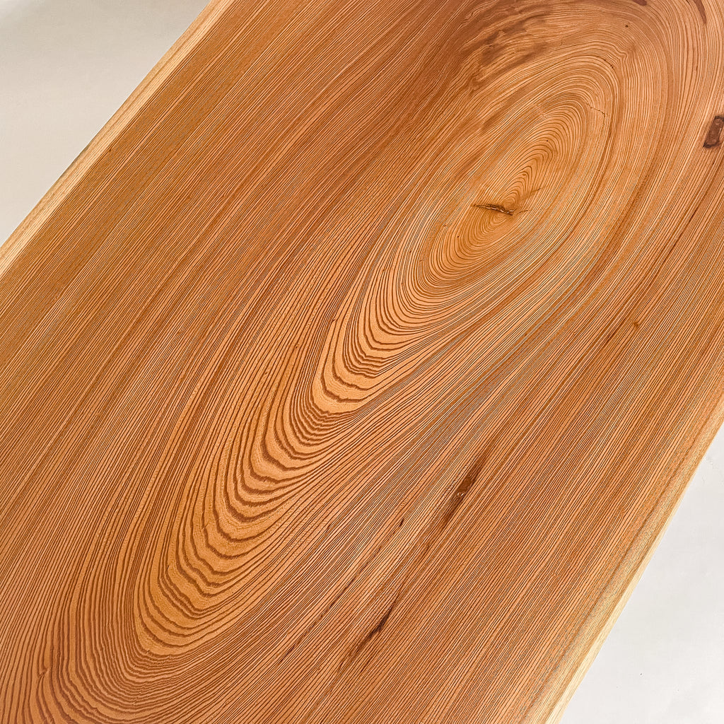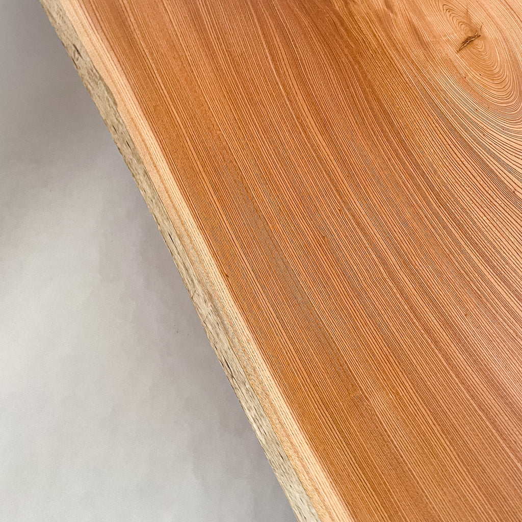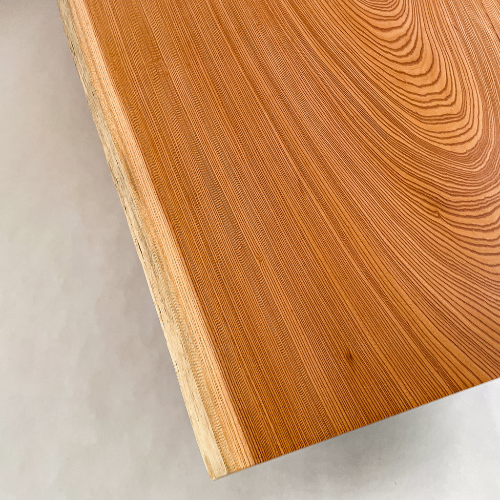 複数の板をつなぎ合わせたものとは異なり、途切れることなく続く杢目は自然の美しさをそのまま映し出します。