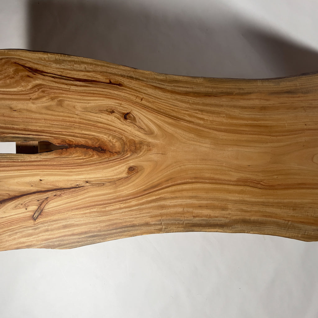 複数の板をつなぎ合わせたものとは異なり、途切れることなく続く杢目は自然の美しさをそのまま映し出します。