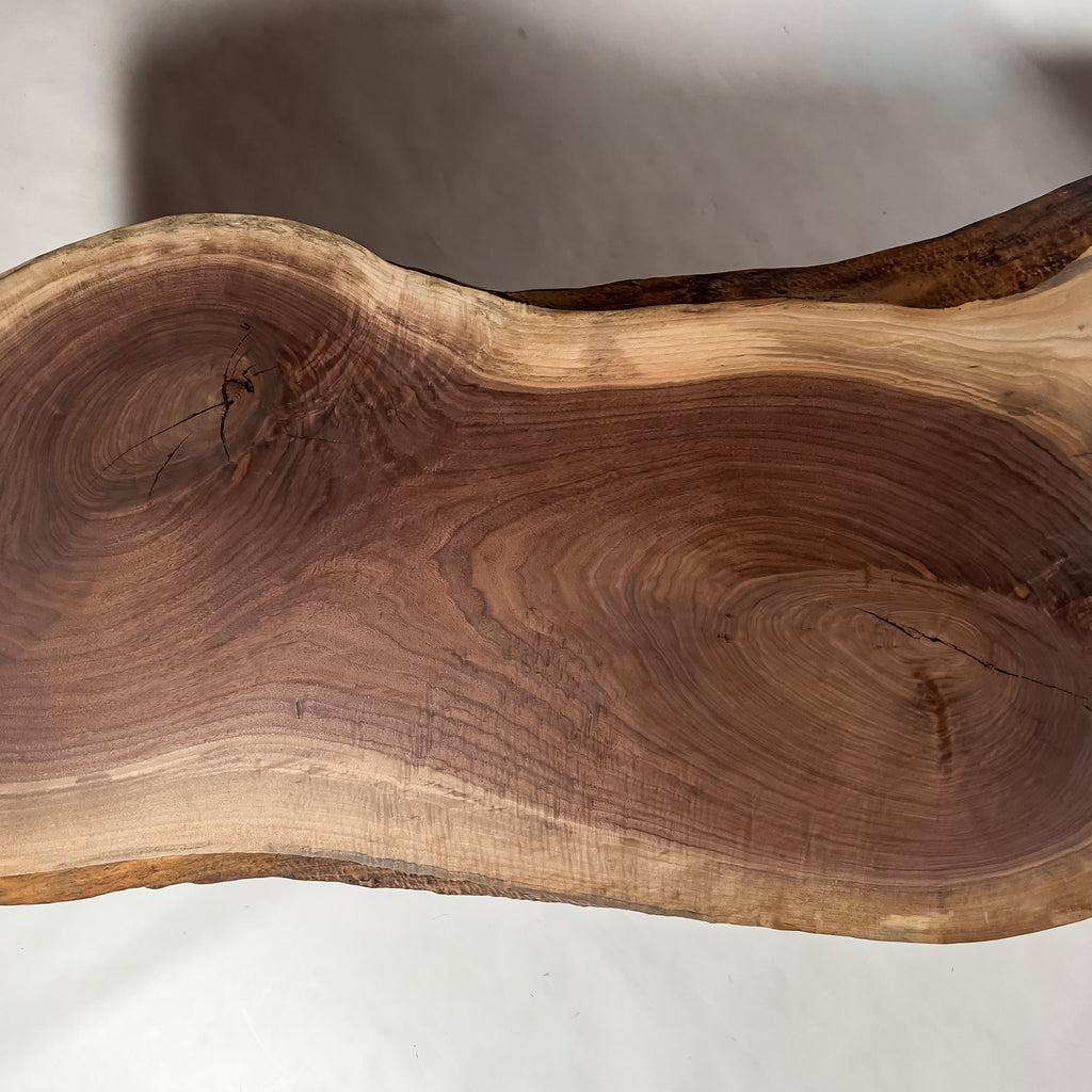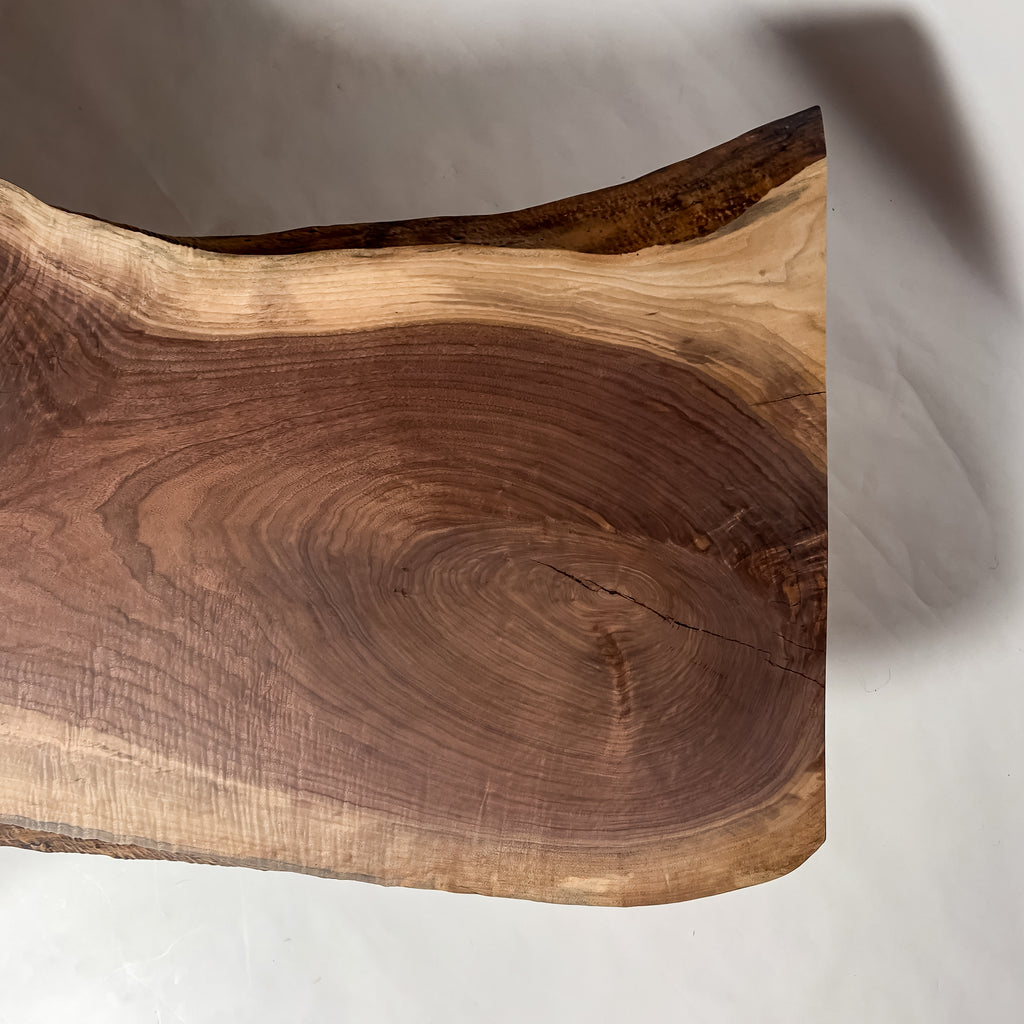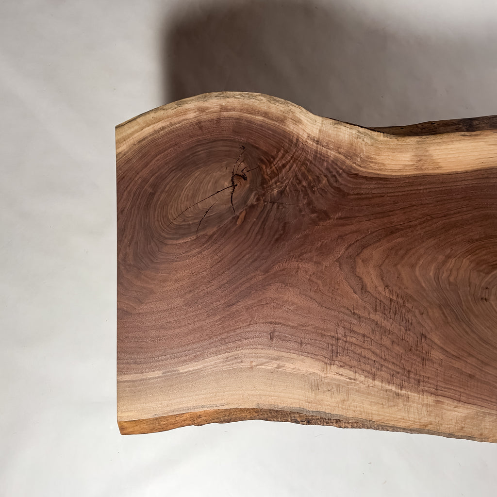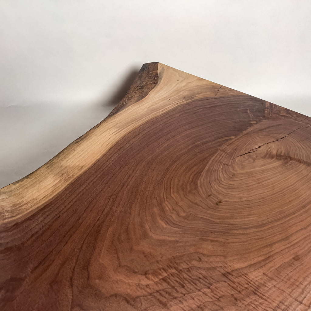 幾重にも重なる年輪が穏やかな波を描くウォールナット。長い歳月を生き抜いた木が、豊かな表情と深みのある色を纏いました。職人が木の鼓動を残すように磨き上げ、自然の力強さと温もりが調和する一枚に仕上げています。