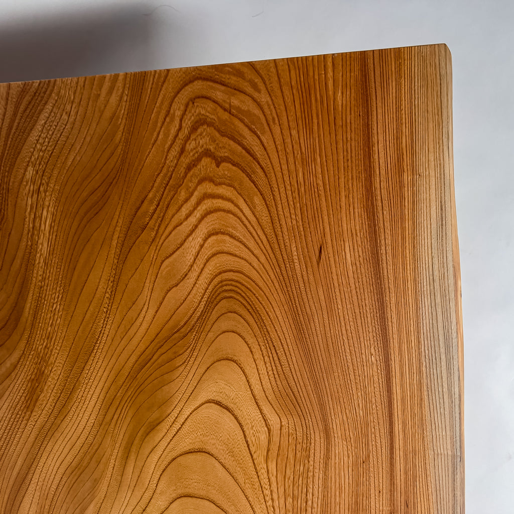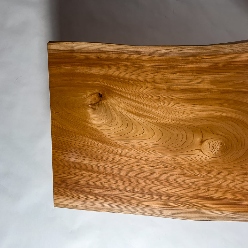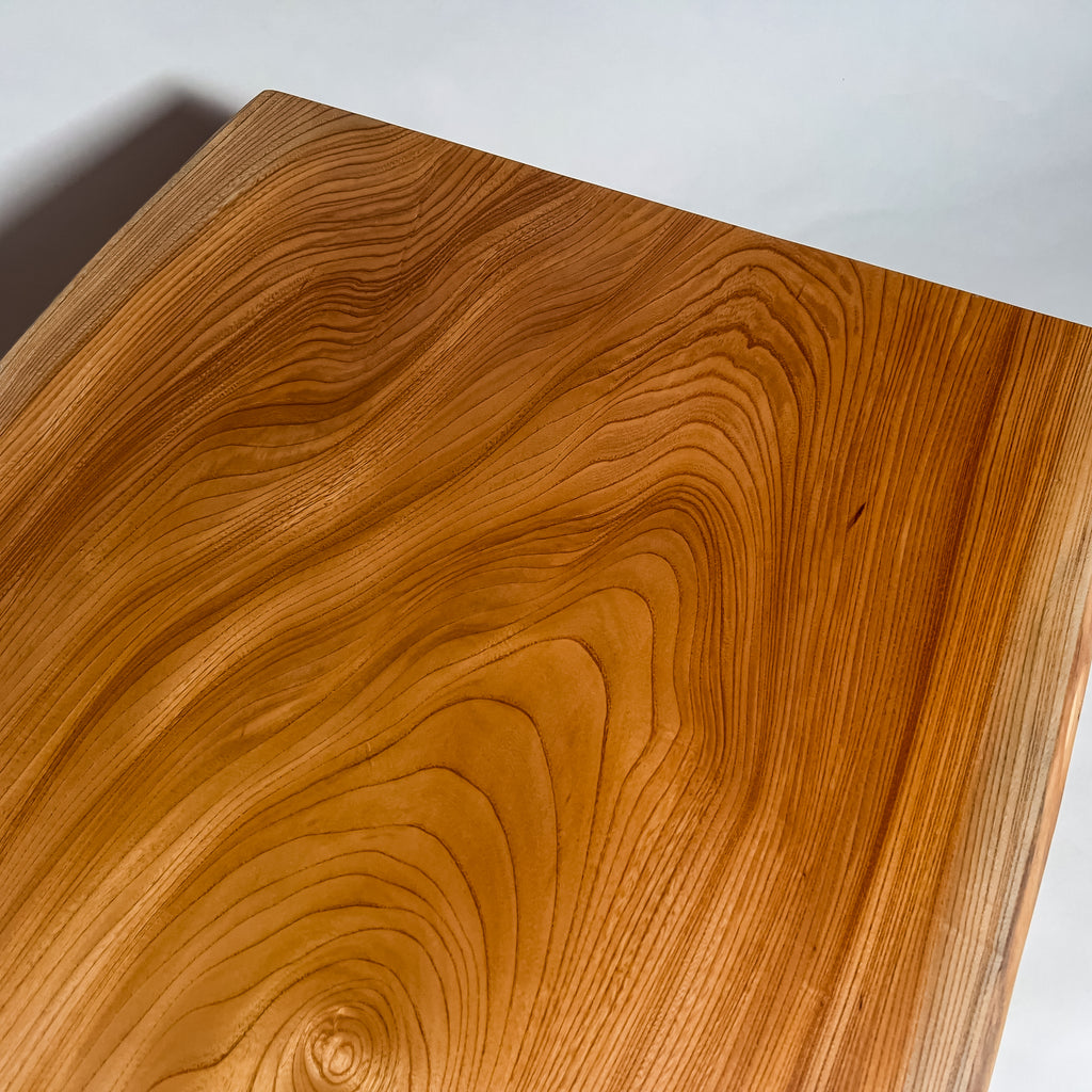 自然が生み出した不均一な表情を 読み解き、素材の持つ品格や奥行きが際立つよう、細部まで配慮した加工で完成度を高める。 一枚板単体の美しさだけでなく、置かれる空間や光の入り方までを思い描き、その場に自然と溶け込む佇まいへと仕上げる。