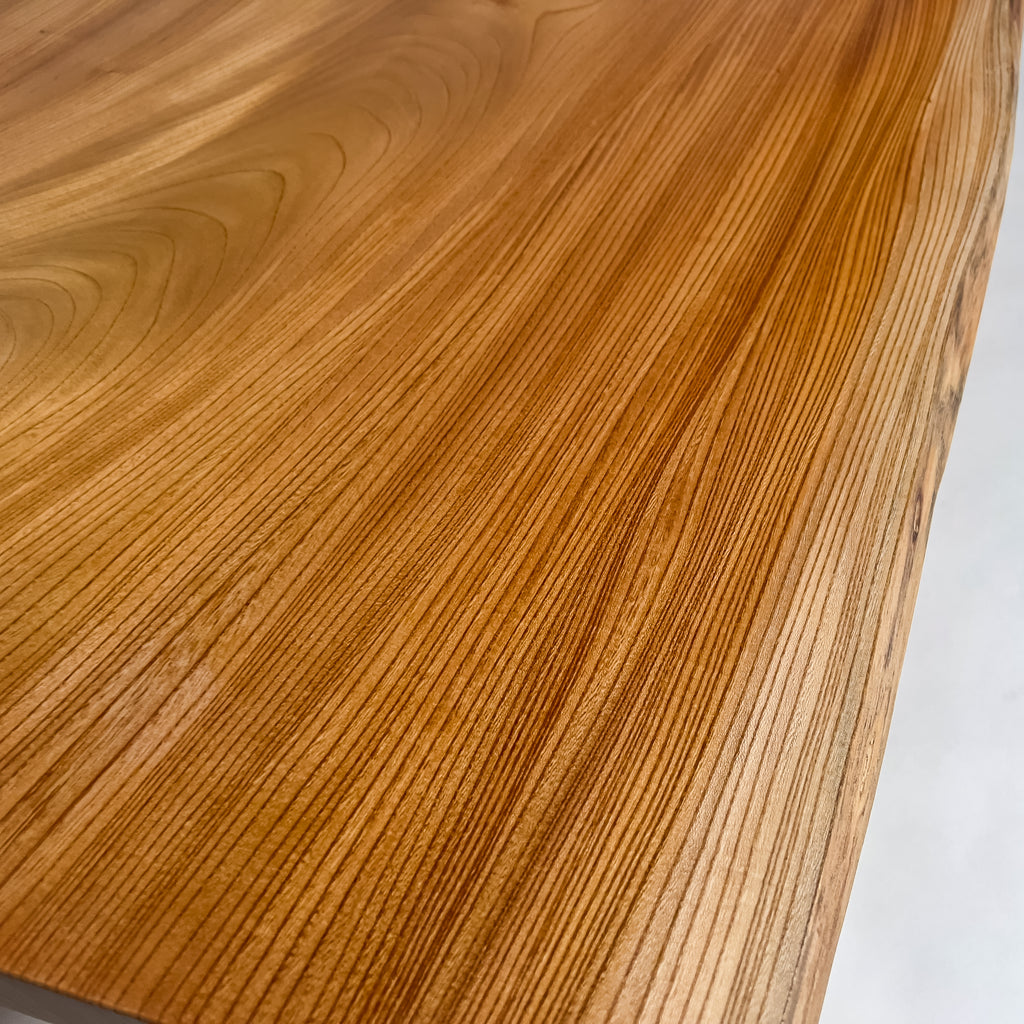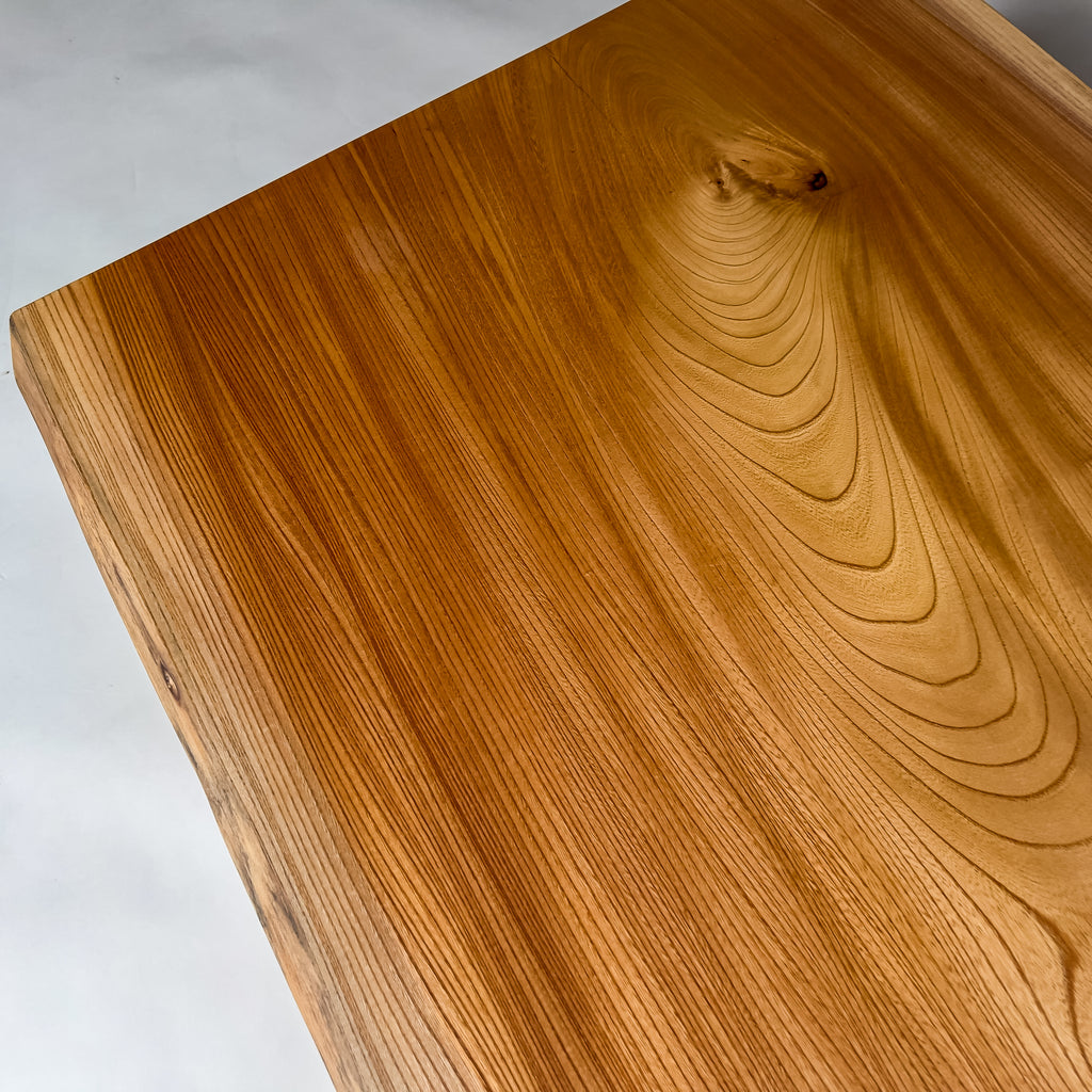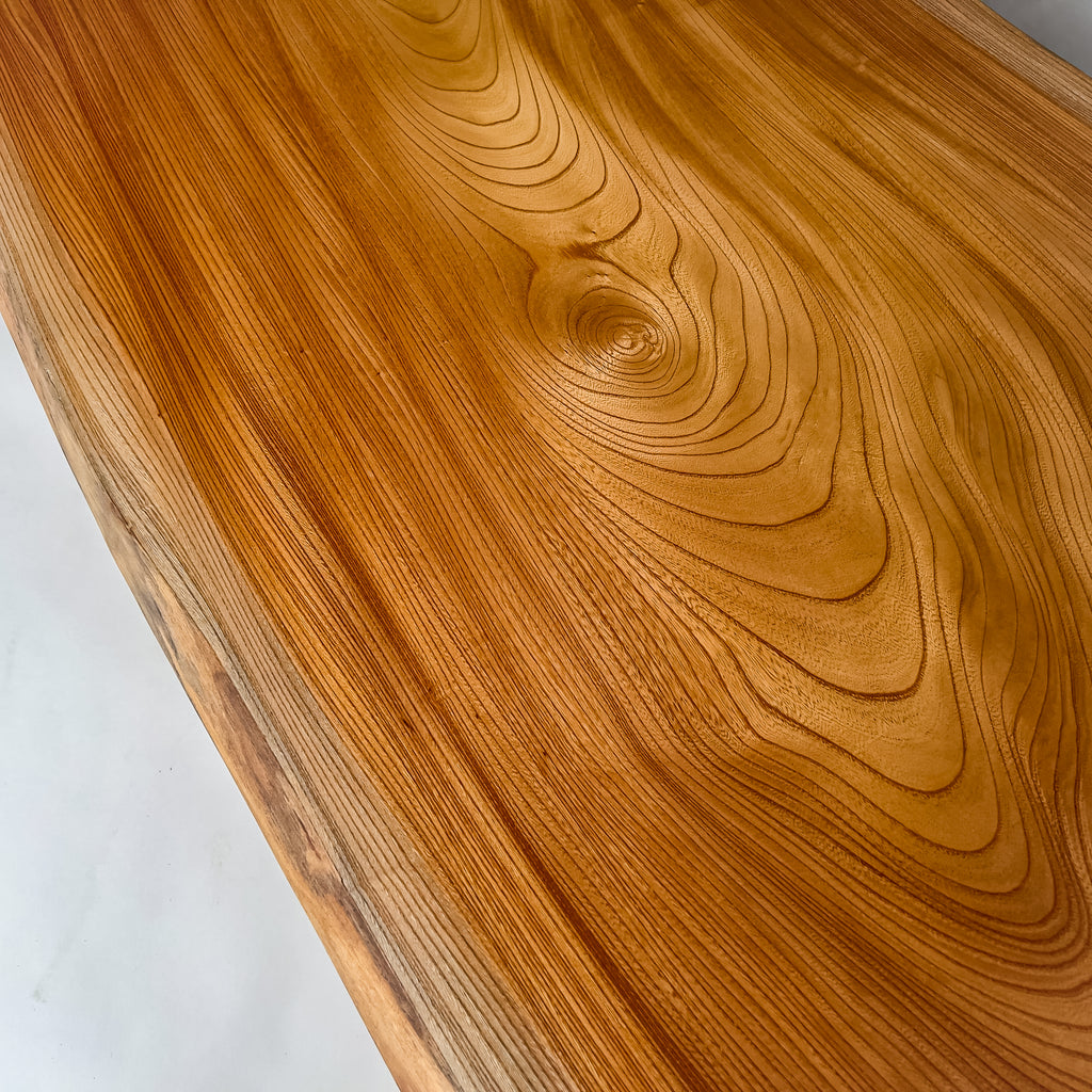複数の板をつなぎ合わせたものとは異なり、途切れることなく続く杢目は自然の美しさをそのまま映し出します。