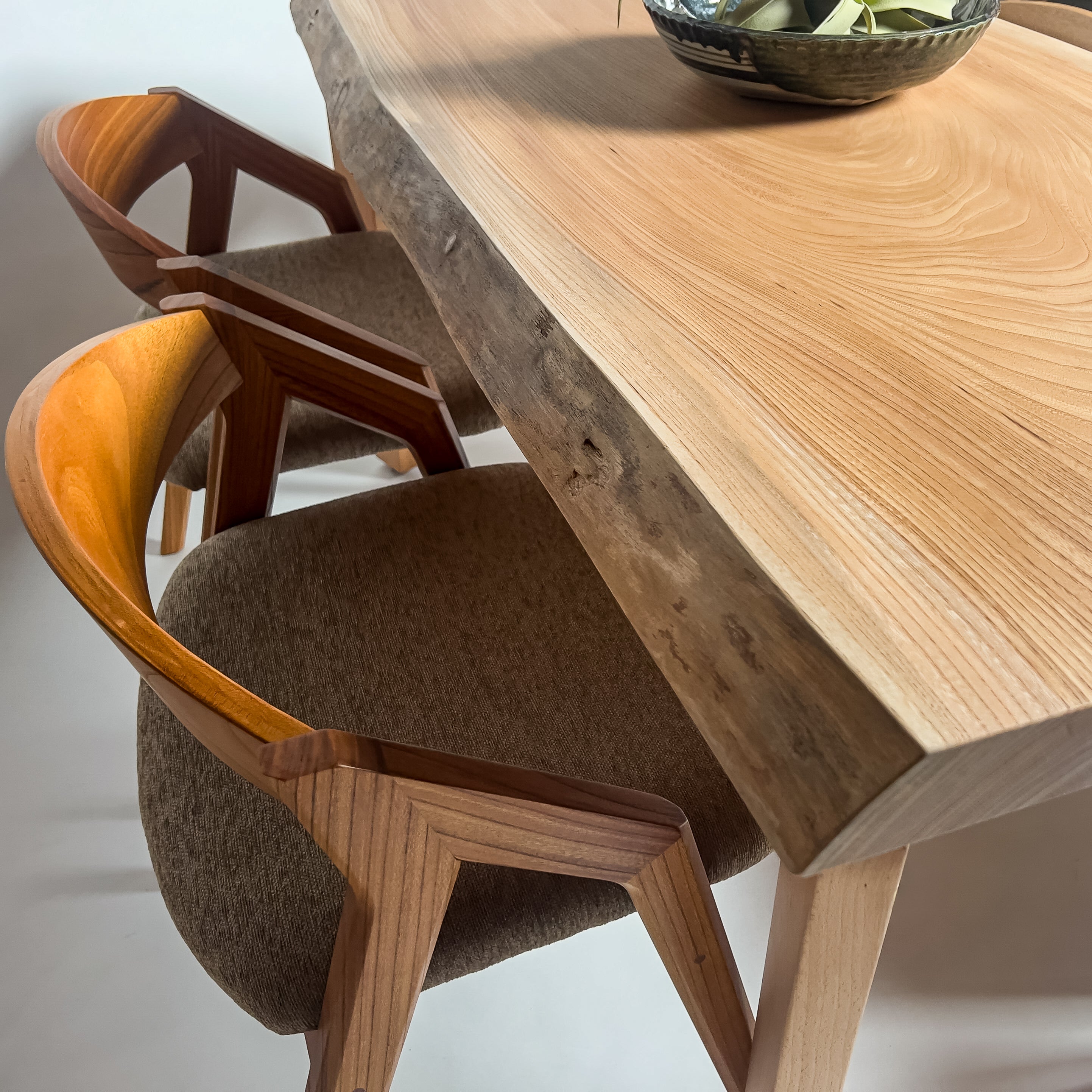 一枚板がもつ力強さとしなやかさを見極め、荒々しさと繊細さを併せ持つ加工を施すことで、その躍動感を余すことなく引き出す。 肌触り、見た目、素材感。そのすべてにおいて高い調和を図り、熟練の技術と豊富な経験をもとに、一枚板の魅力を緻密に引き出す。