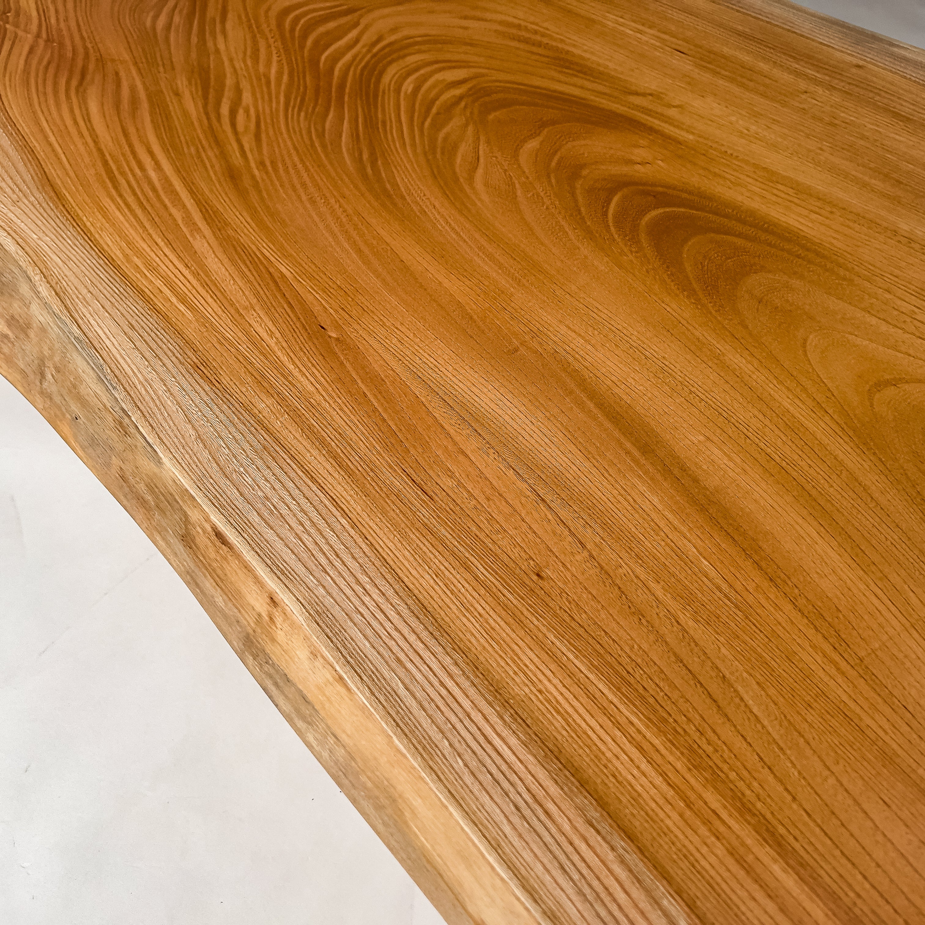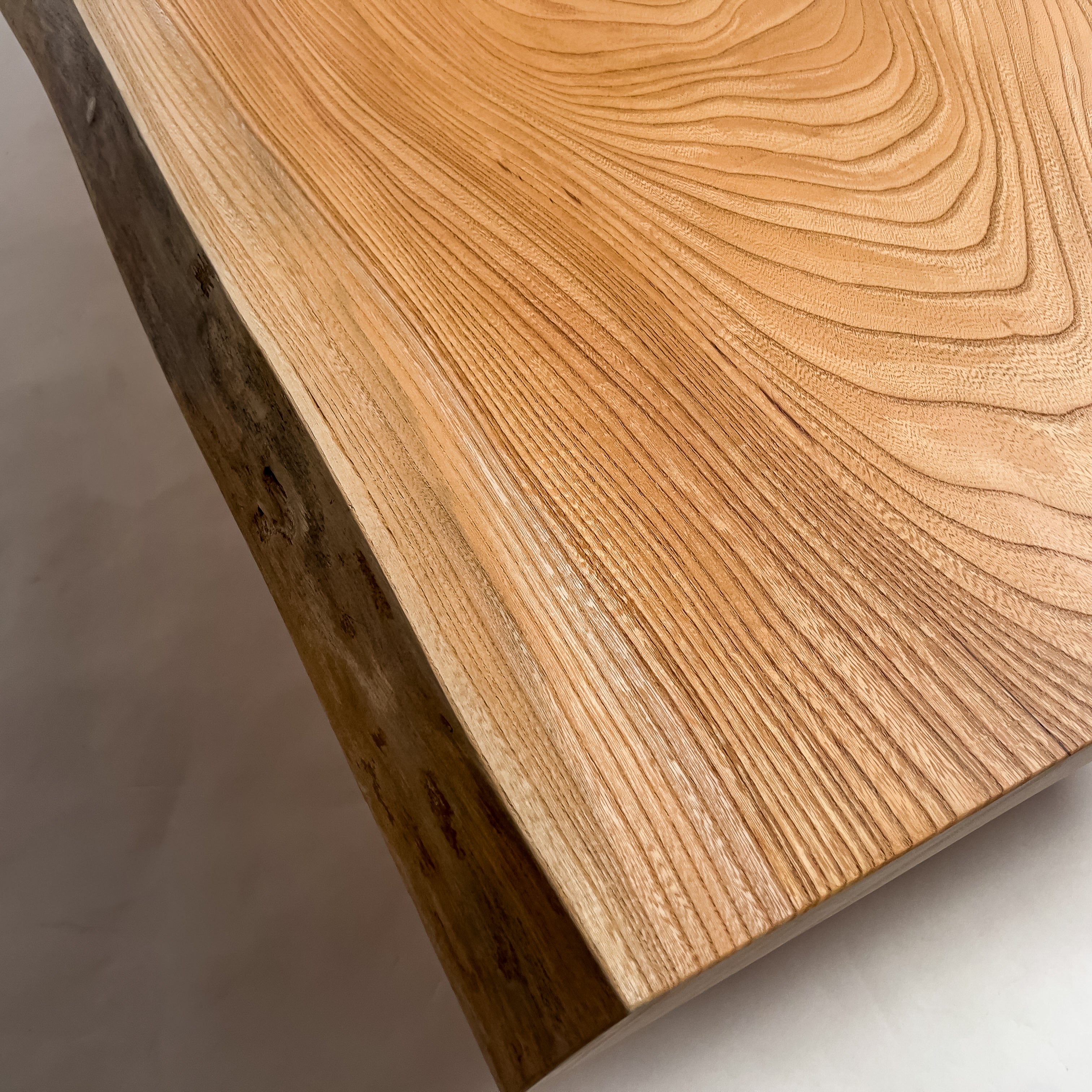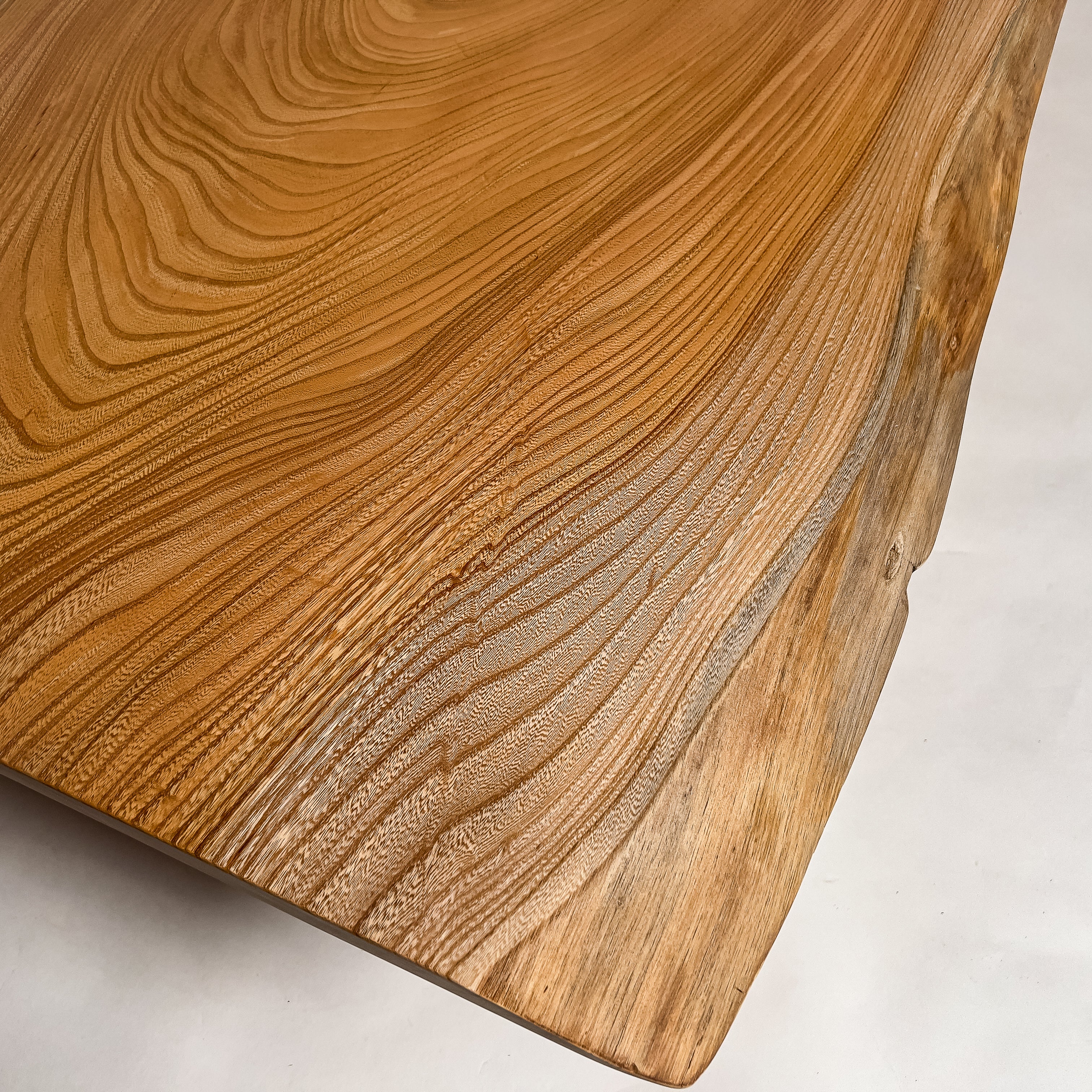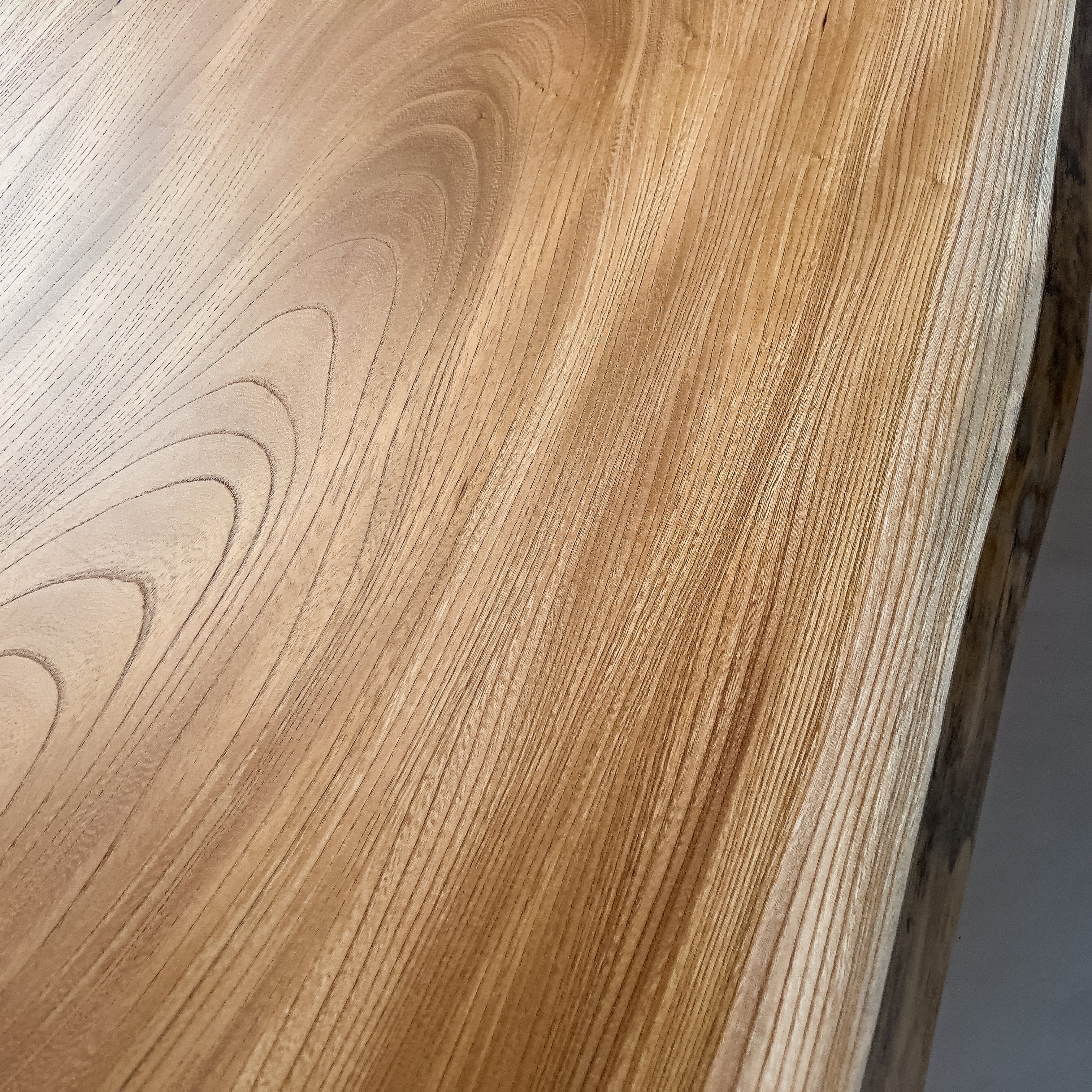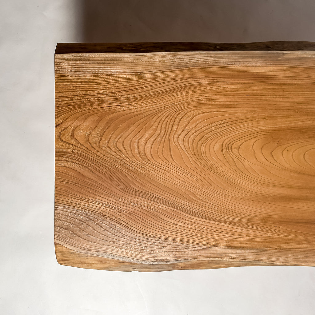 複数の板をつなぎ合わせたものとは異なり、途切れることなく続く杢目は自然の美しさをそのまま映し出します。