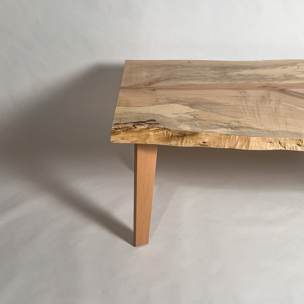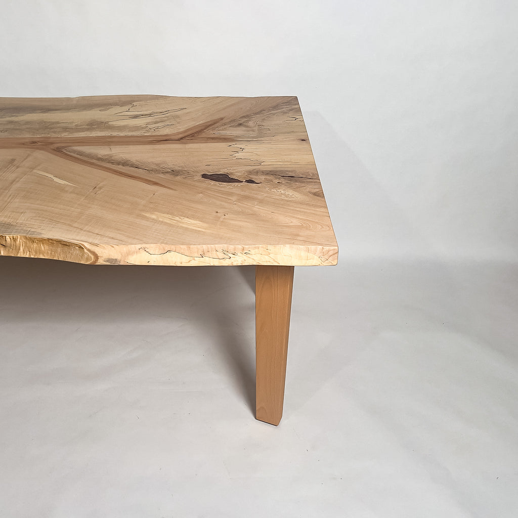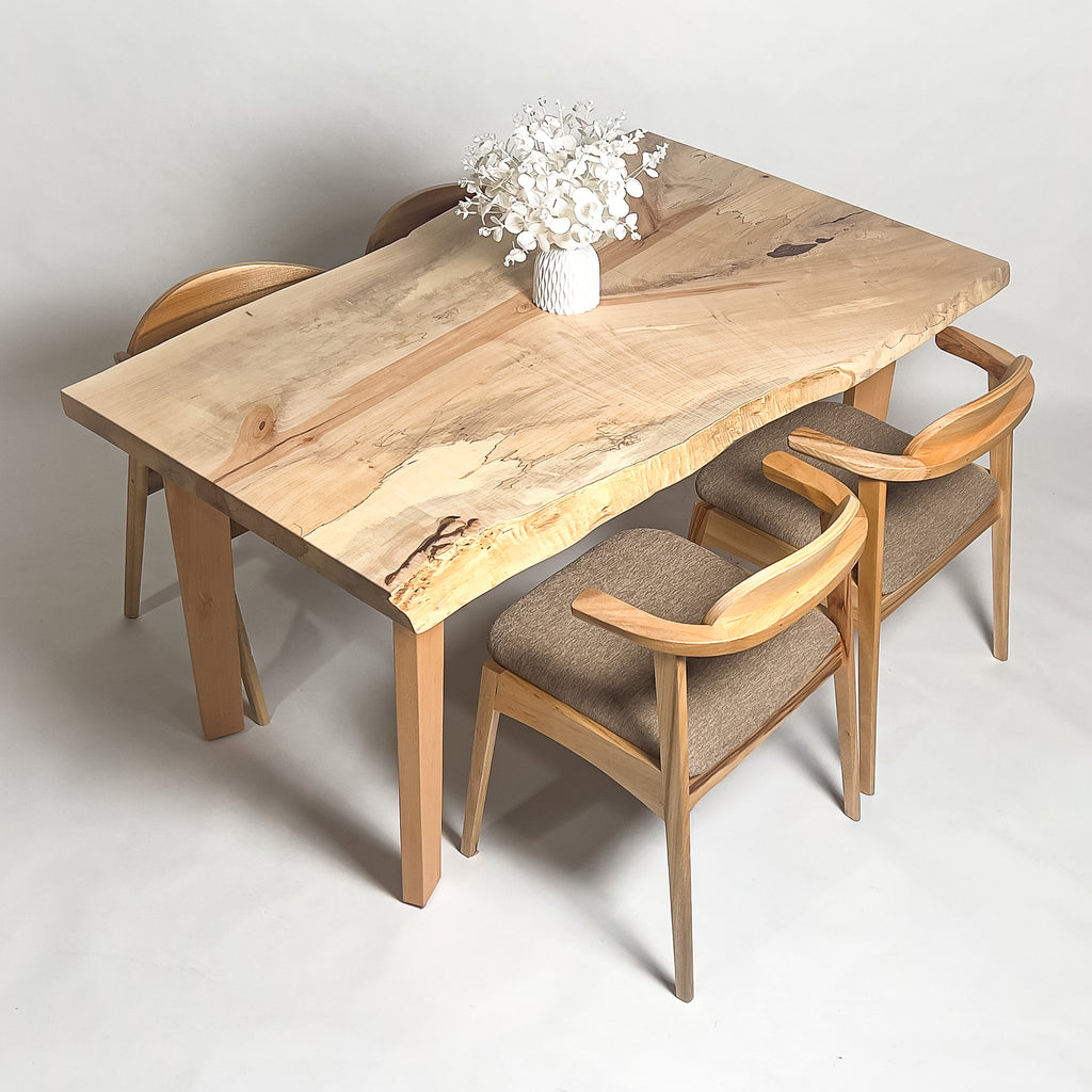 白く上品な色味と、栃特有の杢目「縮杢」や「スポルテッド」が特徴的。特有の色味と杢目は、お部屋を柔らかくモダンな雰囲気にすることができ、男女共に高い人気を誇る素材