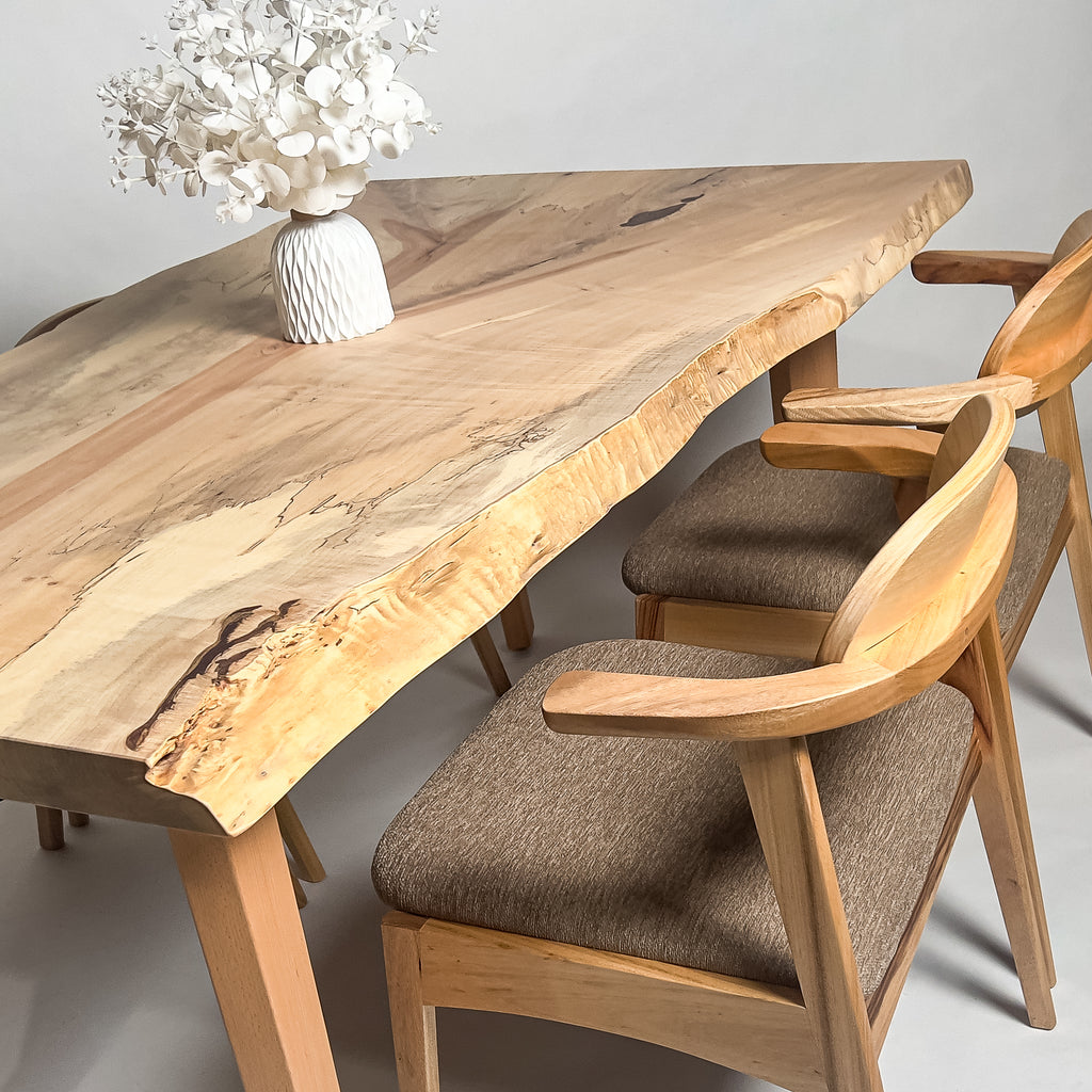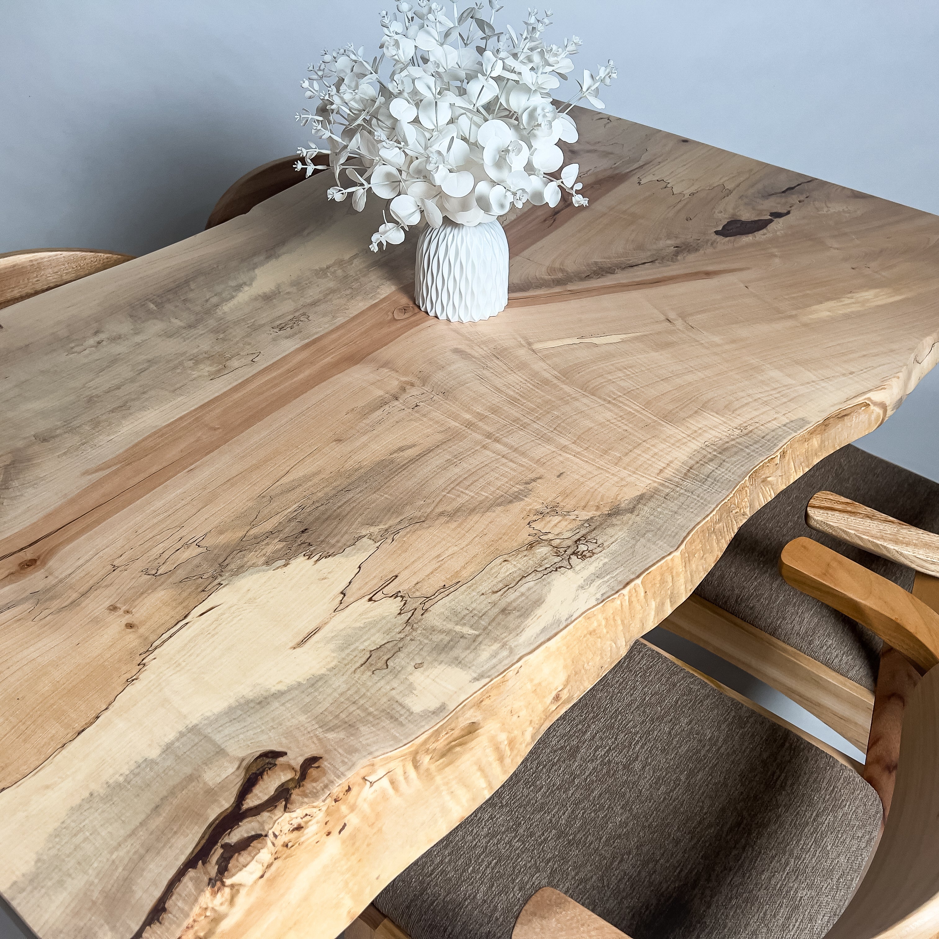 複数の板をつなぎ合わせたものとは異なり、途切れることなく続く杢目は自然の美しさをそのまま映し出します。