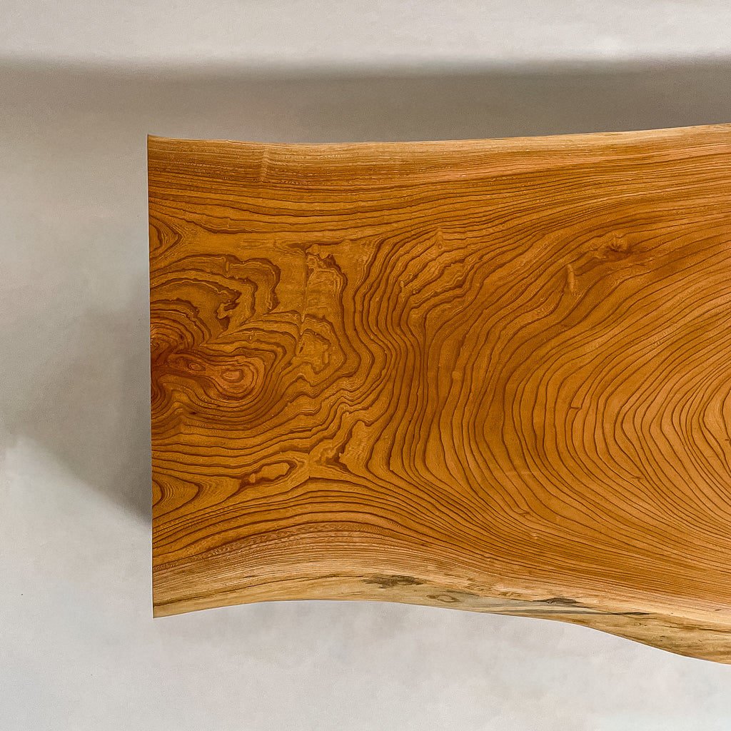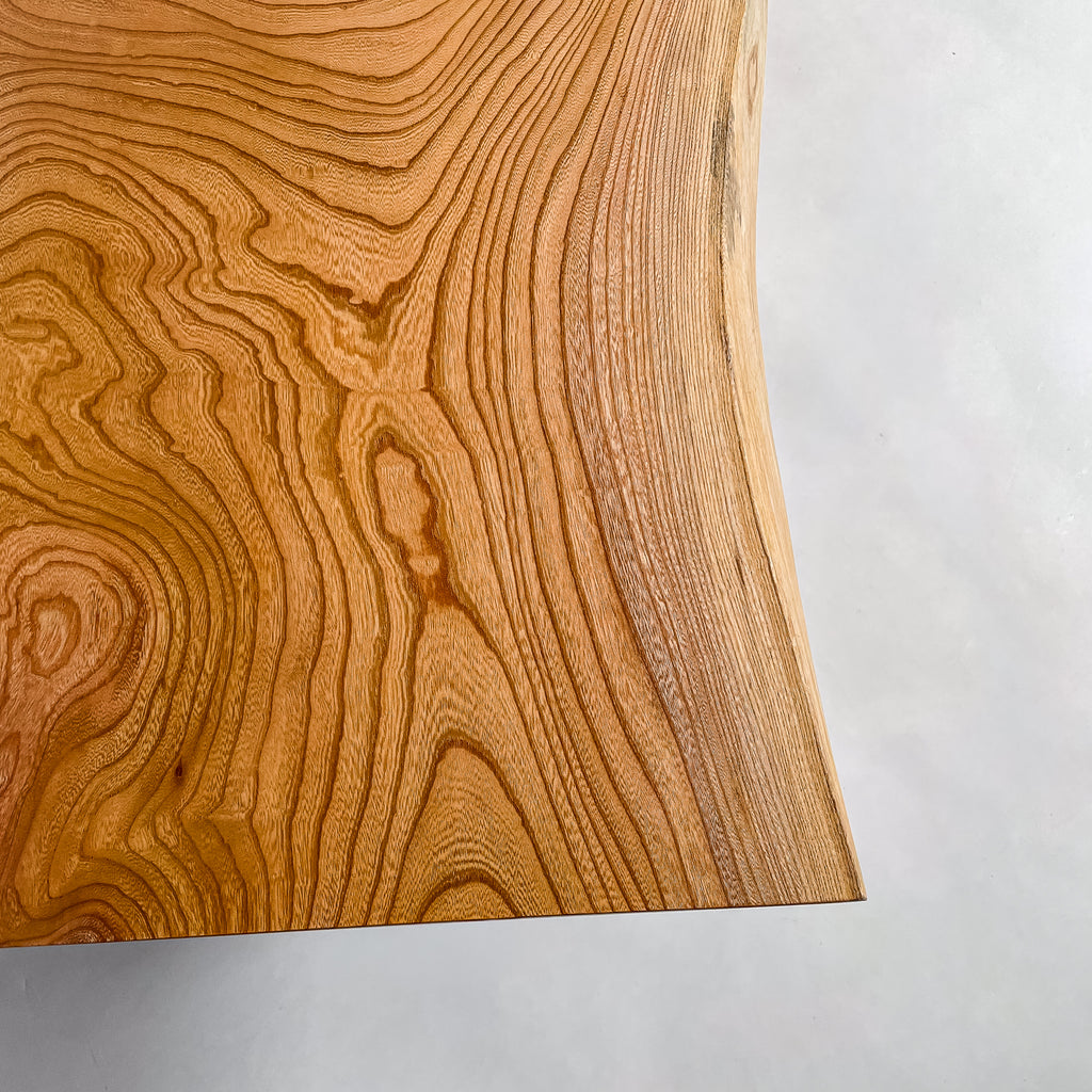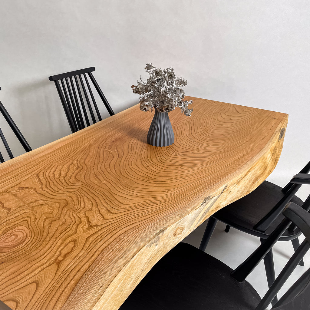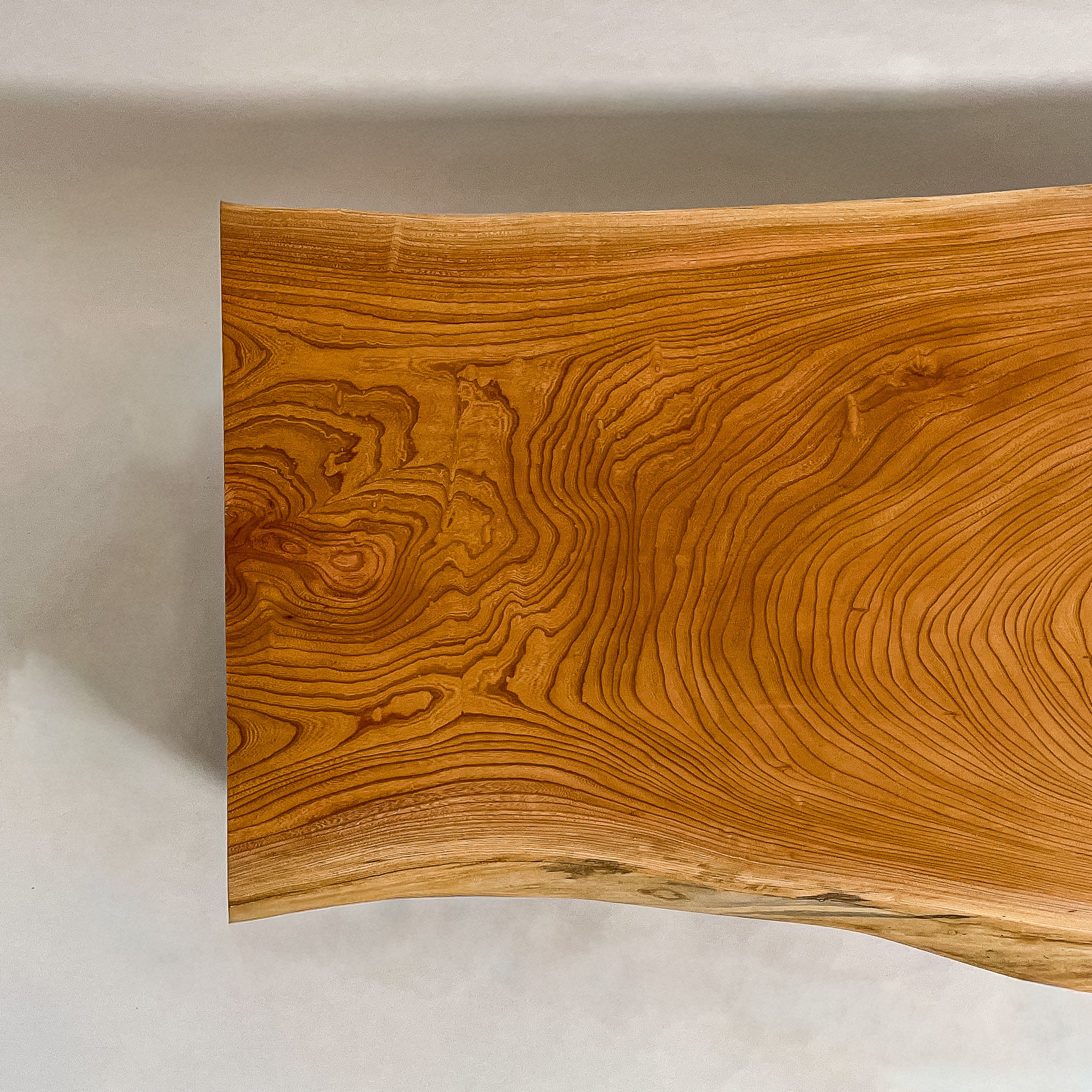 複数の板をつなぎ合わせたものとは異なり、途切れることなく続く杢目は自然の美しさをそのまま映し出します。