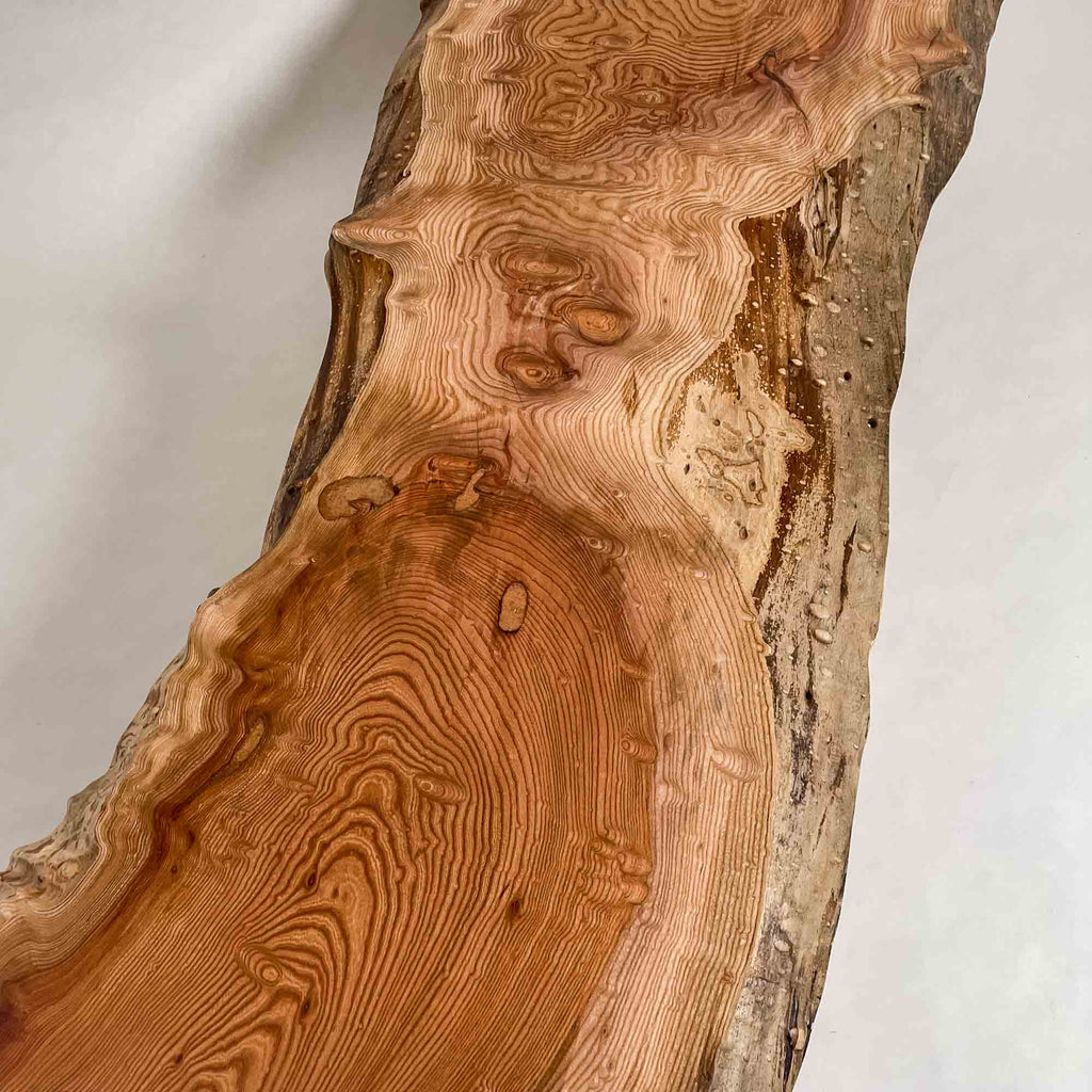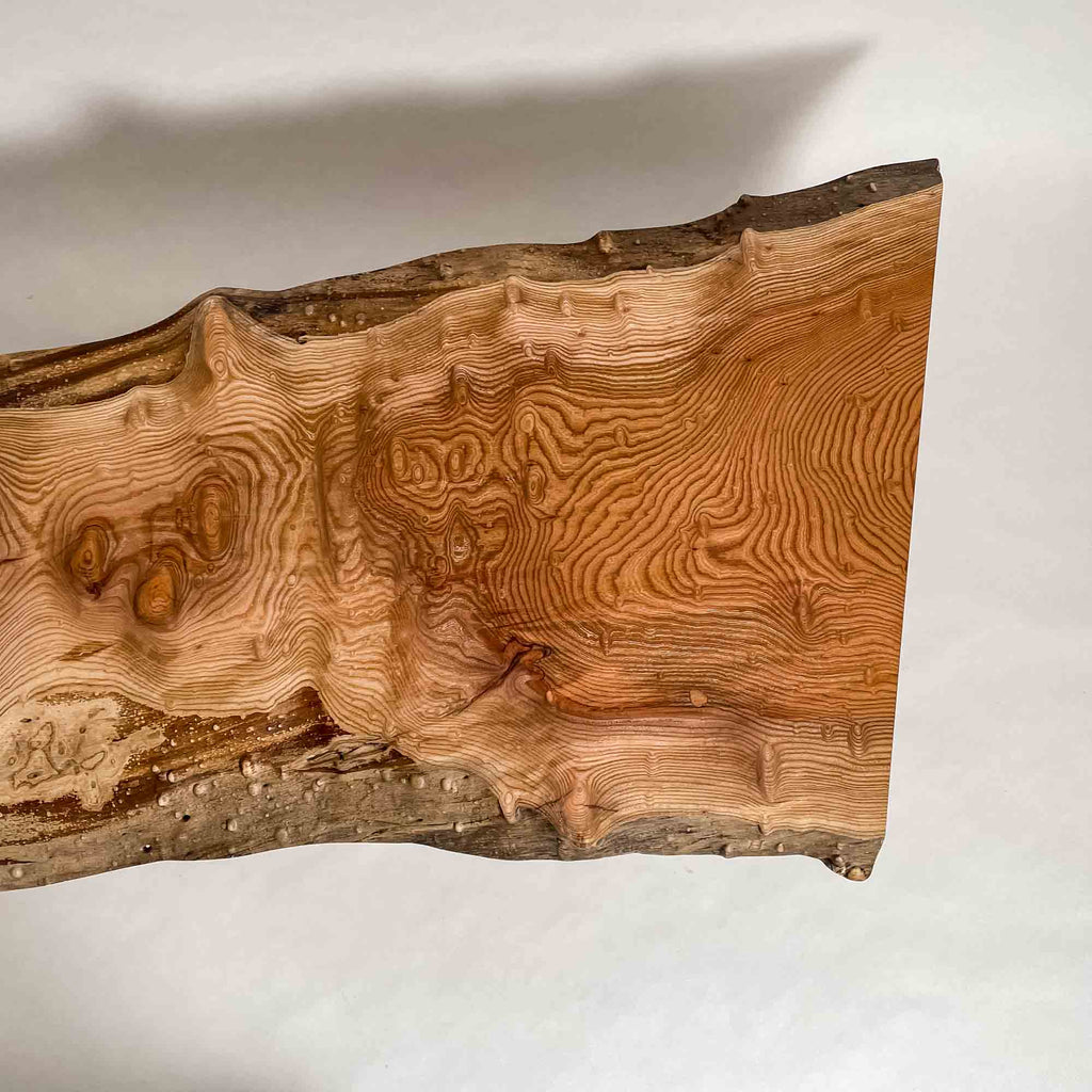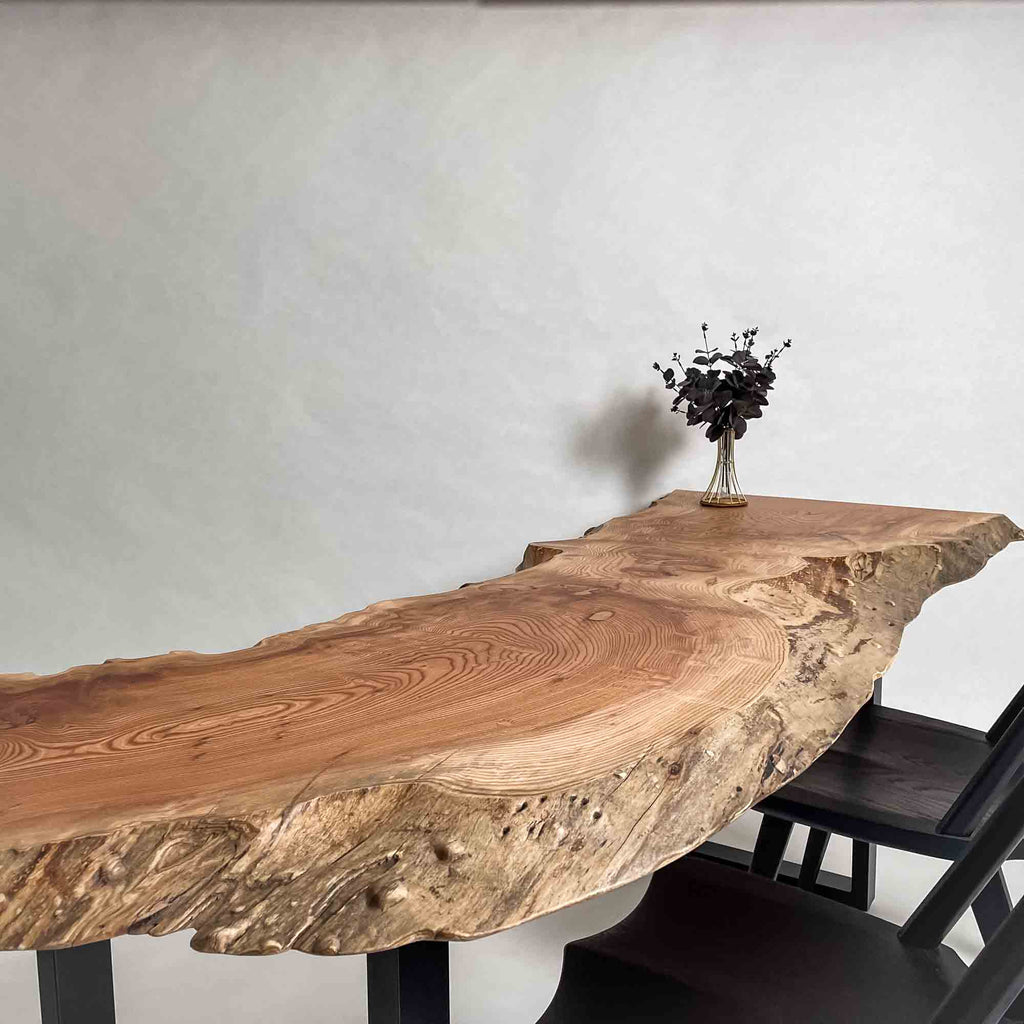 複数の板をつなぎ合わせたものとは異なり、途切れることなく続く杢目は自然の美しさをそのまま映し出します。