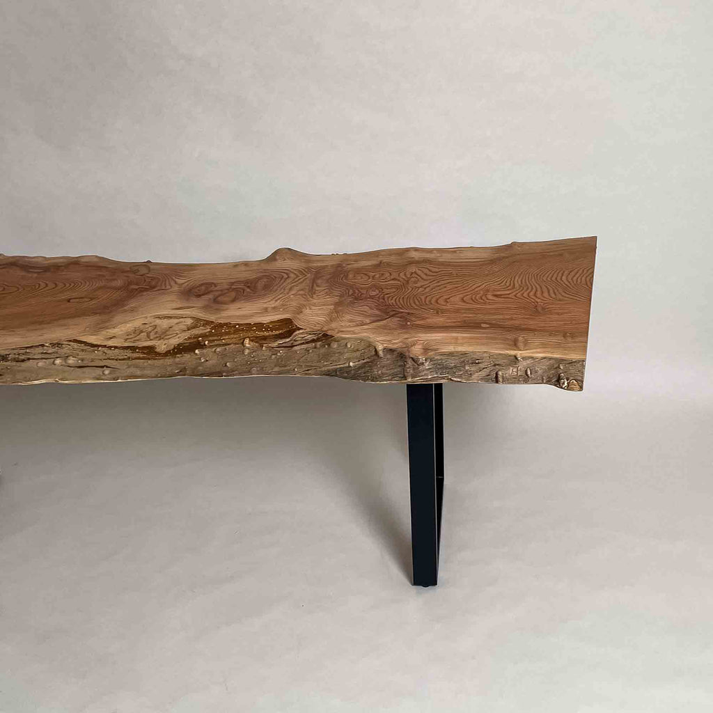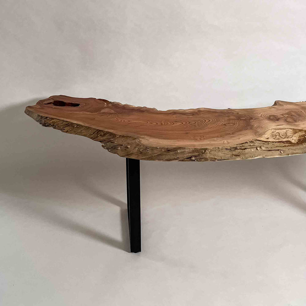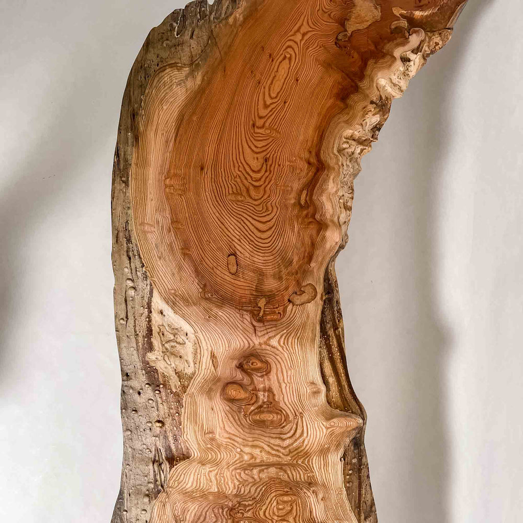 複数の板をつなぎ合わせたものとは異なり、途切れることなく続く杢目は自然の美しさをそのまま映し出します。
