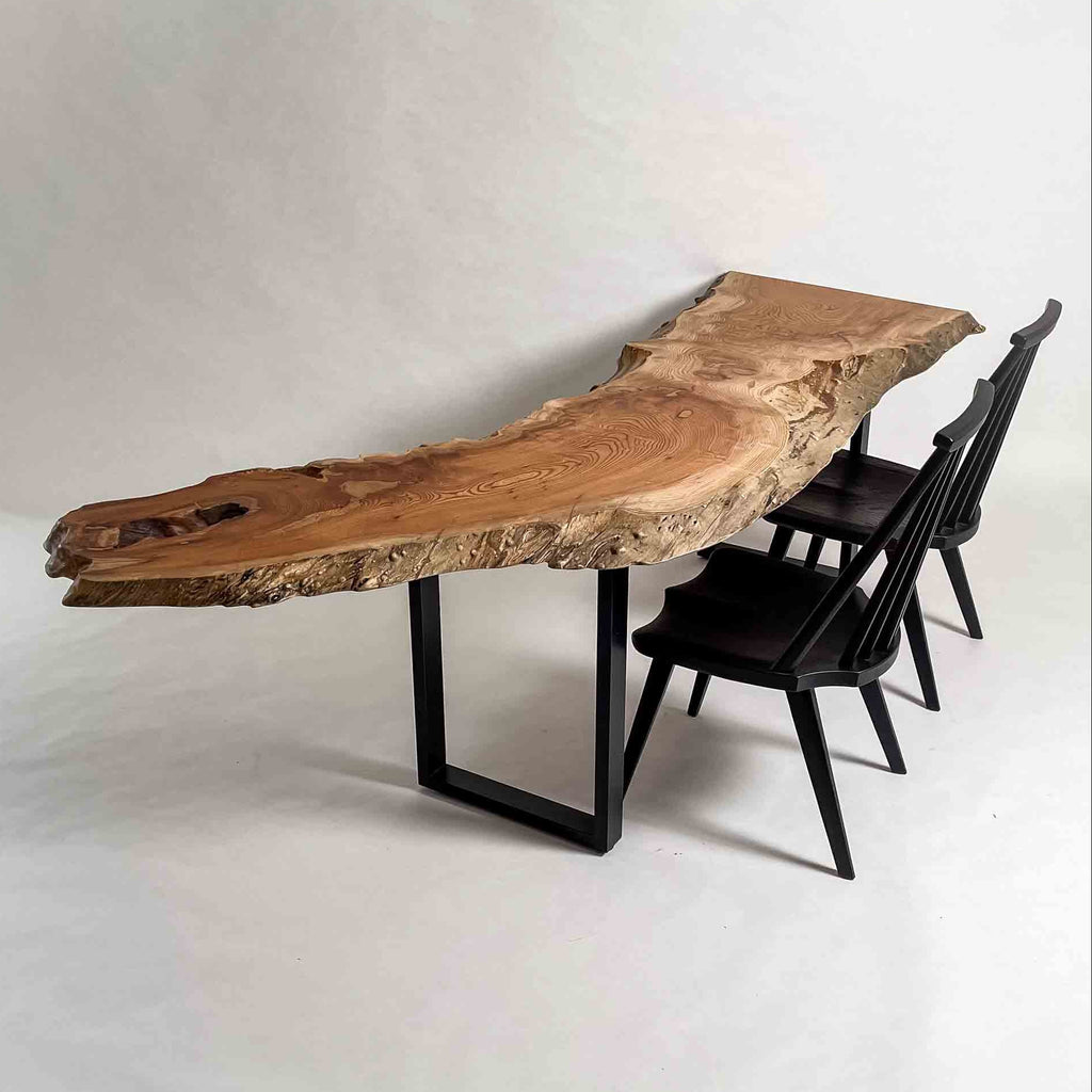 | 時代を超えて受け継がれる機能性と、現代の暮らしに寄り添うデザイン性を兼ね備えた一枚板家具の製作を手がける。 | 現代の空間に映えるモダンなデザイン性を取り入れながら、一枚板の持つ素材感と存在感を活かした加工・製作を行う。 | |