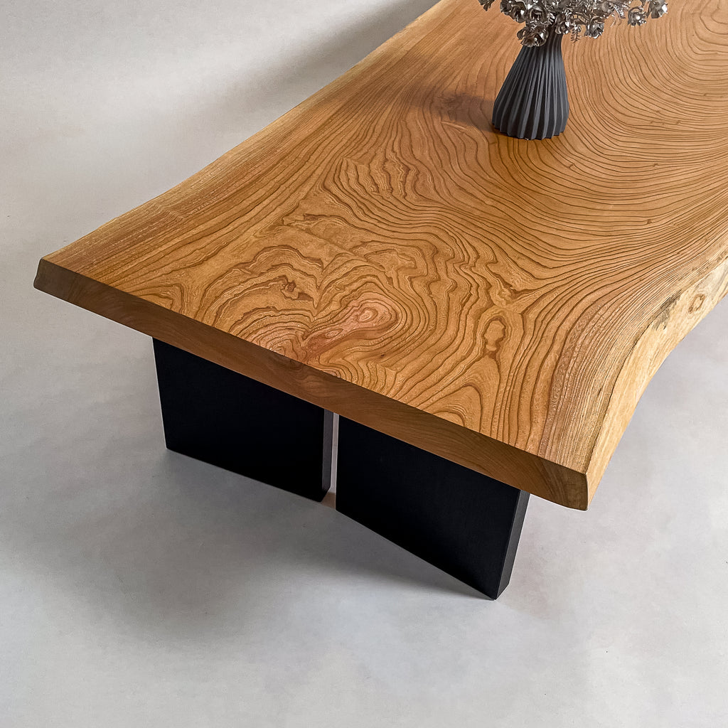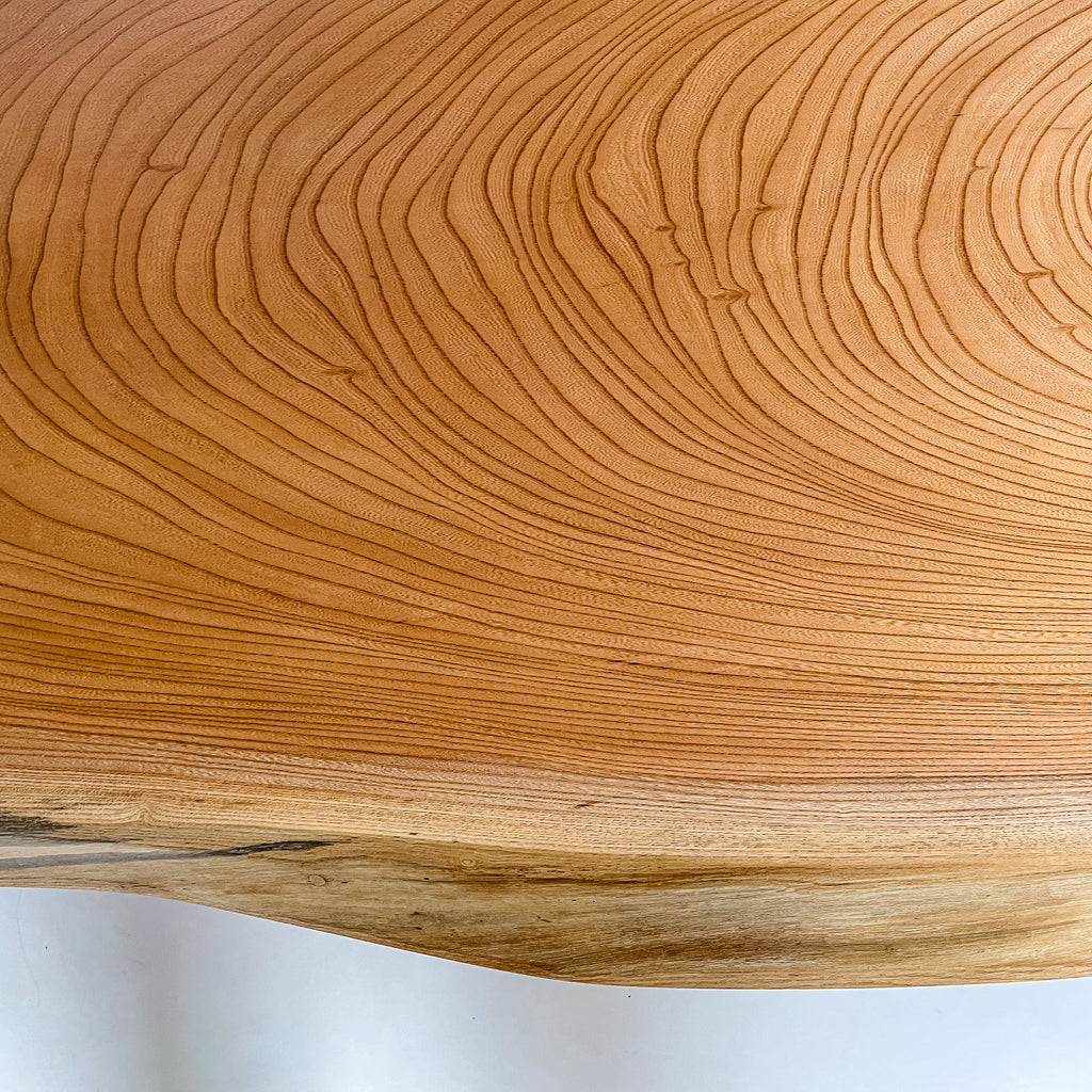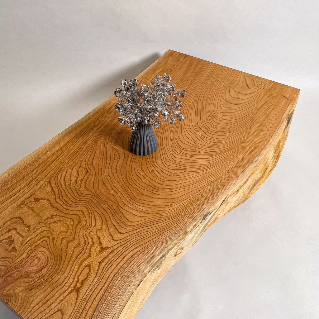 複数の板をつなぎ合わせたものとは異なり、途切れることなく続く杢目は自然の美しさをそのまま映し出します。