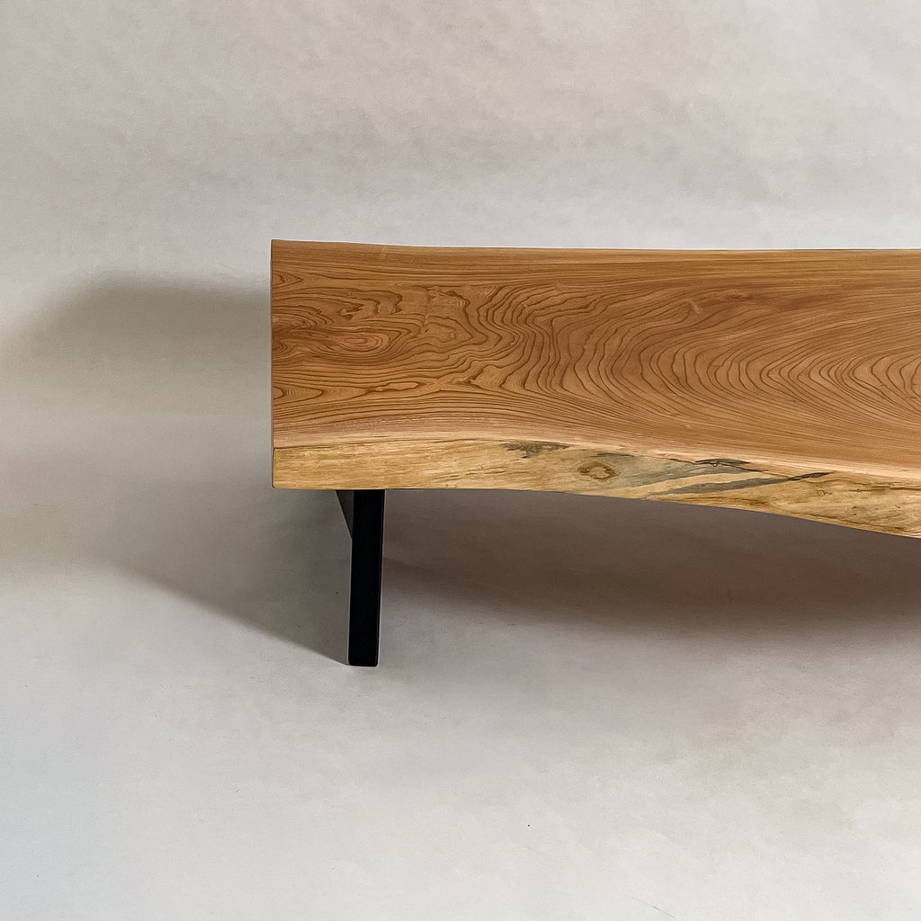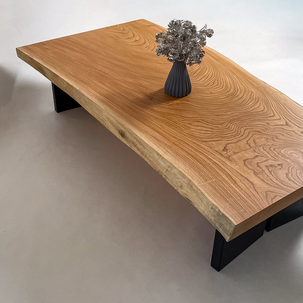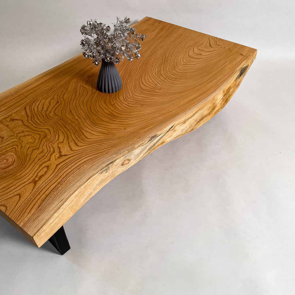 複数の板をつなぎ合わせたものとは異なり、途切れることなく続く杢目は自然の美しさをそのまま映し出します。