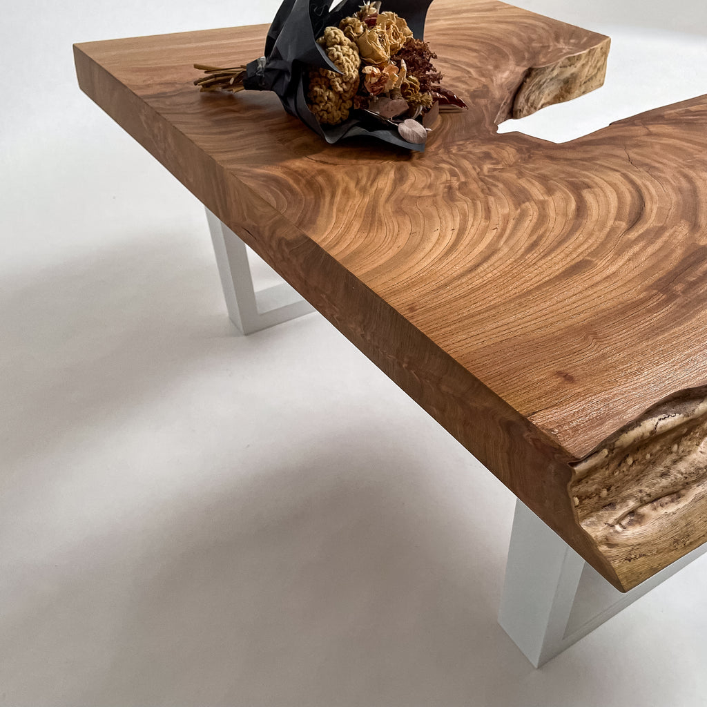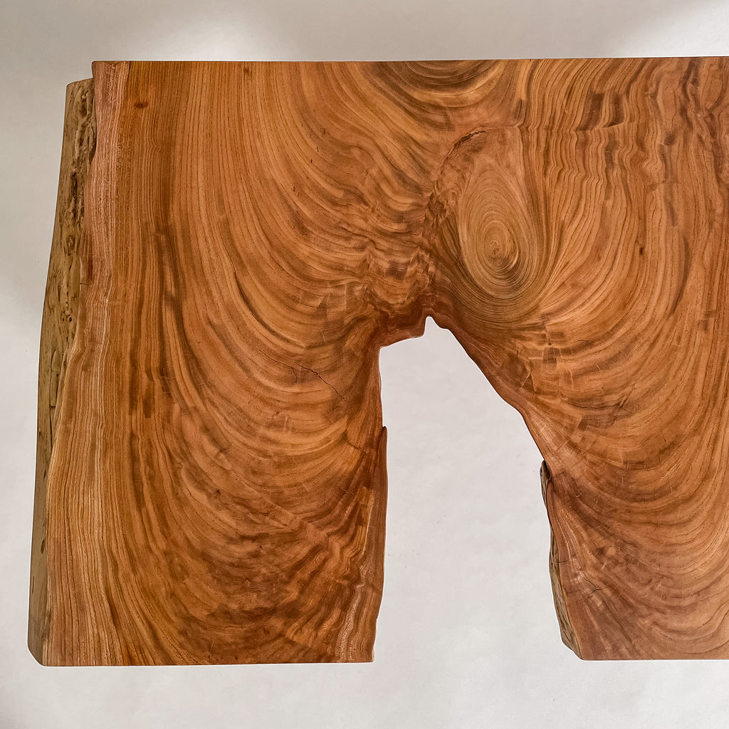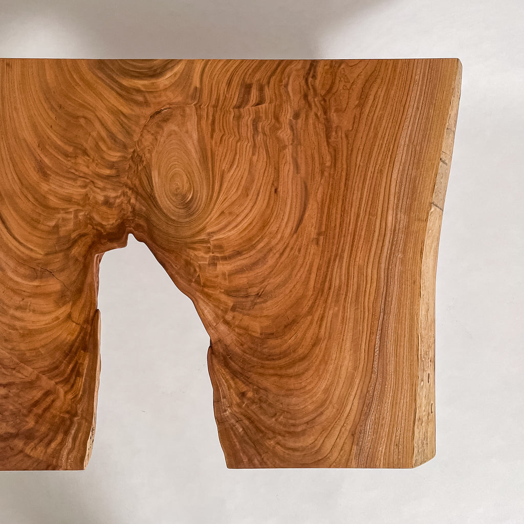 複数の板をつなぎ合わせたものとは異なり、途切れることなく続く杢目は自然の美しさをそのまま映し出します。