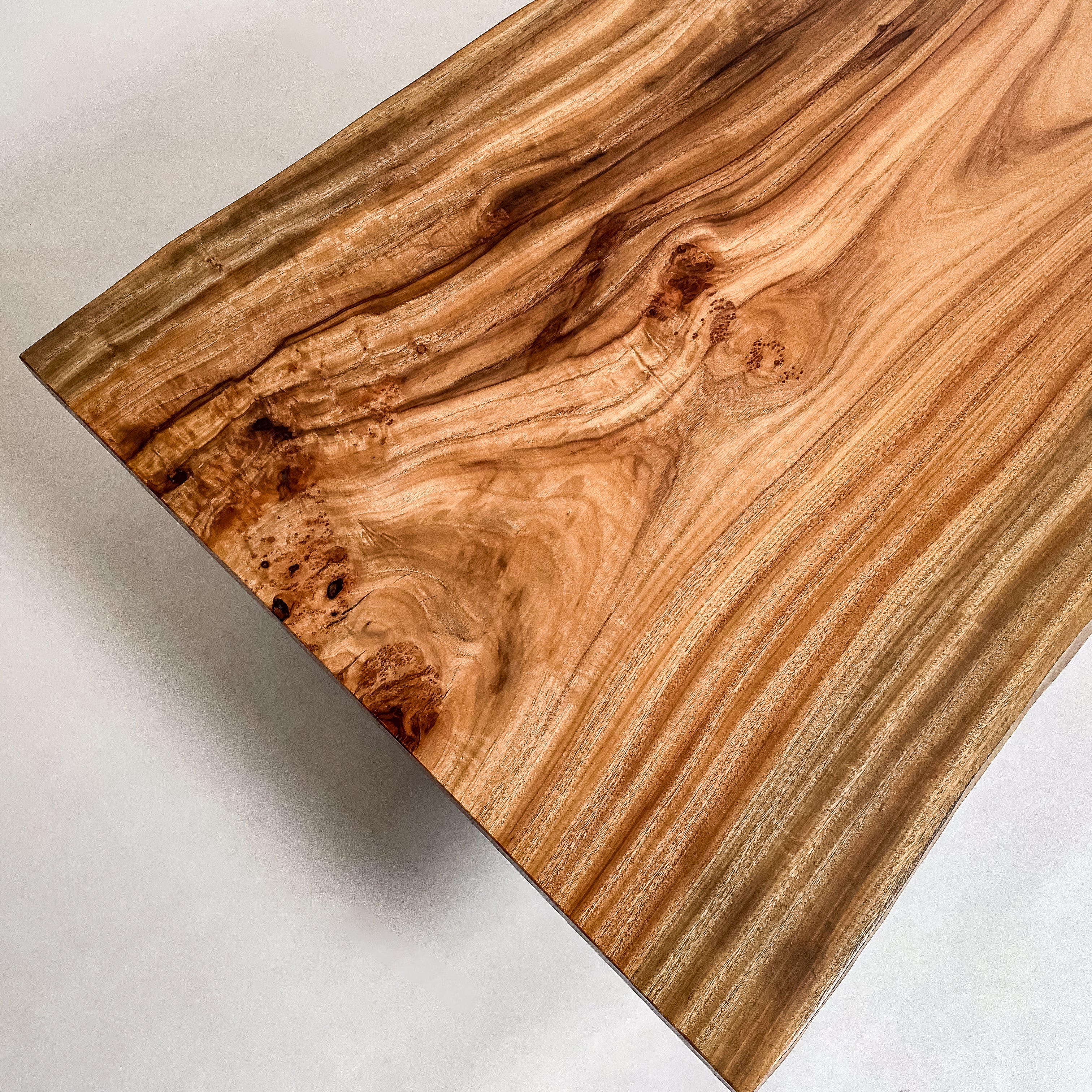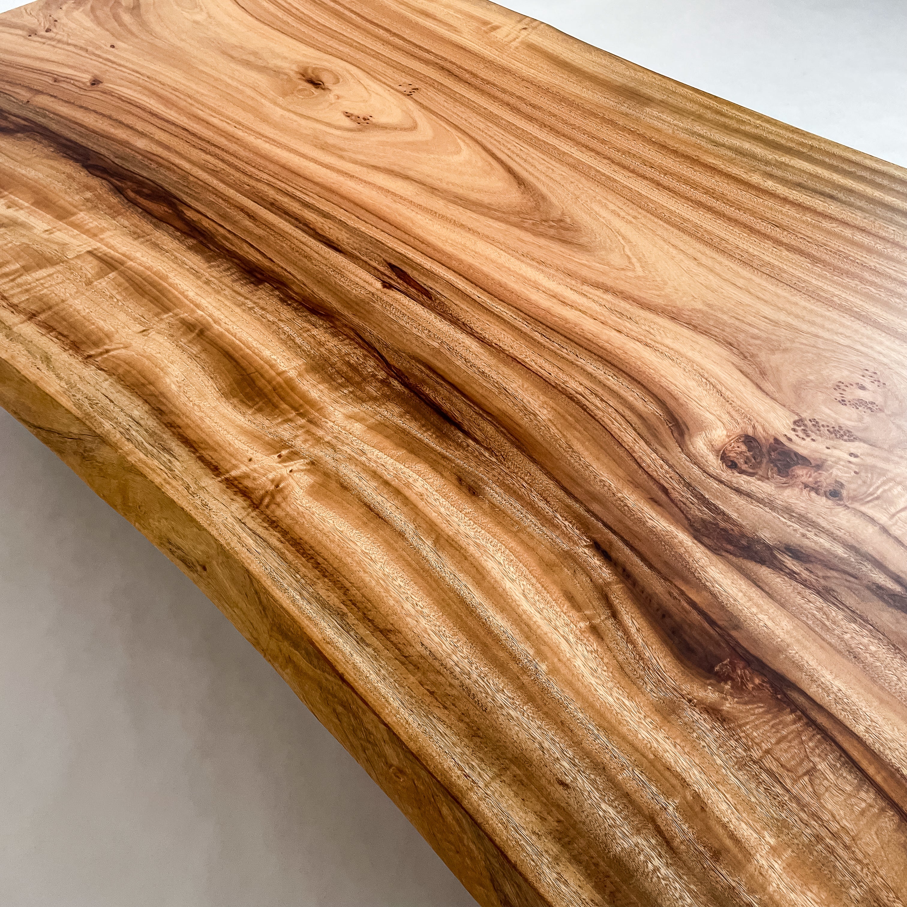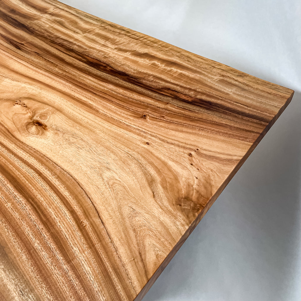 複数の板をつなぎ合わせたものとは異なり、途切れることなく続く杢目は自然の美しさをそのまま映し出します。