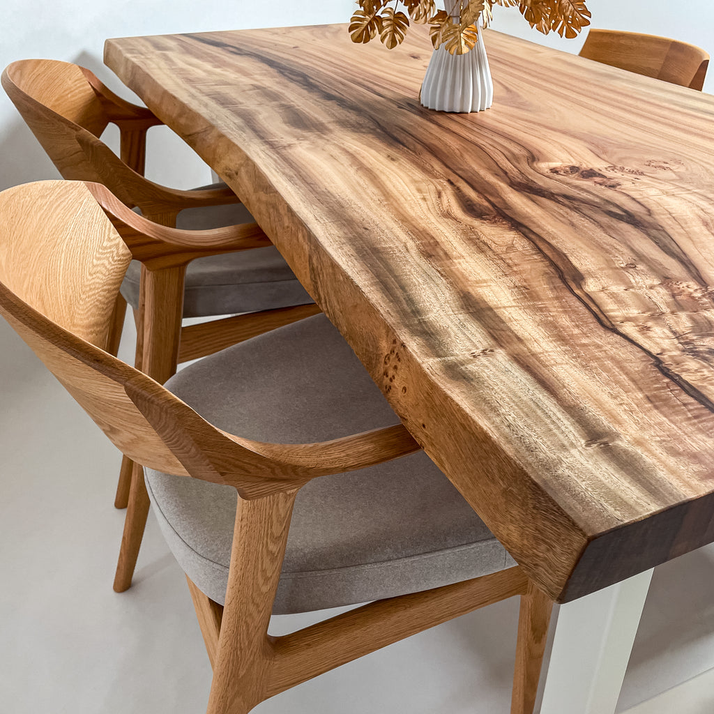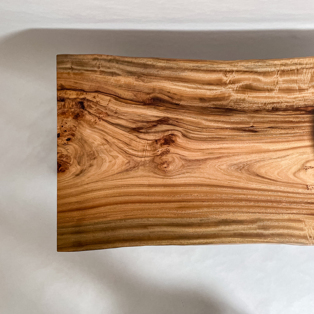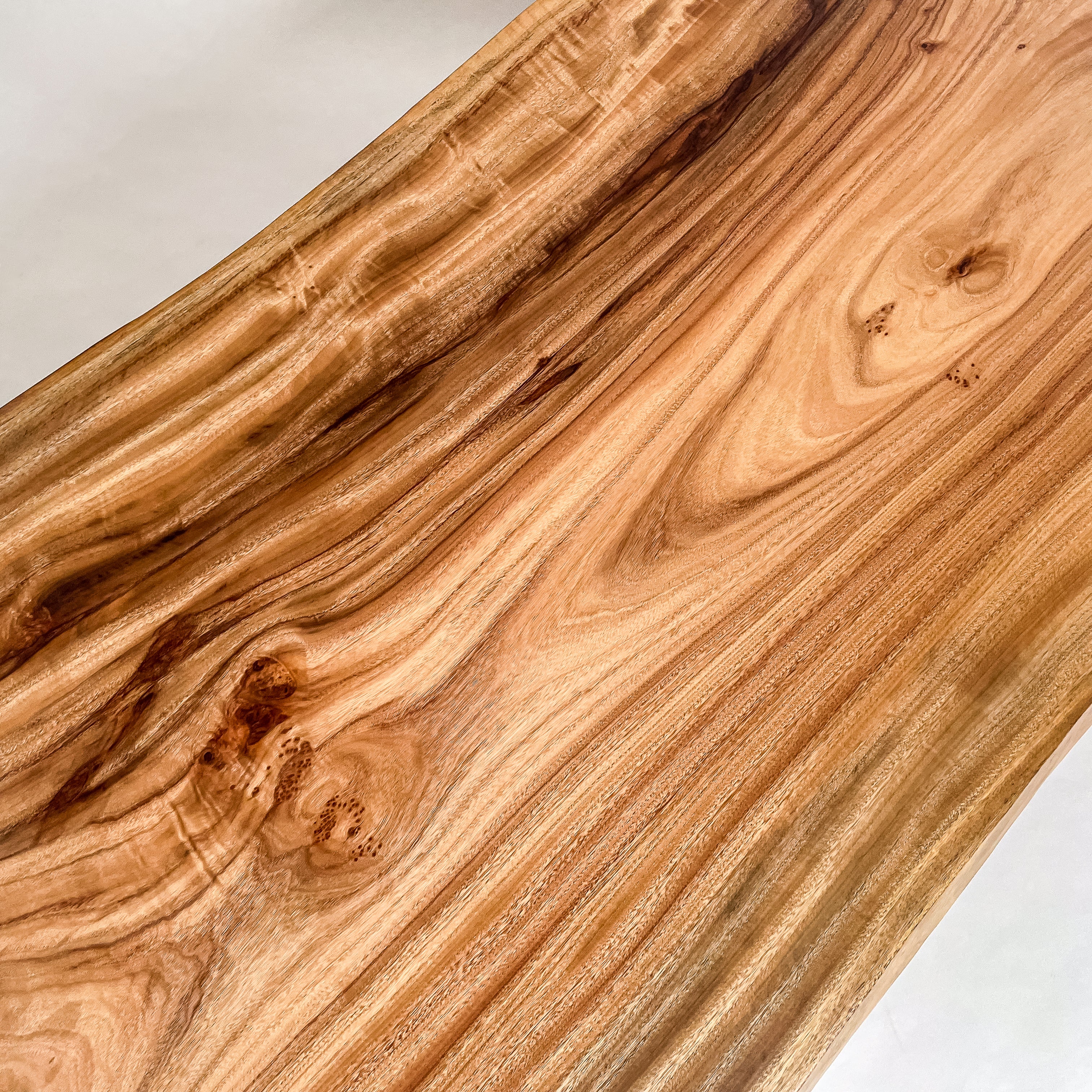 複数の板をつなぎ合わせたものとは異なり、途切れることなく続く杢目は自然の美しさをそのまま映し出します。