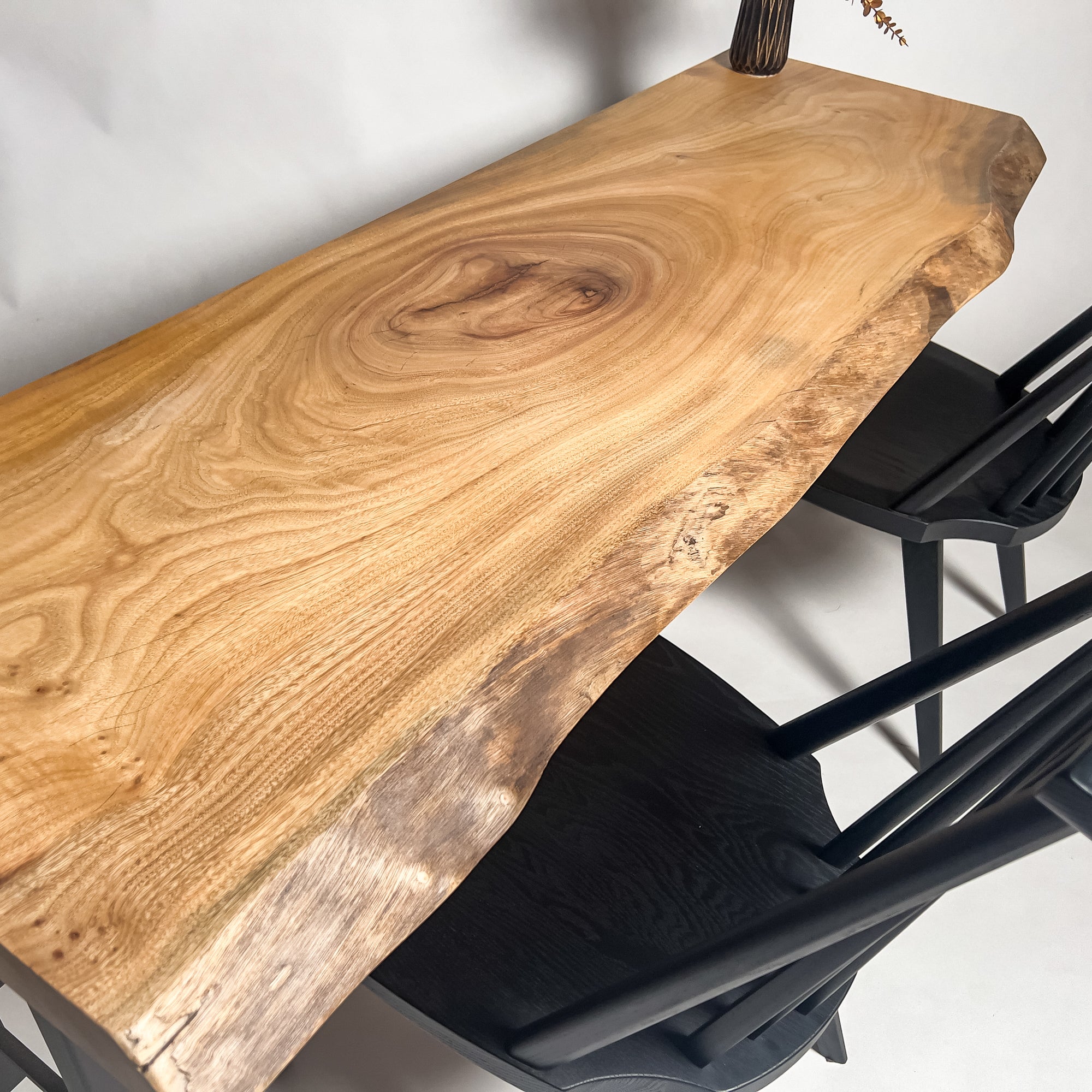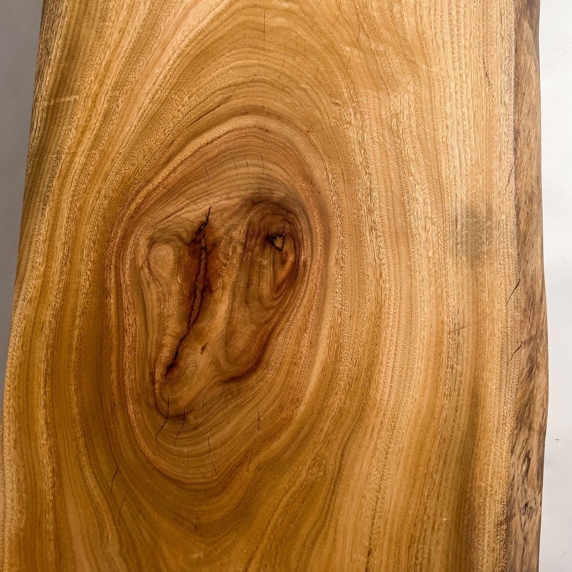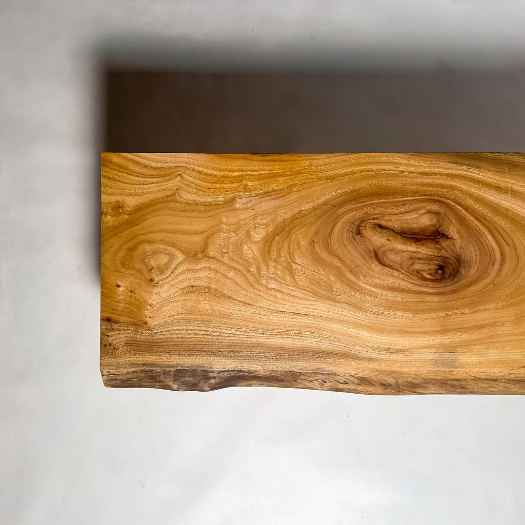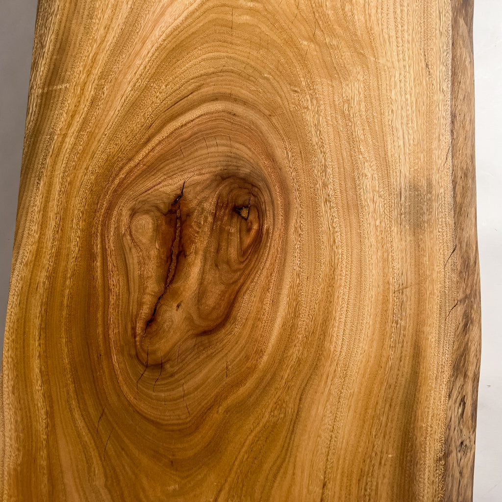 複数の板をつなぎ合わせたものとは異なり、途切れることなく続く杢目は自然の美しさをそのまま映し出します。