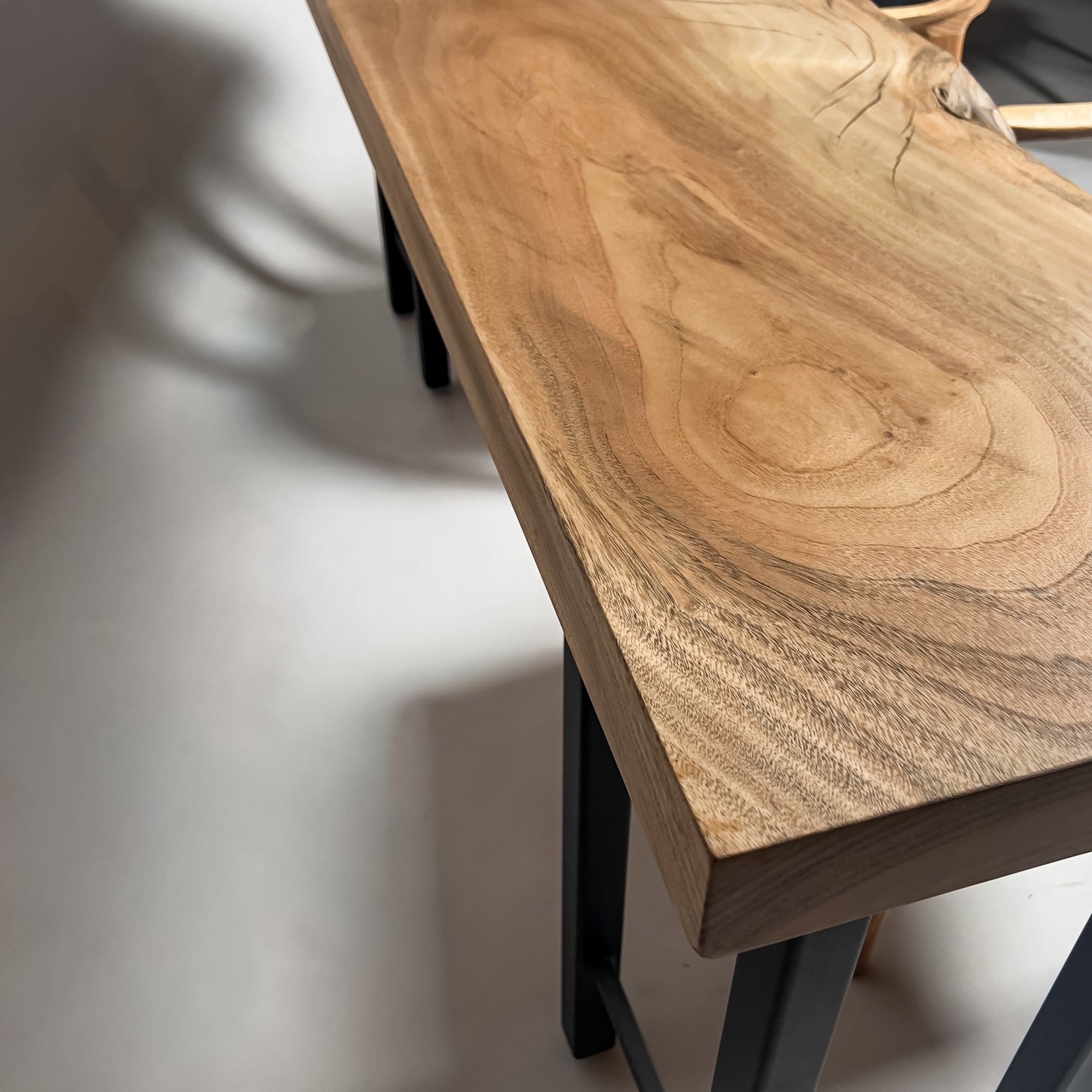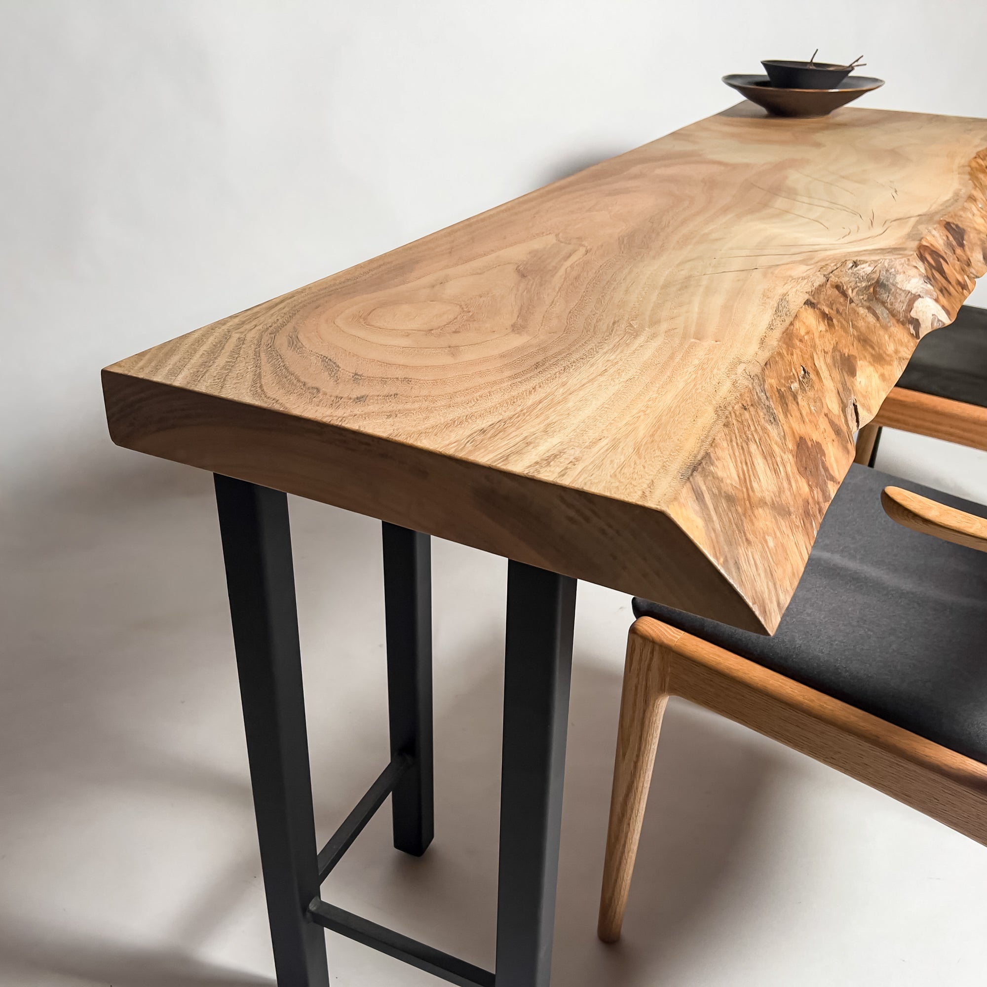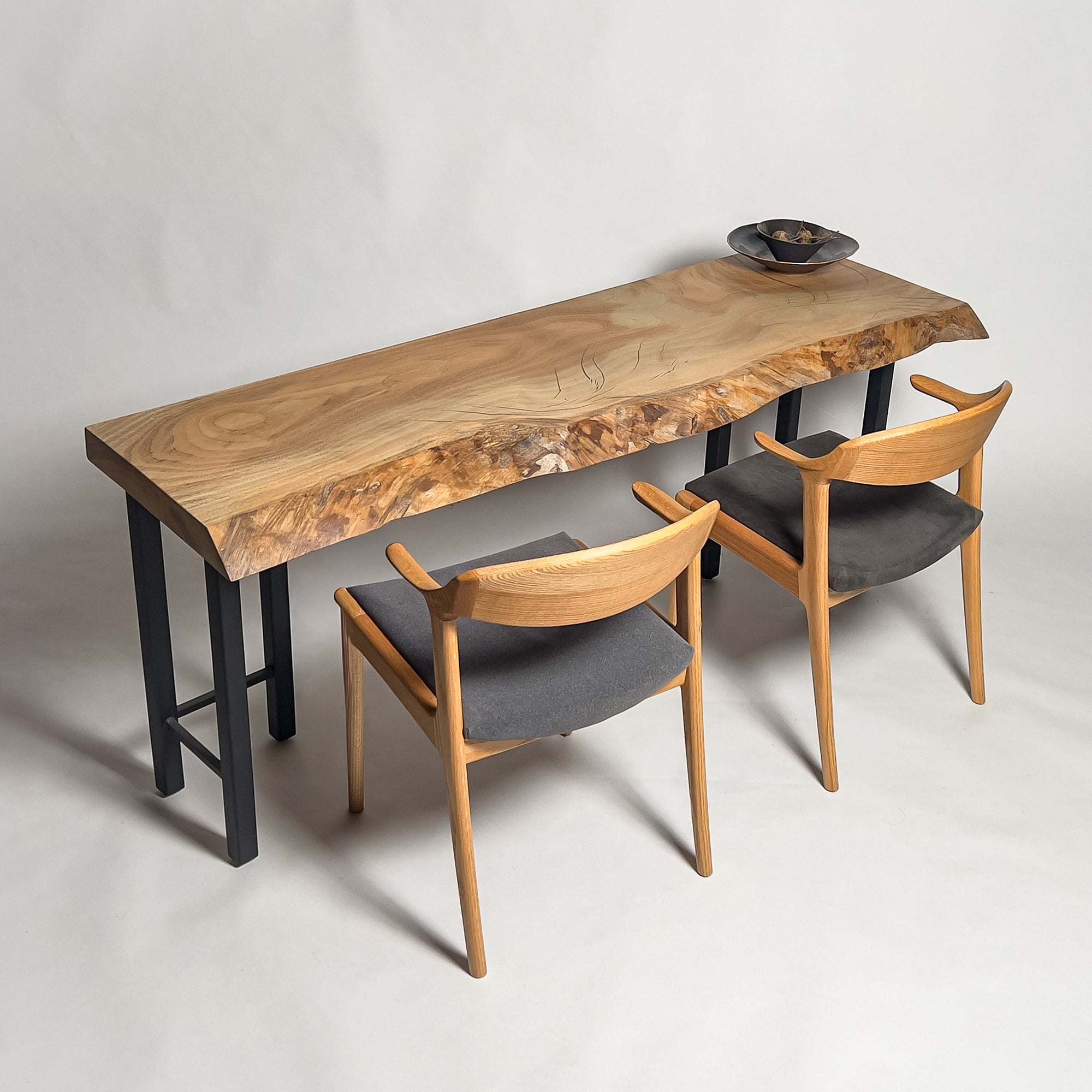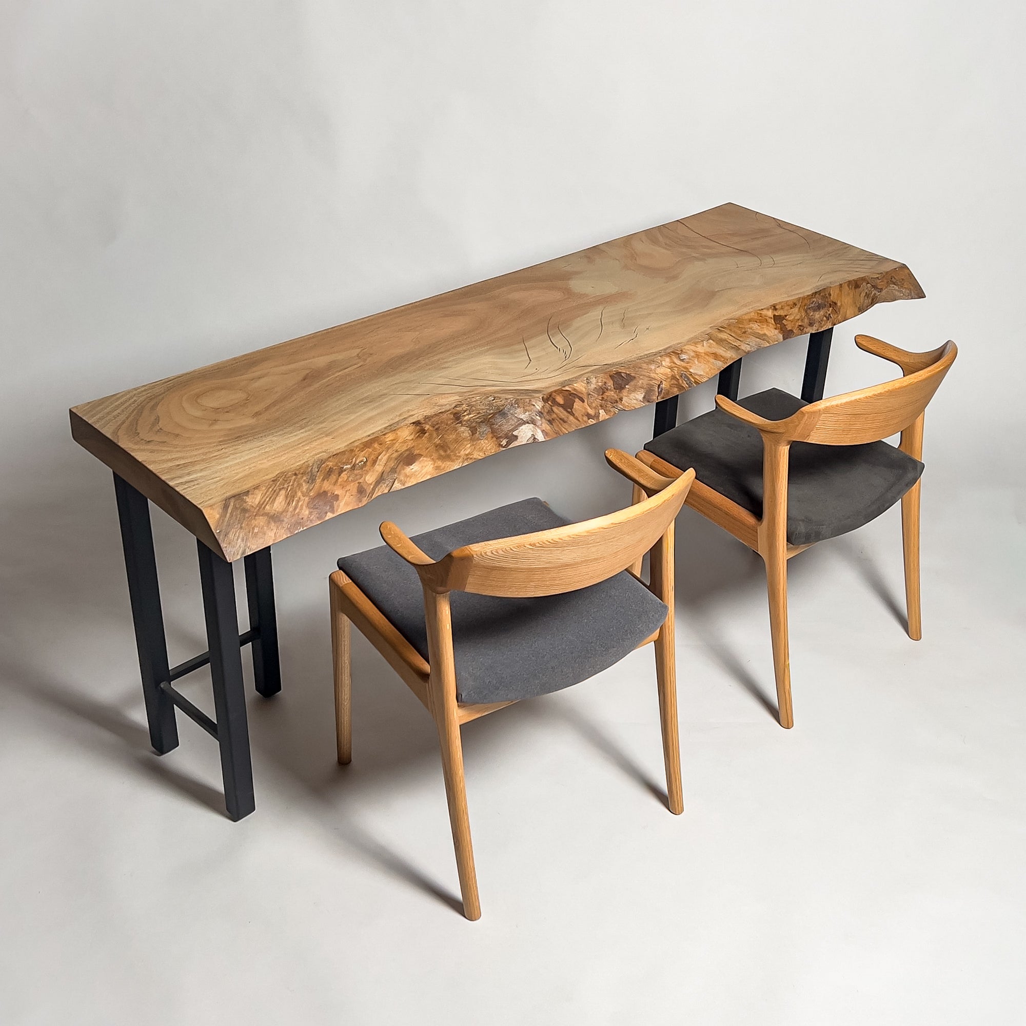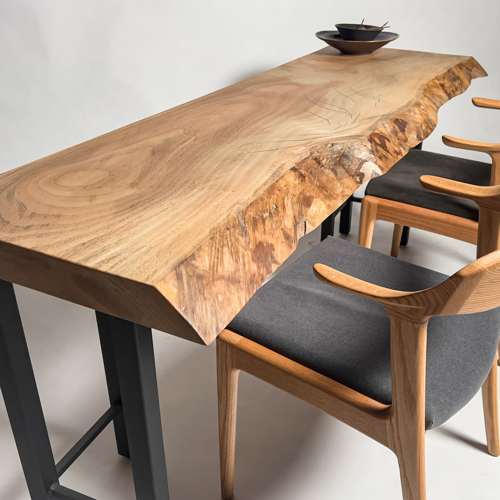| 時代を超えて受け継がれる機能性と、現代の暮らしに寄り添うデザイン性を兼ね備えた一枚板家具の製作を手がける。 | 現代の空間に映えるモダンなデザイン性を取り入れながら、一枚板の持つ素材感と存在感を活かした加工・製作を行う。 | |